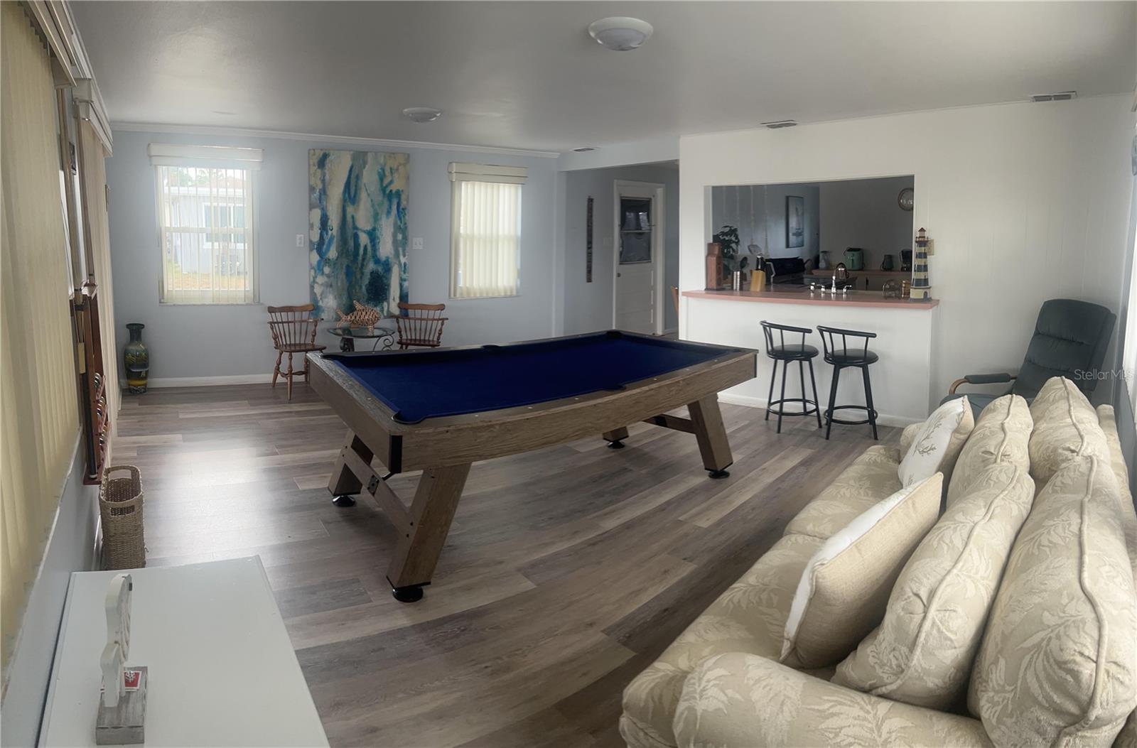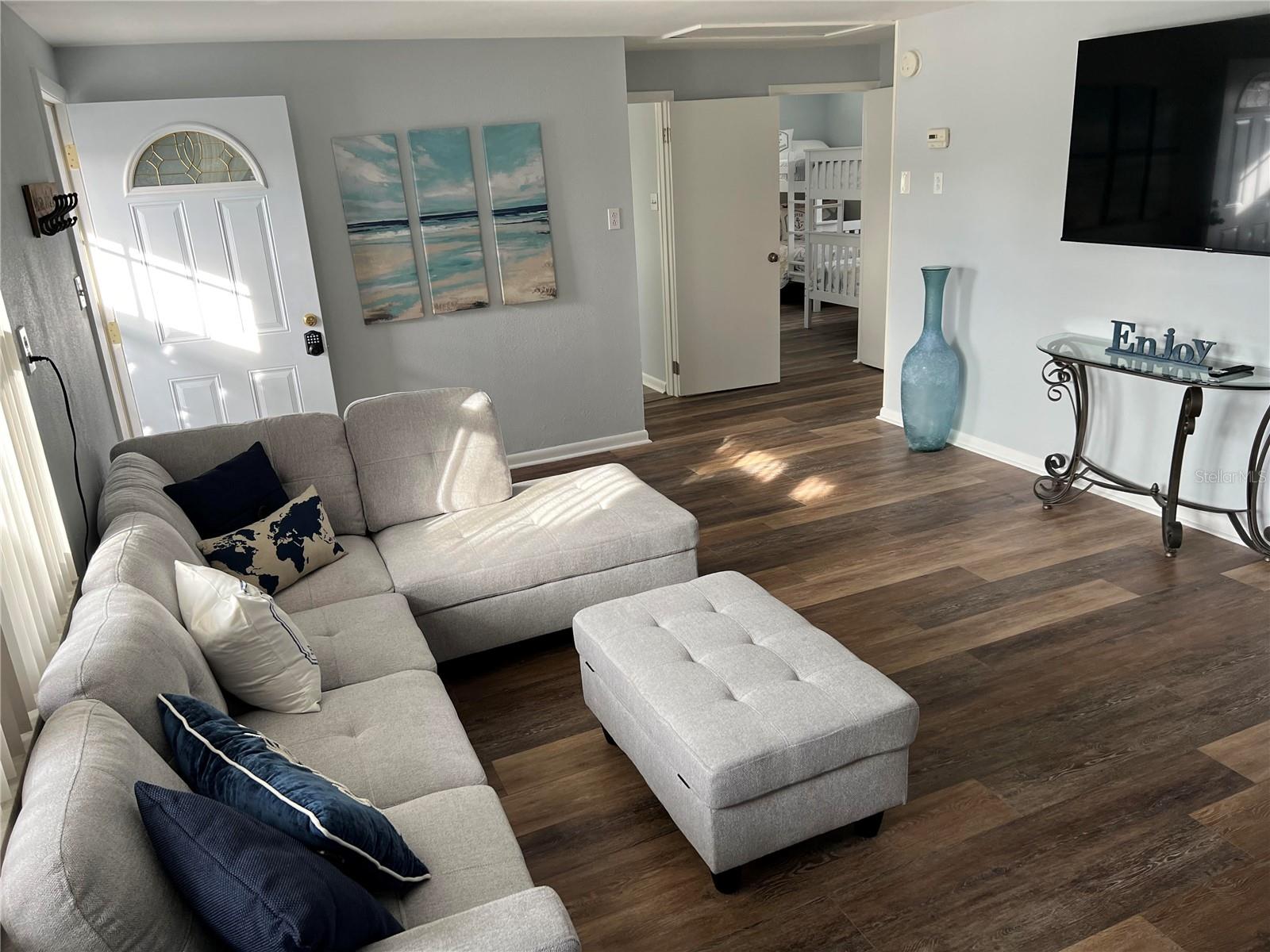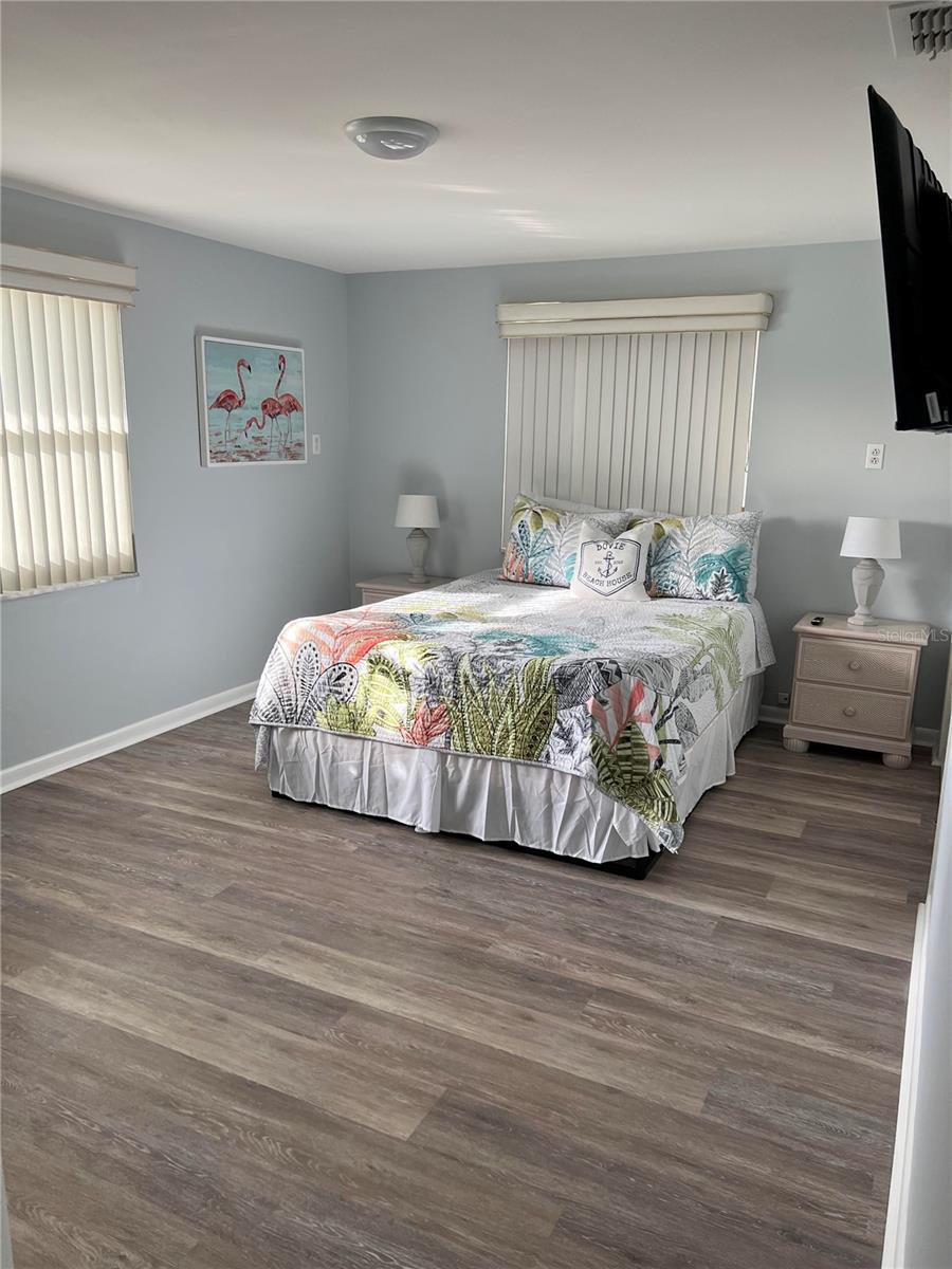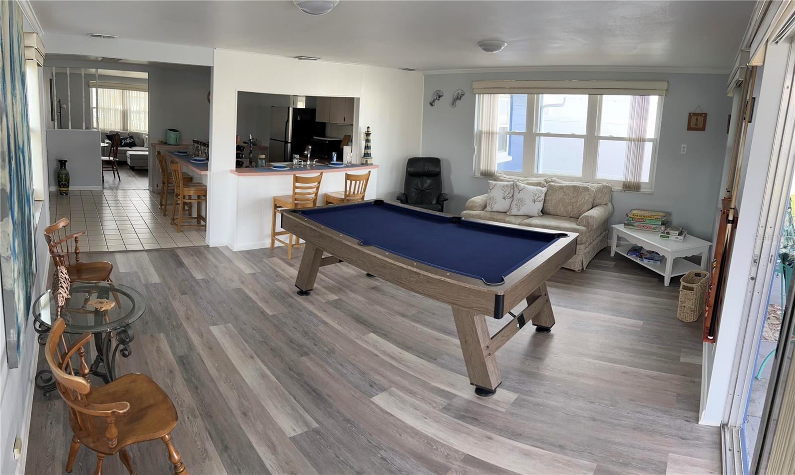 This 2 bedroom 1 1/2 bathroom waterfront house is located on a deep water canal with no tide or bridge restriction. Offering the cozy feeling a house needs and much more: a one car garage boasts plenty of storage cabinets, a wall rack to hold all your fishing poles, floating dock, Fullscreen back porch, great room/ bonus room, peaceful environment, amazing views of the water, morning sunrises and beautiful sunsets. A wonderful place to relax, experience water contact kayaking, looking at the manatees and dolphins and fishing at your own private dock. Updated with new laminate flooring in both bedrooms and living room and great room, new interior paint, new windows.