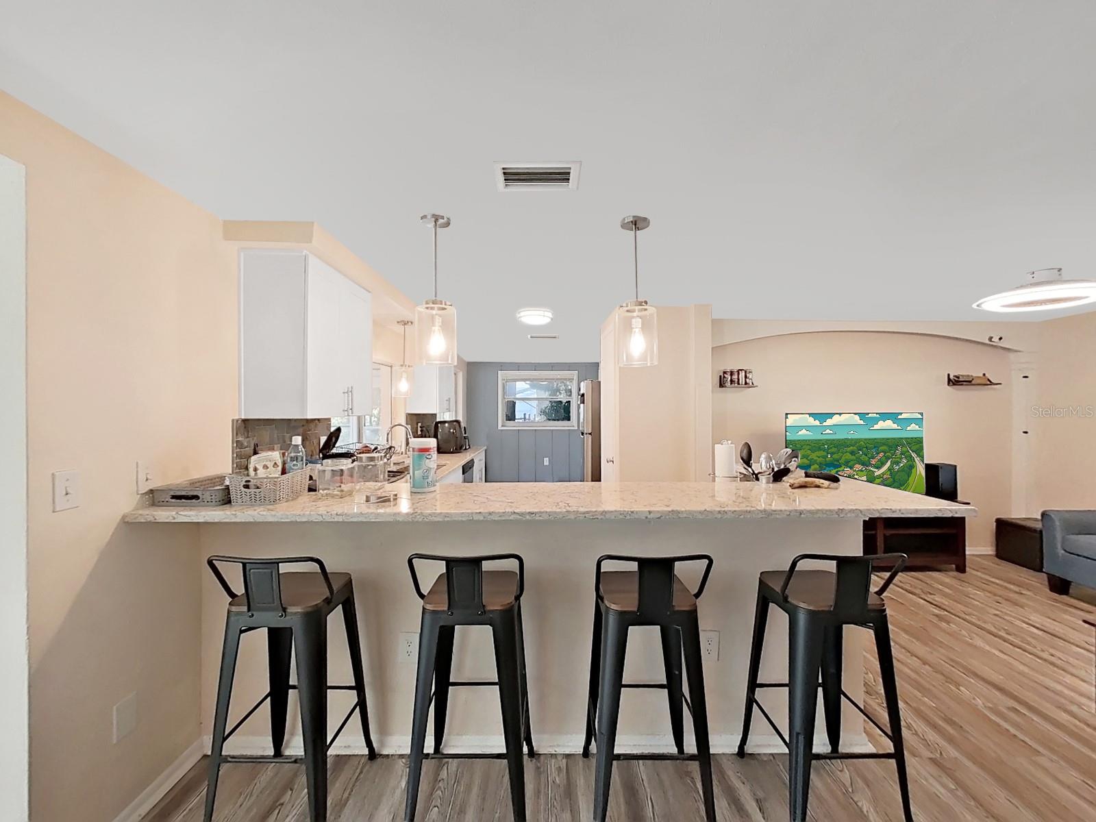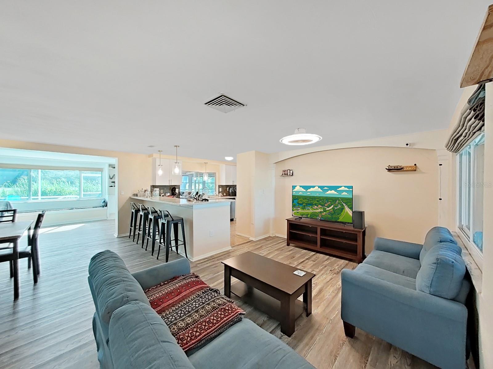 Located in Beacon Woods golf community. this 2 bedroom with bonus room, 2 baths, 1 car garage, screened pool home, fenced yard on a cul-de-sac. A/C 2017. NEW Impact windows, gutters and spouts replaced 2024, sprinkler system 2 years ago, outside lights, new roof 3 years ago. open dining, living and kitchen area. Additional bonus room leading to the back porch overlooking the pool area. custom designed open Kitchen with breakfast bar, pantry, granite countertops, tile backsplash, accent lighting, lots of counter space. Pass through window from kitchen to enclosed porch. Home Includes Refrigerator, Range, Dishwasher, Washer and Dryer. Master bedroom overlooks the pool through large ceiling to floor window and bathroom with walk in closet. tiled walk in shower, vanity, fixtures, lighting and toilet. Guest bath has Tub/shower. Glass enclosed porch leads to fenced back yard. screened pool (plumbed for heater) with brick coping and open screened patio space. Community swimming pool, tennis courts, recreational facility. banking, shopping, restaurants close by. About 45 minutes drive to Tampa International Airport.