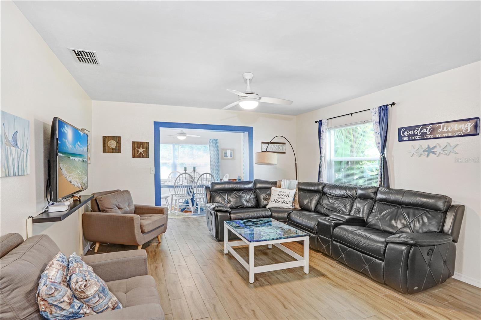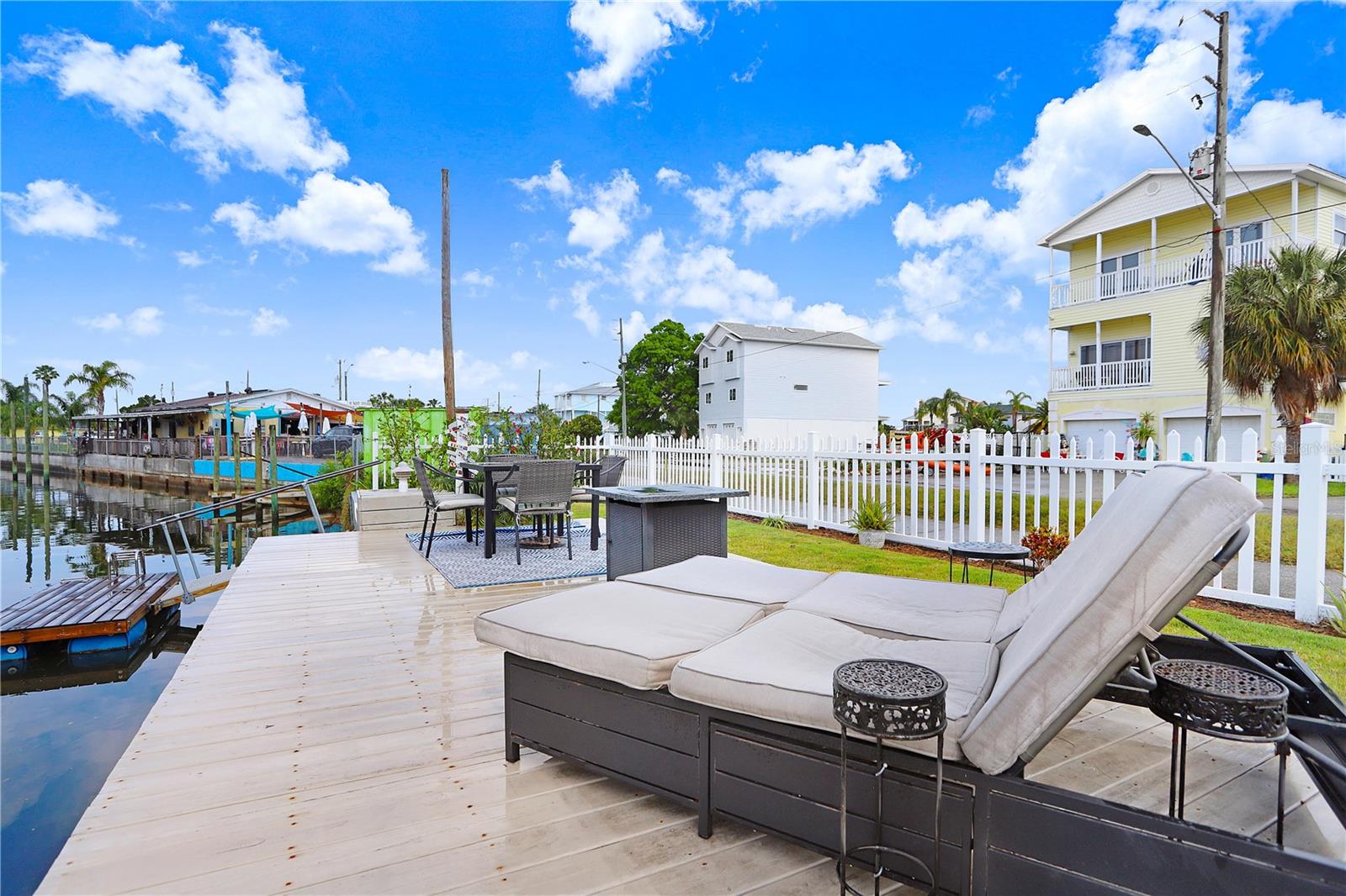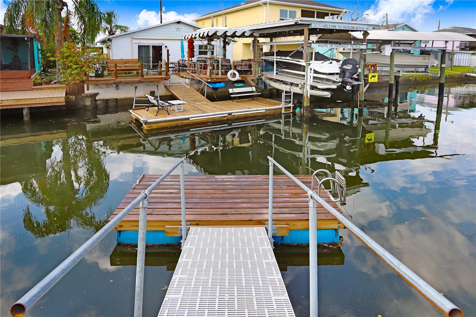 $50K PRICE IMPROVEMENT!!!...DURING ALL RECENT HURRICANES AND STORMS, THIS PROPERTY HAS NEVER HAD ANY FLOODNG OR WATER INSIDE THE RESIDENCY PER THE SELLER...Immersed in the idyllic backdrop of Hudson, Florida, 6503 Lonnie Lee Lane emerges as a quintessential waterfront sanctuary, designed for those who cherish the maritime way of life. This exquisite property, positioned on a deepwater saltwater canal, promises direct and unobstructed access to the Gulf of Mexico, embodying the pinnacle of coastal living. Fully furnished (even including bikes & kayaks) with a refined tropical theme, each nook of this home whispers tales of relaxation and comfort, creating a living space that is both inviting and serene. As you step onto the property, you're greeted by a meticulously maintained exterior, enclosed with a robust fence ensuring privacy and security. The residence boasts a remarkable 60-foot seawall, accompanied by a 2022 floating dock and an established open dock, offering ample opportunities for boating and fishing enthusiasts to explore the open waters or to simply bask in the breathtaking vistas that this waterfront locale affords. The readiness for a boat lift, complemented by two electrical boxes, underscores the home’s appeal to those passionate about maritime adventures. Outdoor living is redefined here, with a quaint pergola providing a tranquil setting for moments of leisure and contemplation, amidst mature landscaping that flourishes under the care of a fully automated irrigation system. This haven of peace extends into the home, which unfolds over 923 square feet of tastefully appointed living space. The heart of this retreat is its kitchen, recently updated and equipped with newer stainless appliances and solid wood cabinets, reflecting a blend of functionality and stylish design. The living spaces are adorned with wood plank tile flooring throughout, ensuring durability while enhancing the home’s coastal charm. Boasting two cozy bedrooms and two modern bathrooms, the residence has been thoughtfully designed to maximize comfort and ease. Updated hurricane impact insulated windows not only offer protection but frame the serene views, inviting the beauty of the surrounding landscape indoors. The inclusion of a 2018 garage door and a 2017 HVAC system adds to the home’s allure, promising comfort throughout the seasons. Previously cherished as a vacation rental, this property has proven its desirability and potential as a lucrative investment or a personal retreat. Its strategic corner lot placement offers an added layer of privacy and exclusivity, making it a rare gem in Hudson Beach Estates. The home’s proximity to local favorites like Ollies Beach Bar, Hudson Beach, Inn on the Gulf, and the Hudson Ice Cream Parlor, alongside essential amenities and Tampa International Airport, ensures a lifestyle of convenience and entertainment. Centrally located near schools, restaurants, shopping, and medical facilities makes it ideal for any lifestyle. 6503 Lonnie Lee Lane is more than just a property; it's a lifestyle offering. It caters to a broad spectrum of desires, be it a vacation rental, a second home, a waterfront retreat, a retiree’s paradise, or a strategic investment. Here, every day is an invitation to indulge in the tranquility and adventure of waterfront living, making it an unparalleled opportunity to own a slice of paradise in Hudson, Florida.