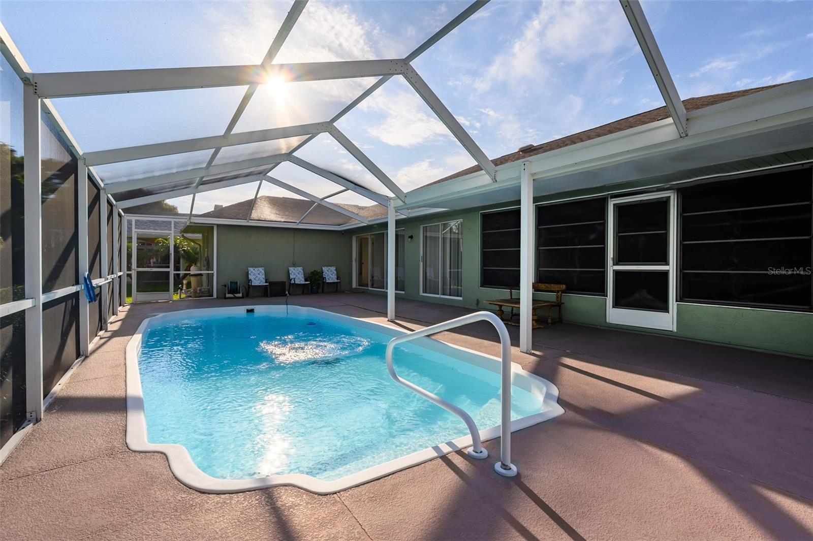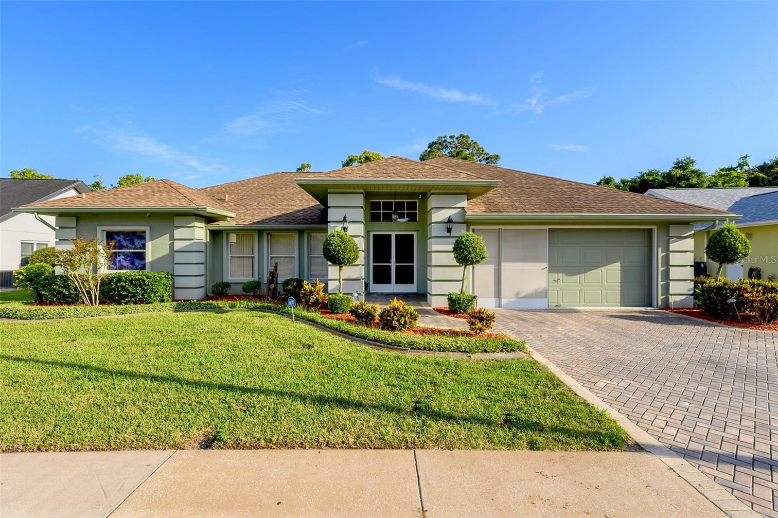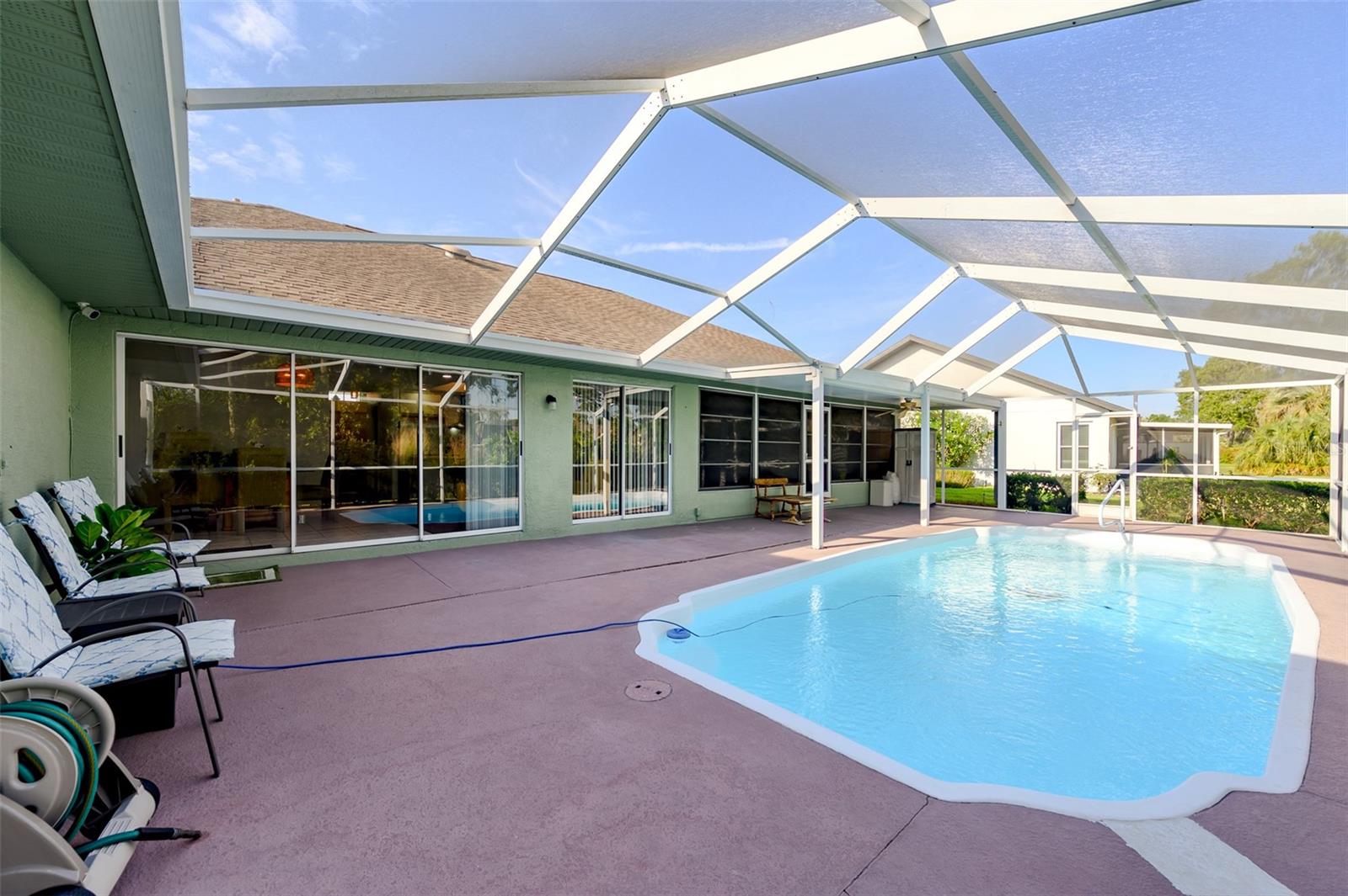 The minute you pull up to this custom built POOL home you see pride of ownership located in the desirable Barrington Woods community. Tons of new upgrades including fresh paint, new flooring, new kitchen appliances and backsplash, new cabinets and island with sink. Beautiful pavers welcome you on the driveway, walkway and around the home to the double entry front door. Beautiful 3 bedroom 2 bath house built as a split plan, Master ensuite with walk in shower and garden tub on one side. Separated by the formal dining room, eat in kitchen, and great room, bedrooms 2 & 3 share a bathroom with bathtub and shower. Great room has a triple slider to the shimmering screen enclosed pool, covered patio for shaded dining and a large area for sunbathing. Did I mention the yard beyond the pool with trees and bushes for privacy. New A C, New Water Softener, New Pool Sweep, washer and dryer convey. Your low quarterly HOA fee offers you use of a spacious clubhouse, fitness center, pool. tennis, pickle-ball, basketball, bocce, activities and games galore. Let's not forget about the close proximity to the stunning Gulf of Mexico! Get out the kayaks or just get in a round of golf at the many public courses available to you. This recognized community sells fast, so don't wait! All information deemed to be accurate. Buyer is responsible for verifying all property information.