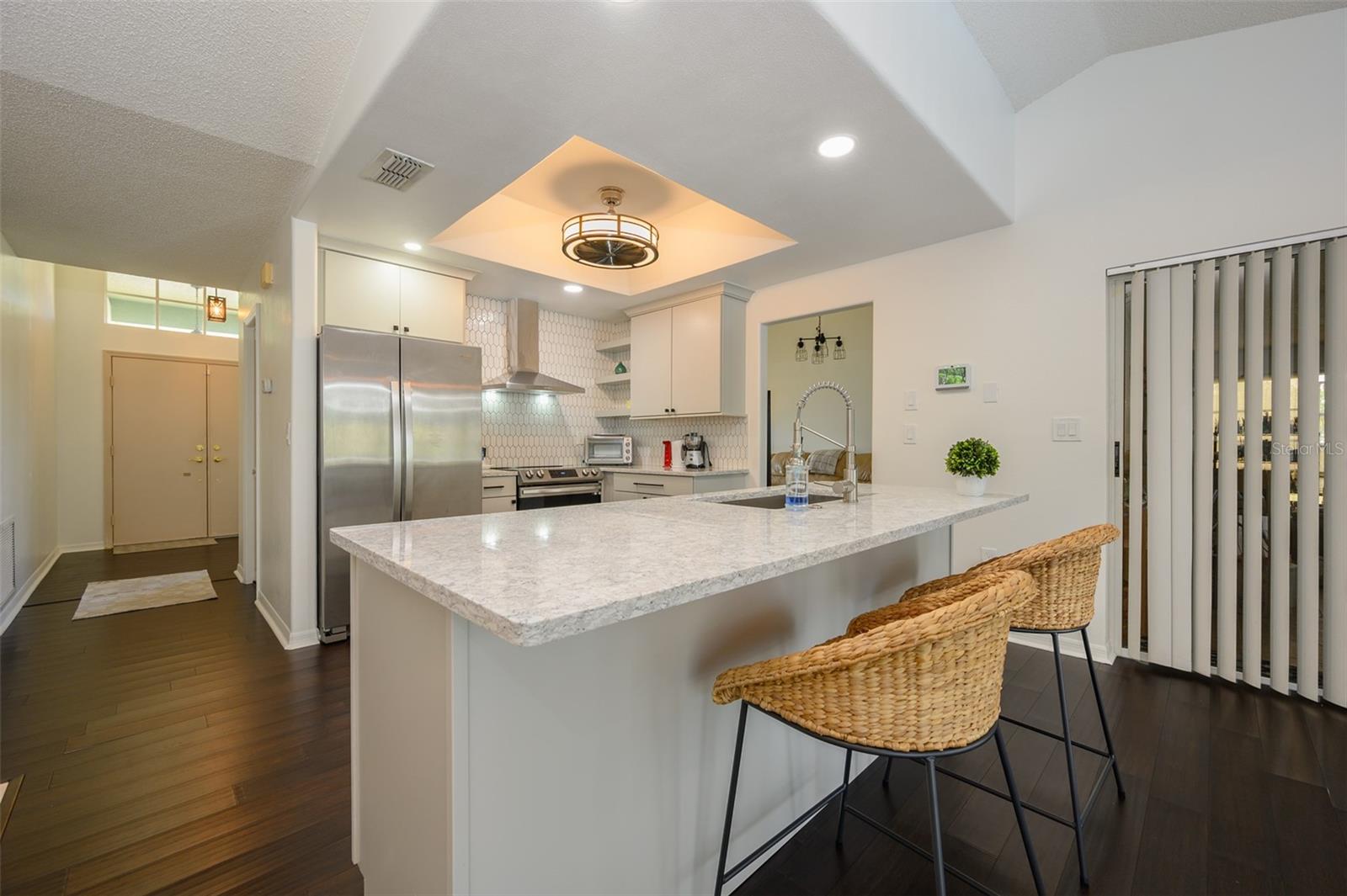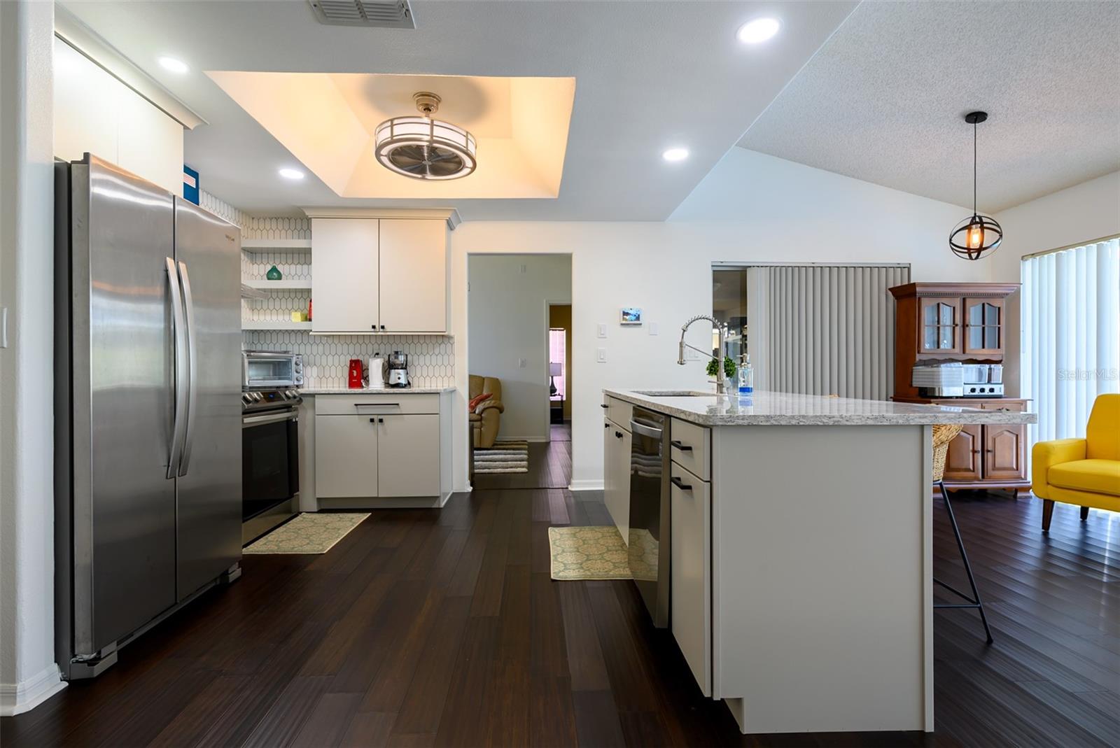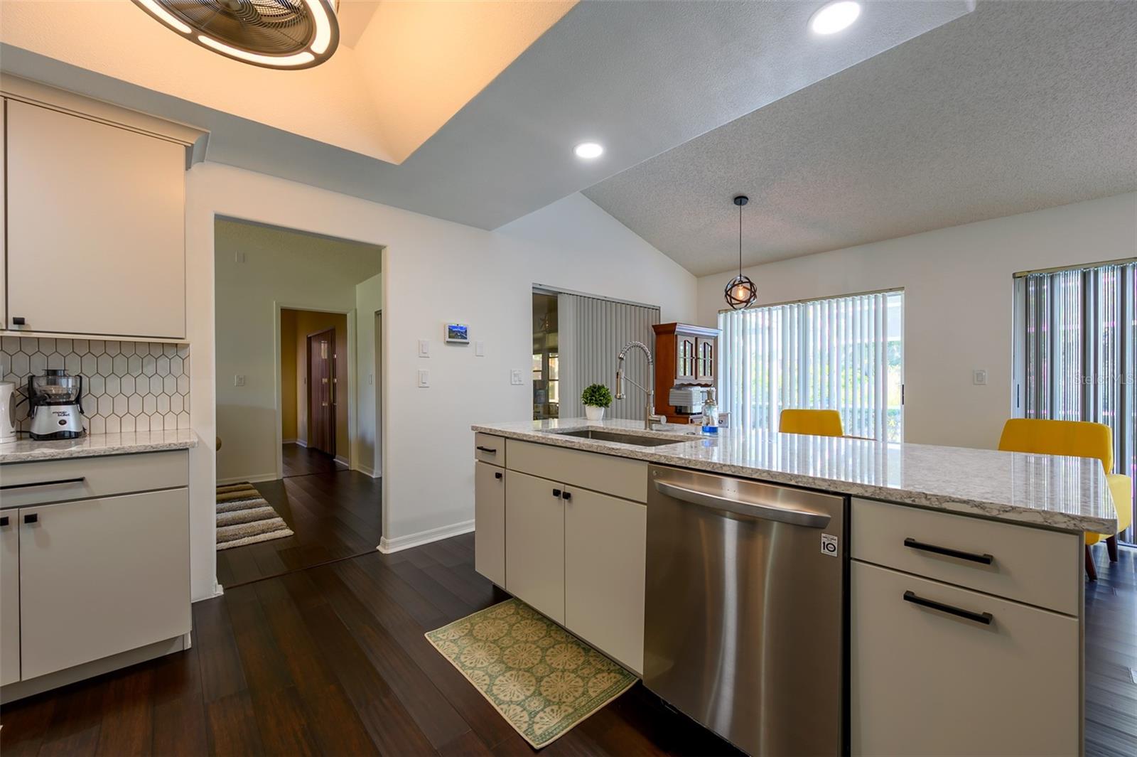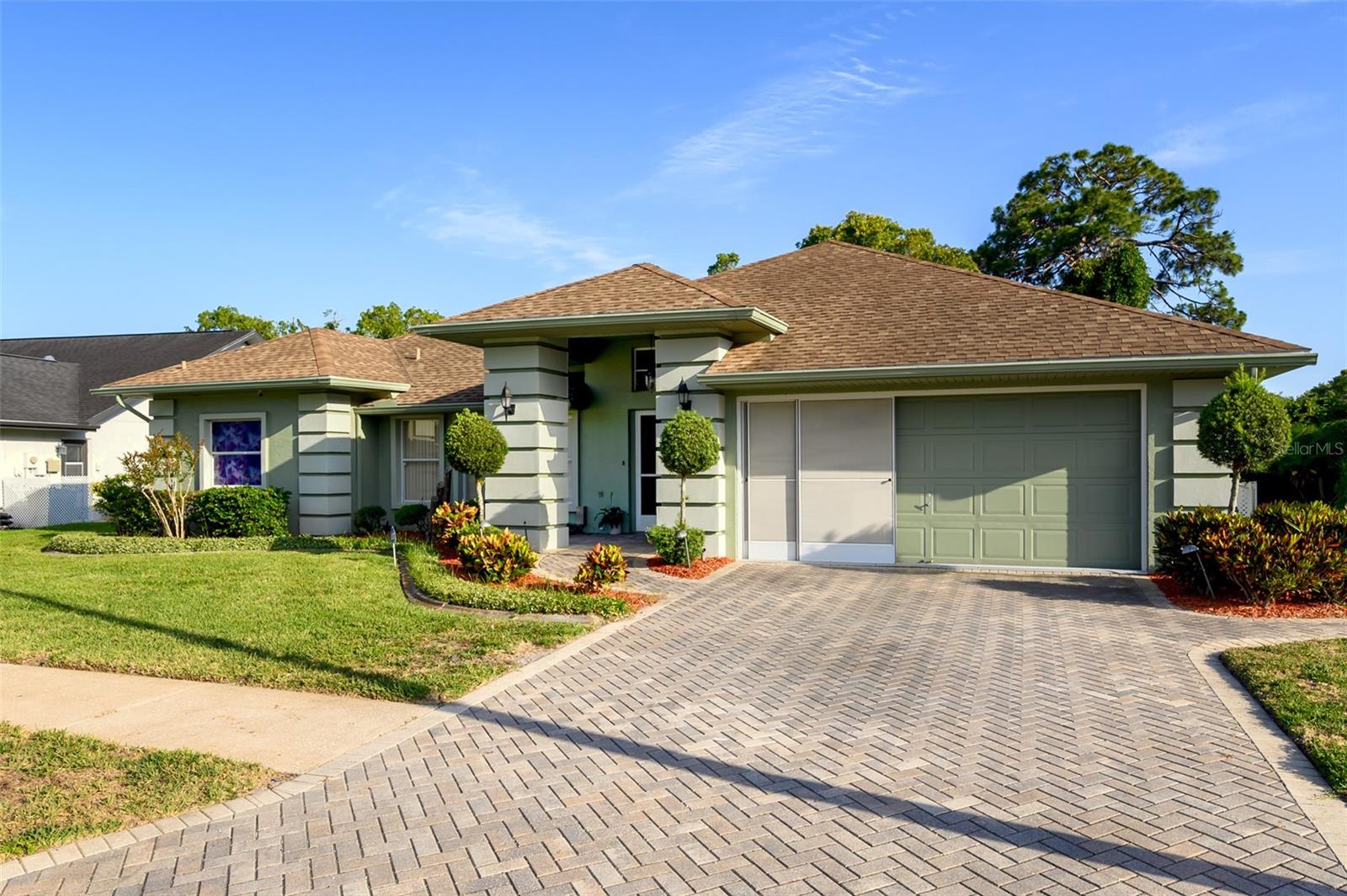 The minute you pull up to this custom built POOL home you see pride of ownership located in the desirable Barrington Woods community. Tons of new upgrades including fresh paint, new flooring, new kitchen appliances and backsplash, new cabinets and island with sink. Beautiful pavers welcome you on the driveway, walkway and around the home to the double entry front door. Beautiful 3 bedroom 2 bath house built as a split plan, Master ensuite with walk in shower and garden tub on one side. Separated by the formal dining room, eat in kitchen, and great room, bedrooms 2 & 3 share a bathroom with bathtub and shower. Great room has a triple slider to the shimmering screen enclosed pool, covered patio for shaded dining and a large area for sunbathing. Did I mention the yard beyond the pool with trees and bushes for privacy. New A C, New Water Softener, New Pool Sweep, washer and dryer convey. Your low quarterly HOA fee offers you use of a spacious clubhouse, fitness center, pool. tennis, pickle-ball, basketball, bocce, activities and games galore. Let's not forget about the close proximity to the stunning Gulf of Mexico! Get out the kayaks or just get in a round of golf at the many public courses available to you. This recognized community sells fast, so don't wait! All information deemed to be accurate. Buyer is responsible for verifying all property information.