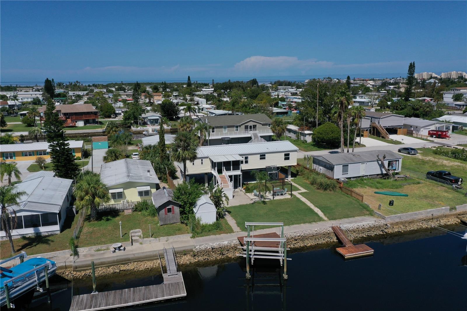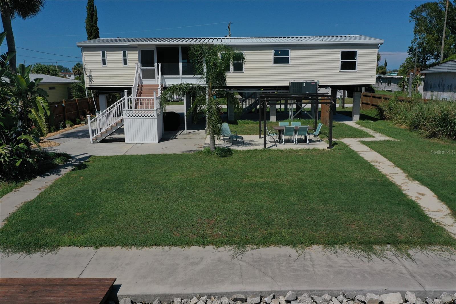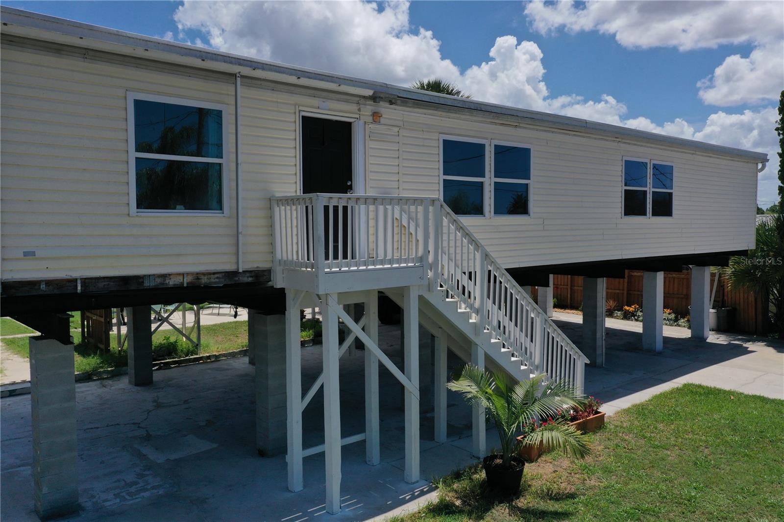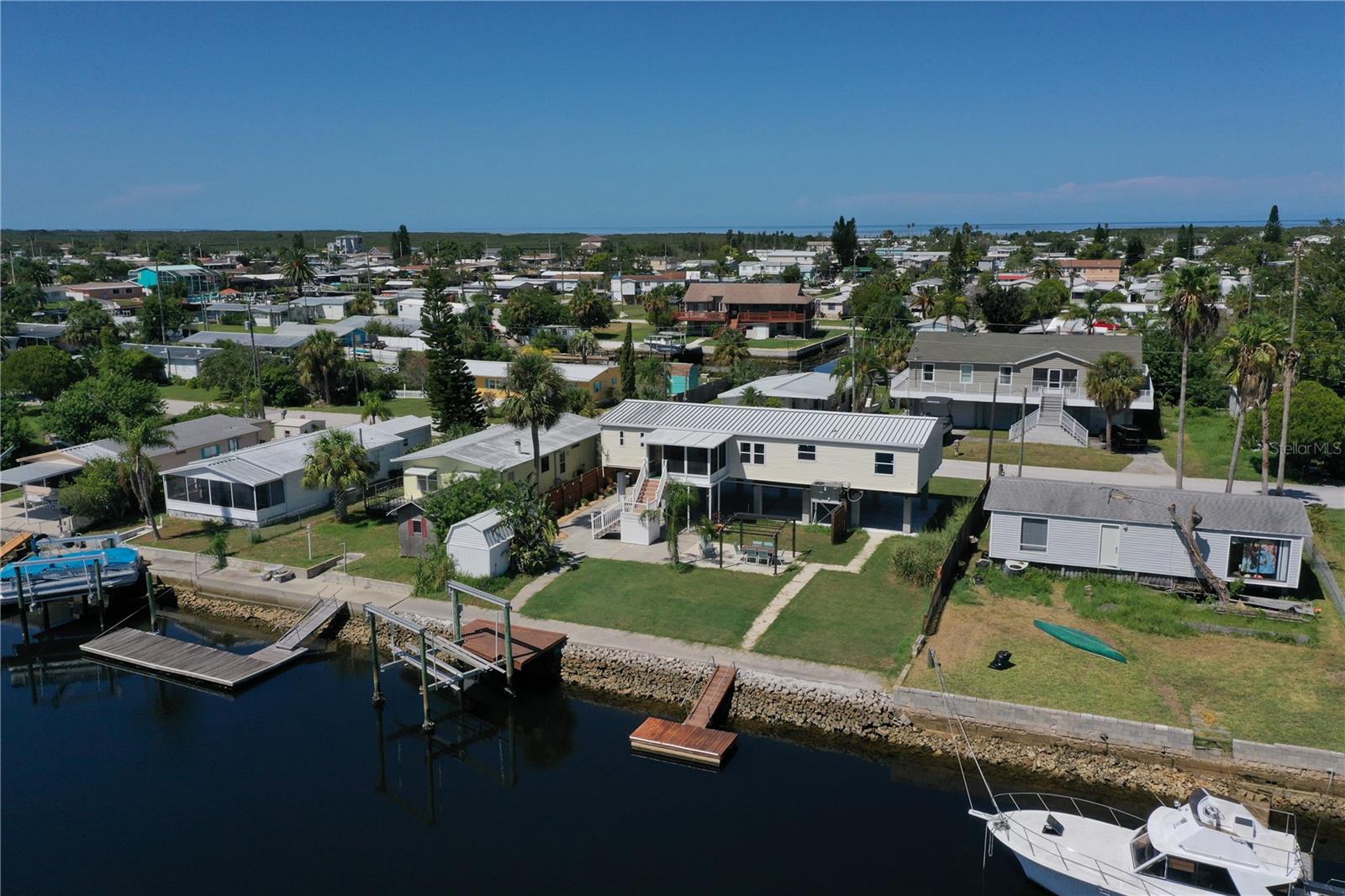 Updated, upgraded & a recent price decrease! This waterfront home, in Signal Cove of Hudson is what you have been looking for with 80 feet of seawall! This 1994 Palm Harbor Stilt Home is unrecognizable from what it was a couple of years ago while available and waiting for it's new owners! Driving into the neighborhood, you get the very sense that the water is nearby. Approaching the property, you'll notice the home is levels above the rest as a spot for relaxing & enjoying that Florida lifestyle. The backyard is spacious & provides a large, covered area for a break from the sun, a sun shaded seating area, large shed & not only a dock with boatlift & a floating dock but 80 glorious feet of seawall!! From the backyard, you can enter the home, via its composite built staircase into the front covered porch. Upon entrance of the home there is an open, airy feeling to the home that greets you inside, with its open floor plan offering a very large living room & dining area combination & the kitchen & breakfast are combination with a desk for convenience. The owner's suite is separate from the spare bedrooms while providing ample space for get togethers. The entire home has wood plank style tiling that runs through the entire floor plan providing consistency for your eye & as well as your sanity. The large owner's suite has a large closet, large window for lighting, a ceiling fan & a private en-suite that is sure to please with its separate shower stall, upgraded wooden vanity, fixtures & hardware while featuring a gorgeous stand-alone tub! Back out to the living room there is a large window, ceiling fan & enough space for the largest of sectionals or couch sets with a full ensemble. There is an open dining area near both the living room & kitchen while the kitchen boasts a breakfast area, a nook with desk & storage, quartz countertops, upgraded stainless steel appliances, solid wood cabinetry, updated fixtures & hardware. Just past the kitchen & delving deeper into the home is where you will find the 3 spare bedrooms, laundry room with exterior exit that can also be used to enter the home & a full updated & upgraded bathroom. The first spare bedroom provides a ceiling fan & a large window while being closest to the kitchen. The second spare bedroom is nearer the full bath & offers a view of the water, through it's window, while having a standard closet & ceiling fan. The third spare bedroom is nearest to the laundry room & linen closet & has a window & no closet. The full spare bathroom has an upgraded glass enclosure shower, wood vanity, framed mirror & upgraded hardware & fixtures. Being only 27 miles from Clearwater beach & 69 miles to Disney World this property should be your next home tour. If you have been looking for something with water frontage and easy access to the Gulf of Mexico, well hear you have it!