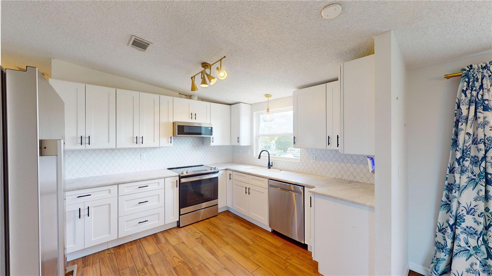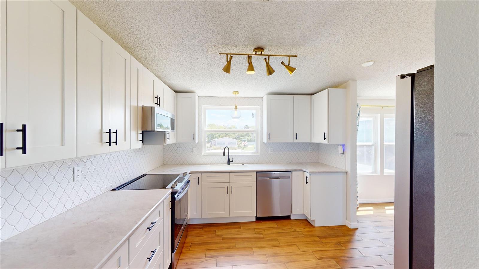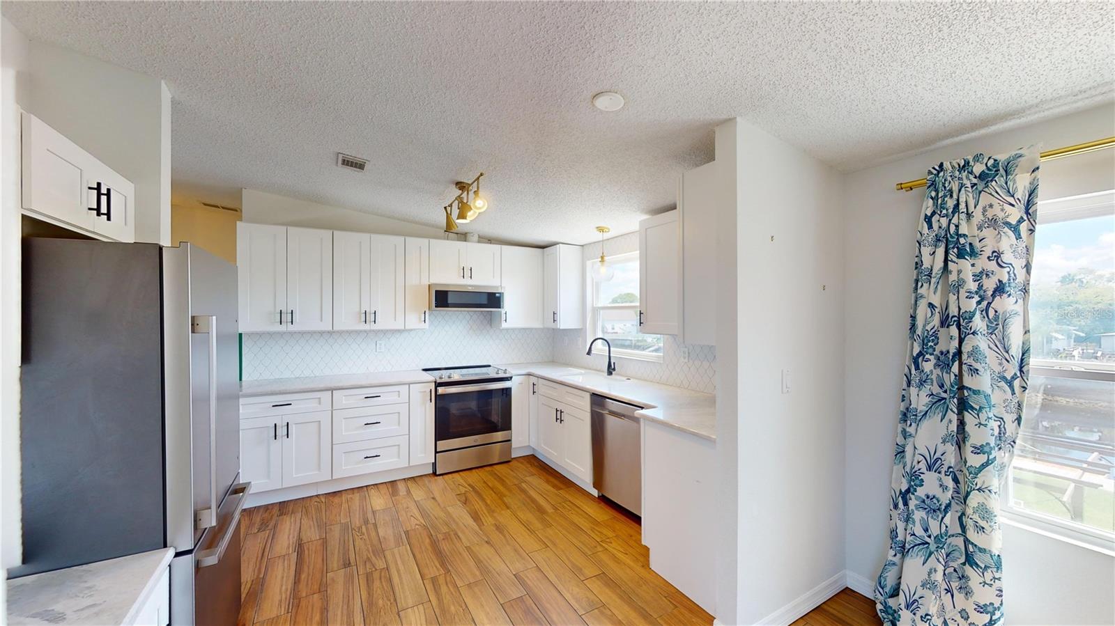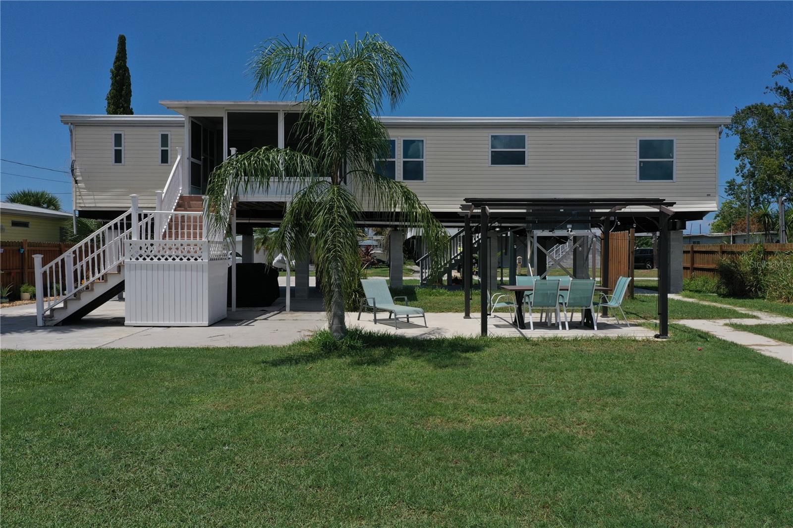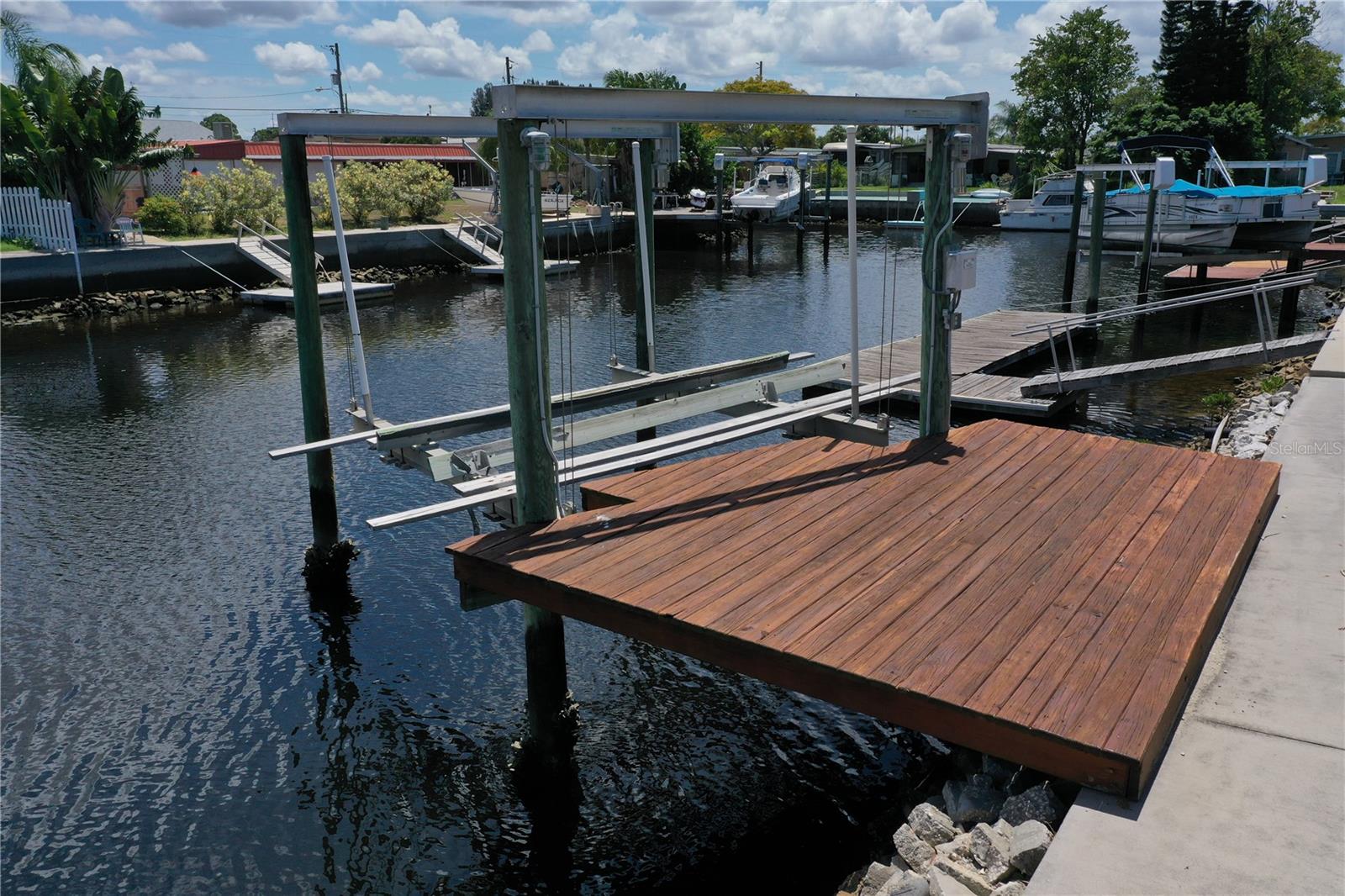 Updated, upgraded & a recent price decrease! This waterfront home, in Signal Cove of Hudson is what you have been looking for with 80 feet of seawall! This 1994 Palm Harbor Stilt Home is unrecognizable from what it was a couple of years ago while available and waiting for it's new owners! Driving into the neighborhood, you get the very sense that the water is nearby. Approaching the property, you'll notice the home is levels above the rest as a spot for relaxing & enjoying that Florida lifestyle. The backyard is spacious & provides a large, covered area for a break from the sun, a sun shaded seating area, large shed & not only a dock with boatlift & a floating dock but 80 glorious feet of seawall!! From the backyard, you can enter the home, via its composite built staircase into the front covered porch. Upon entrance of the home there is an open, airy feeling to the home that greets you inside, with its open floor plan offering a very large living room & dining area combination & the kitchen & breakfast are combination with a desk for convenience. The owner's suite is separate from the spare bedrooms while providing ample space for get togethers. The entire home has wood plank style tiling that runs through the entire floor plan providing consistency for your eye & as well as your sanity. The large owner's suite has a large closet, large window for lighting, a ceiling fan & a private en-suite that is sure to please with its separate shower stall, upgraded wooden vanity, fixtures & hardware while featuring a gorgeous stand-alone tub! Back out to the living room there is a large window, ceiling fan & enough space for the largest of sectionals or couch sets with a full ensemble. There is an open dining area near both the living room & kitchen while the kitchen boasts a breakfast area, a nook with desk & storage, quartz countertops, upgraded stainless steel appliances, solid wood cabinetry, updated fixtures & hardware. Just past the kitchen & delving deeper into the home is where you will find the 3 spare bedrooms, laundry room with exterior exit that can also be used to enter the home & a full updated & upgraded bathroom. The first spare bedroom provides a ceiling fan & a large window while being closest to the kitchen. The second spare bedroom is nearer the full bath & offers a view of the water, through it's window, while having a standard closet & ceiling fan. The third spare bedroom is nearest to the laundry room & linen closet & has a window & no closet. The full spare bathroom has an upgraded glass enclosure shower, wood vanity, framed mirror & upgraded hardware & fixtures. Being only 27 miles from Clearwater beach & 69 miles to Disney World this property should be your next home tour. If you have been looking for something with water frontage and easy access to the Gulf of Mexico, well hear you have it!