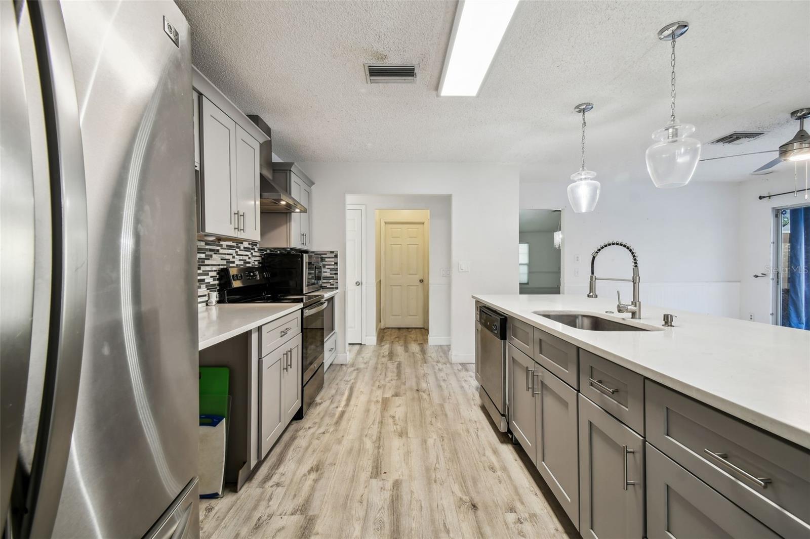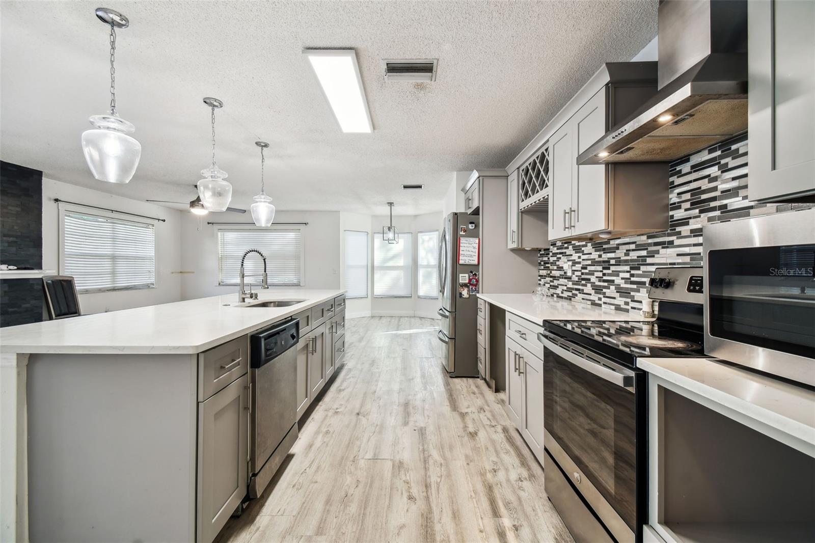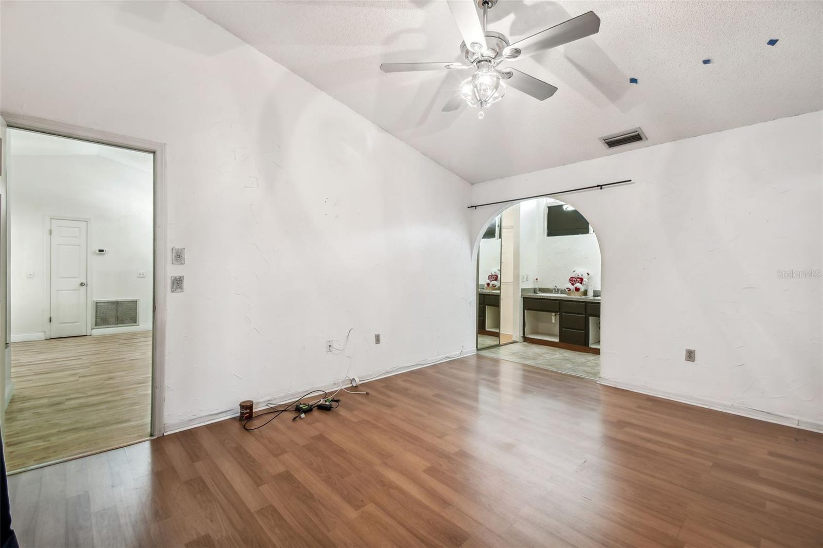 Seller is giving $4,000 towards closing cost credit. Welcome home to your pool home in Beacon Woods East! Home has new roof 2024. Four bedrooms, two bathrooms. This home feels light and airy with vaulted ceilings throughout the living areas and master bedroom. Enjoy your screened in pool and pavered patio - perfect for entertaining or relaxing on hot summer days. The Master Suite is large with a private entry to the pool and patio. The ensuite master bathroom features a dual sink, large walk-in closet and step-in shower. Two separate living areas - both warm and inviting. The large kitchen boasts lots of counter space and an open concept overlooking the family room. Custom-made sliding barn doors in the second bedroom are the perfect modern farmhouse feel. The sprinkler system runs on its own separate well so your lawn will always be lush and green without breaking the bank on your water bill. Fully insurable. Flood Insurance NOT REQUIRED. Schedule your tour today!