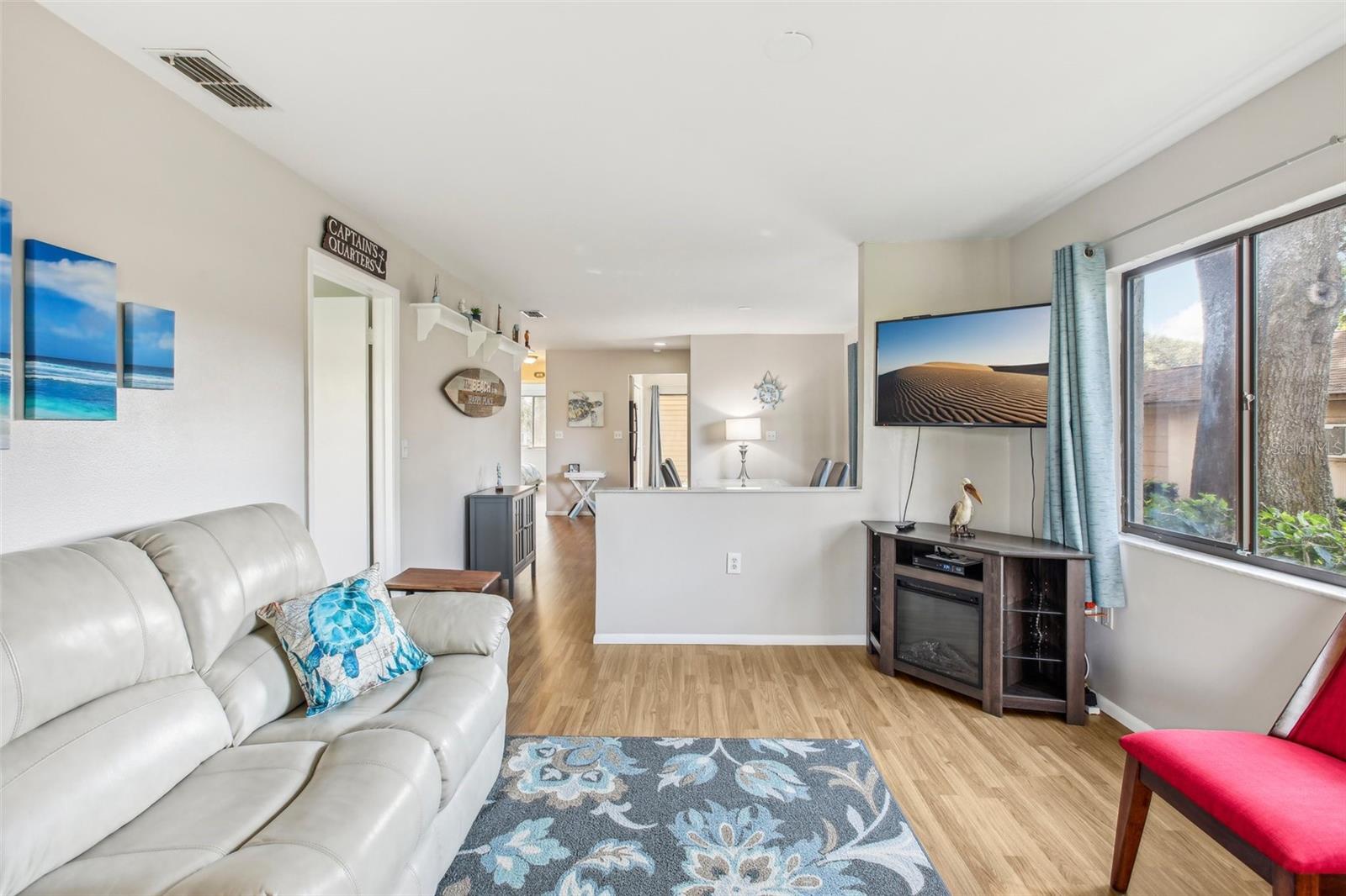Welcome to the most elegant listing in Beacon Woods Wedgewood Condos, just minutes from the Gulf of Mexico! This beautifully maintained 2-bedroom, 2-bathroom end unit is perfectly situated within a vibrant 55+ community, overlooking one of Hudson’s most renowned golf courses. Fully furnished and move-in ready, this home is designed for convenience and comfort. Step inside and be greeted by laminate wood-look flooring and a bright, open-concept layout. The spacious kitchen flows seamlessly to the patio for nice meals on the porch, perfect for entertaining family and friends. Both bedrooms are generously sized, featuring large closets and plenty of room for king-sized furniture. Enjoy peaceful mornings or relaxed evenings in the covered Florida Room with a stunning view of the golf course. Residents of Beacon Woods Wedgewood Condos have access to a wealth of amenities, including a golf course, tennis courts, a recreation and fitness center, and a heated pool. Condo fees include cable, water, trash, sewer, and pest control, offering carefree living at its finest. This property truly feels like a vacation home—schedule your tour today and make it yours!