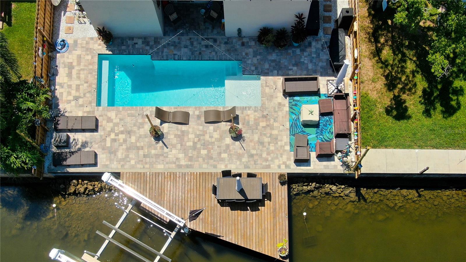 Welcome to your golf cart friendly, waterfront oasis with transferrable flood insurance under $700 annually. This home also comes fully furnished. Perfect for STRs, second home, or primary. Move in ready, with all the updates. The primary has two walk in closets with a newly remodeled walk-in shower. Plenty of room for entertaining with an additional 525 heated sqft (not included in tax record) bar and game area. The sleeper sofa also accommodates two more. As you make your way outside you'll find your saltwater pool, gazebo, dock, and 10k lb boat lift. With less than 5 minute ride to the Gulf you'll pass through an estuary that has an abundance of fish. Truly a fisherman's paradise! Otherwise take the kayaks/paddleboards to the springs to see the manatees. There is also a workshop with over 320 sqft. Seller holds an active Florida RE license