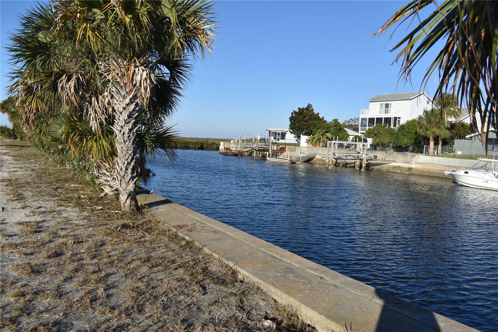 Price Reduced to $200,000. This house did flood- bottom drywall 36" and flooring removed -dried out by Servpro. Renovate or rebuild new. Priced accordingly. CASH ONLY.. There is a bird sanctuary behind the property but no water access there. At the end of the street is a private park for the community and the houses not on the canal side have mooring lots. This one is 95A (see map in the photos). Main bedroom has an ensuite bath and there is a second hall bath for the other 2 bedrooms. Sliders lead to a rear porch and then an open patio. All the windows and siiders are newer impact windows. Washer/dryer hook up in garage.