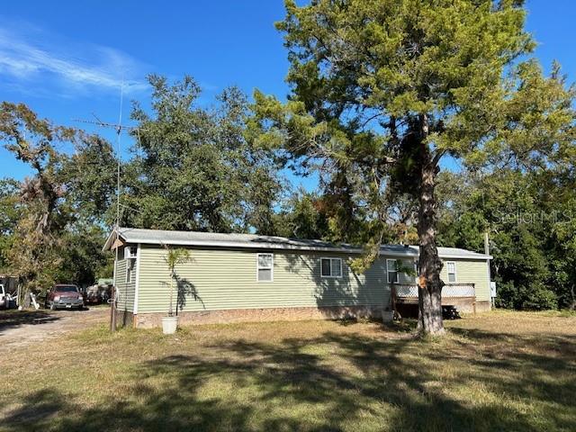 Oakwood Acres in Hudson, this delightful manufactured home offers a unique opportunity to enjoy peaceful country living on 1.3 acres of land, free from HOA or CDD restrictions. Featuring 2 bedrooms, 2 full baths and 1152 square feet of living space. The open floor plan creates a bright and inviting atmosphere throughout the home, perfect for entertaining family and friends. Kitchen boasts plenty of cabinets and counter space. The primary bedroom has a bathroom and walk in closet. For your convenience, washer and dryer hookups are located inside the home. Enjoy your morning coffee or unwind in the evening on the spacious deck. The expansive outdoor area offers ample room for gardening, leisure or future projects. Located in a non-flood zone. Washer & Dryer negotiable. Seller financing available with 20% down.