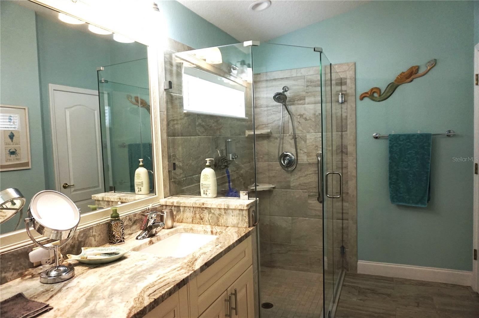 JUST REDUCED!! Heritage Pines is proud to list a very updated, single-family home of 1491 square feet. The house is located in the center of the community and is close to everything. Updates include a new Roof May 2025, exterior and interior painting within the year, the master bath was completely updated recently, and the living room was updated with a ship-lap wall of American Planking, Coastal in color, just months ago. The AC was replaced in 2016, the water heater in 2022, and the softener in 2023. All kitchen appliances were replaced in 2023. There are custom light fixtures and ceiling fans throughout. The Lanai is enclosed with vinyl windows to keep out the rain/wind. The property has mature landscaping, curbing around bed areas, driveway design, garage keypad, and coach lights. Heritage Pines is a very active community that offers a private 18-hole golf course, Olympic-sized swimming pool and spa, lighted tennis courts, pickleball courts, excellent dining and entertainment, and clubs/crafts to meet every interest. A great community to experience a great lifestyle.