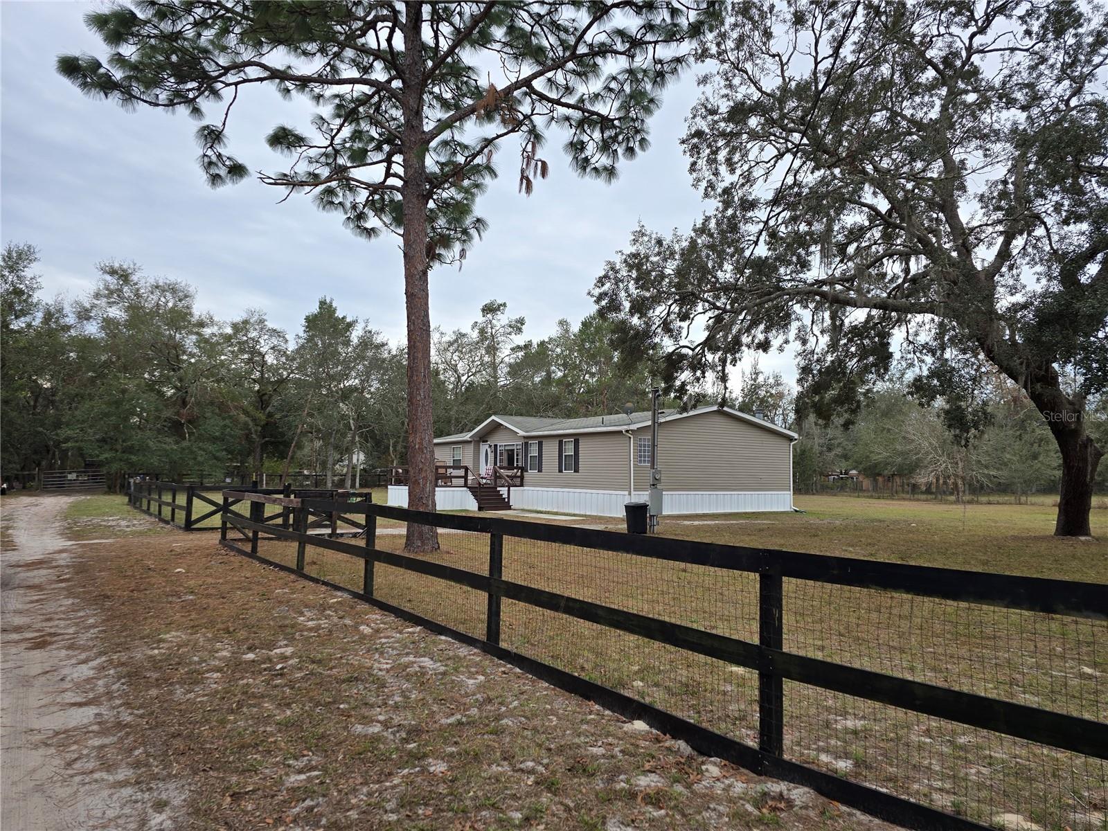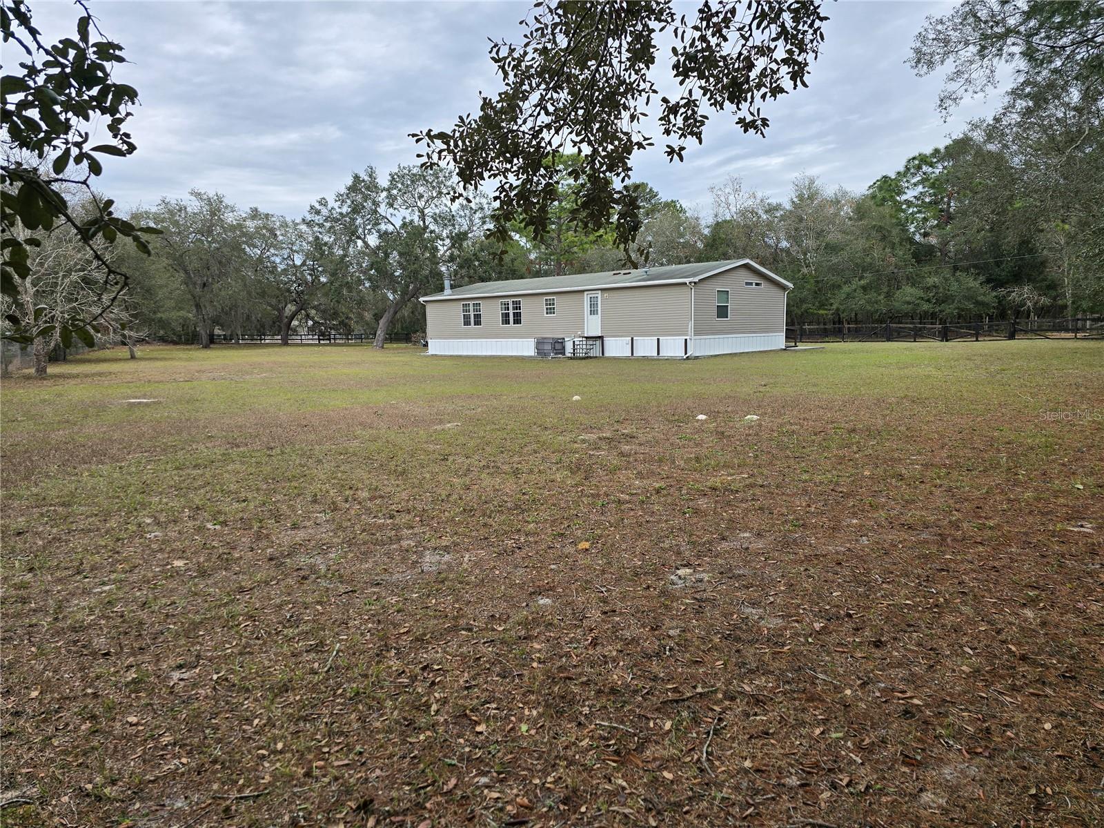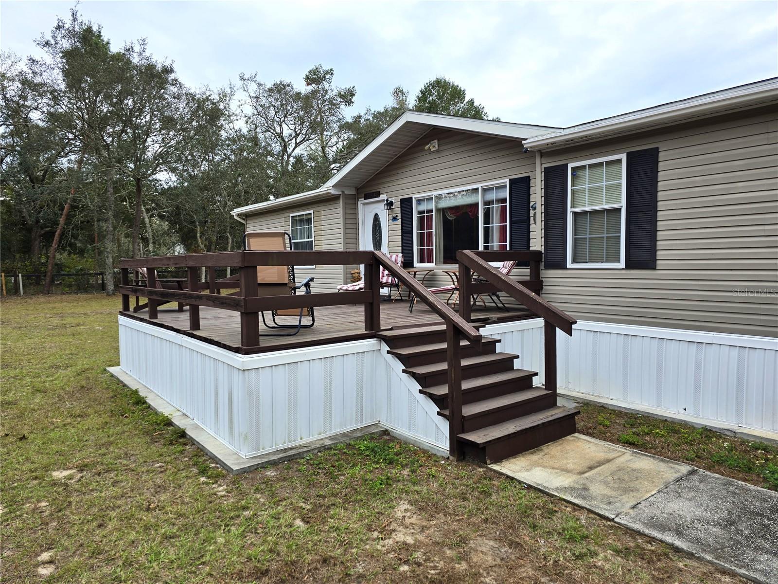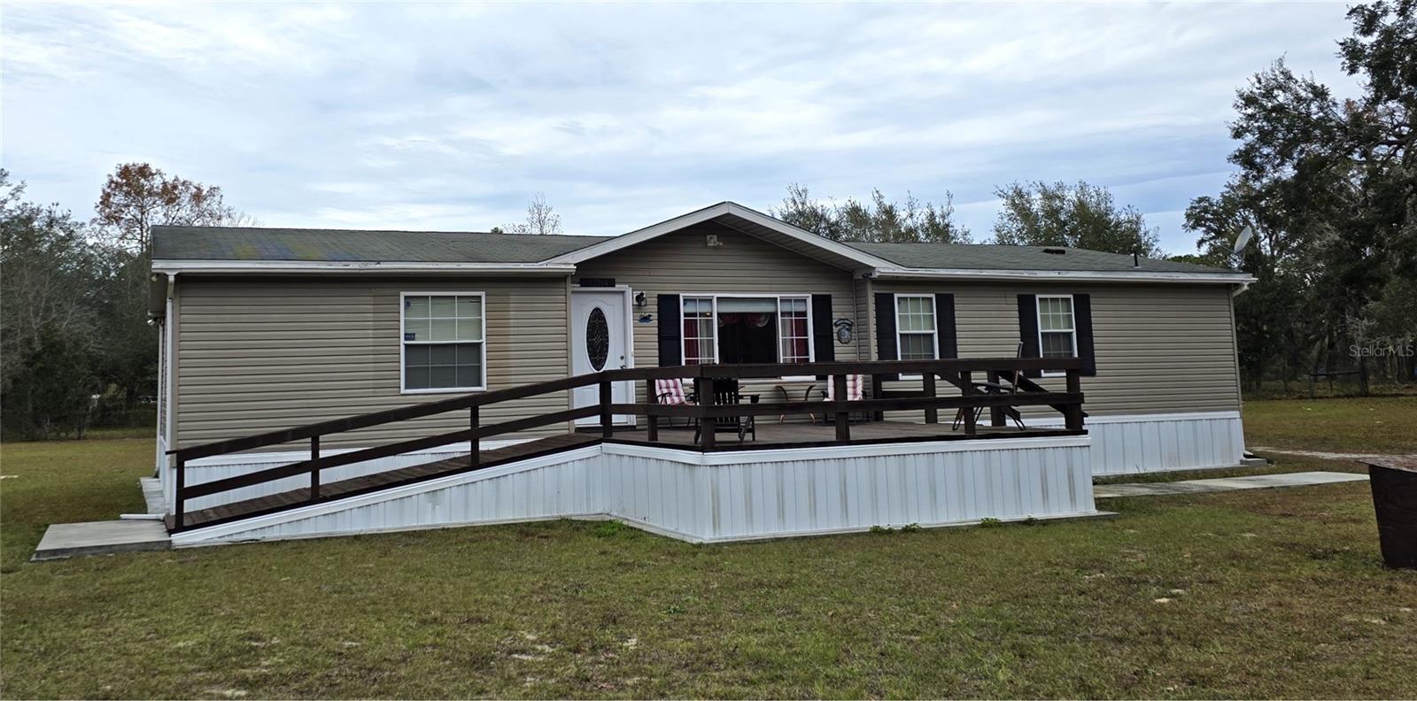HOME WILL HAVE BRAND NEW ROOF BY CLOSING! - Country Living at its best! This completely fenced in 3 bedroom home is situated on over an acre at the end of a quiet street. The huge wood front deck faces East for the peaceful sunrise morning coffee and is perfect for unwinding with friends in the evening. The front door brings you into the Formal Living Room with tile at the entry and laminate flooring throughout the rest of the main areas. The spacious Kitchen, Dining Room and Family Room are joined into a large Great Room with Cathedral Ceilings. The cozy living room has a wood burning fireplace. The Primary Bedroom is on one end of the house with its private bathroom complete with a walk-in closet, Garden tub, separate shower and double sinks. The other 2 bedrooms and bathroom are on the other side of the house. There is a Laundry room conveniently located off the bedrooms and kitchen areas with a door to the backyard. The 1.21 acre yard is cleared and ready for a horse or dogs to run! This location gives you all the seclusion of the country while still being less than 15 minutes in every direction to all the amenities you need. A water treatment system that removes iron has been installed so no discolored water leaving stains and cleaner water for laundry and skin! Concrete poured all the way around the home under the skirting. This house has been very well maintained and is very clean.