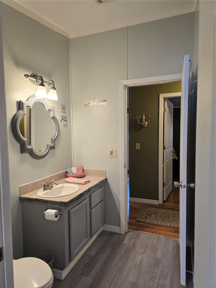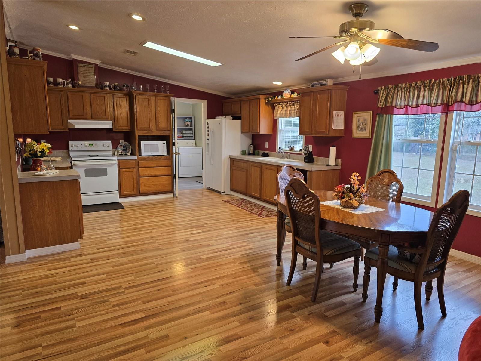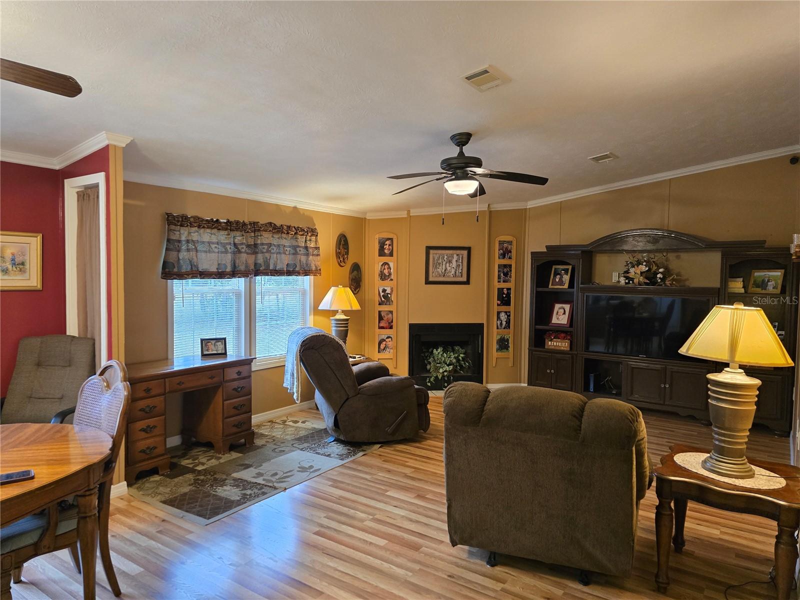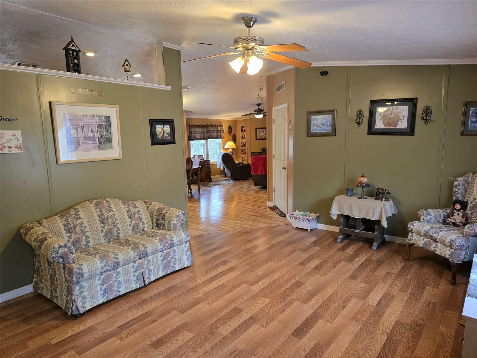 HOME WILL HAVE BRAND NEW ROOF BY CLOSING! - Country Living at its best! This completely fenced in 3 bedroom home is situated on over an acre at the end of a quiet street. The huge wood front deck faces East for the peaceful sunrise morning coffee and is perfect for unwinding with friends in the evening. The front door brings you into the Formal Living Room with tile at the entry and laminate flooring throughout the rest of the main areas. The spacious Kitchen, Dining Room and Family Room are joined into a large Great Room with Cathedral Ceilings. The cozy living room has a wood burning fireplace. The Primary Bedroom is on one end of the house with its private bathroom complete with a walk-in closet, Garden tub, separate shower and double sinks. The other 2 bedrooms and bathroom are on the other side of the house. There is a Laundry room conveniently located off the bedrooms and kitchen areas with a door to the backyard. The 1.21 acre yard is cleared and ready for a horse or dogs to run! This location gives you all the seclusion of the country while still being less than 15 minutes in every direction to all the amenities you need. A water treatment system that removes iron has been installed so no discolored water leaving stains and cleaner water for laundry and skin! Concrete poured all the way around the home under the skirting. This house has been very well maintained and is very clean.