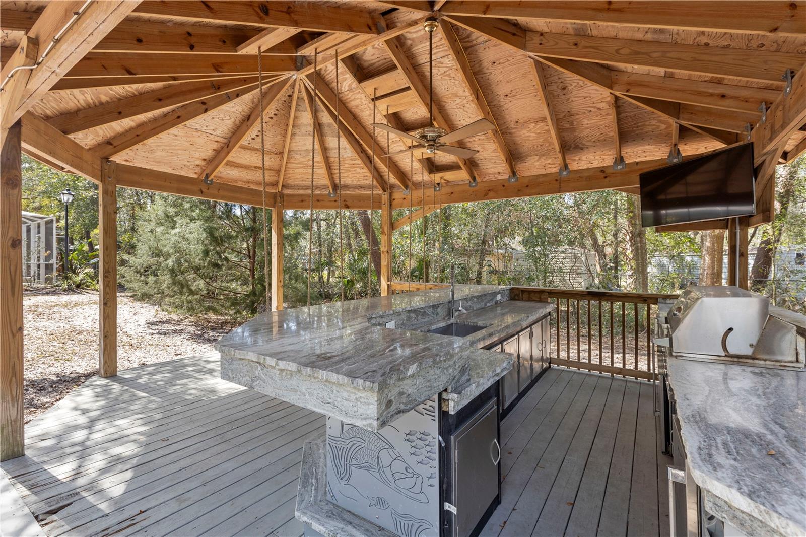 Buyers get a 1-year buy down with use of preferred lender! Welcome to your private oasis! This beautifully updated 3-bedroom, 3-bath home sits on 2.5 acres of lush, fenced land—offering both tranquility and versatility. Whether you’re dreaming of a hobby farm, a serene retreat, or a place to house your horses, this property has it all. Step inside to a stunning modern kitchen with high-end appliances, sleek countertops, and custom cabinetry—truly a chef’s dream. The spacious living area features an UPDATED fireplace, perfect for cozy nights in, and IMPACT WINDOWS throughout for added peace of mind and energy efficiency. Step outside to an entertainer’s paradise with a sparkling pool, outdoor fireplace, and jacuzzi, all set against the backdrop of your private acreage. Not one, but TWO outdoor kitchens make hosting effortless, whether it’s a casual barbecue or a full-blown event. The acreage offers horse-friendly zoning, and there’s plenty of room to build a barn, paddock, or riding arena. The level, open land is ideal for pasture or turnout, and there’s ample space for trail riding, gardening, or adding additional outbuildings. Whether you’re a seasoned equestrian or just starting your homestead journey, this land offers the space and flexibility to make your vision a reality. Roof (2005) was inspected in 2024 with no leaks or concerns. HVAC (2005). This home is the perfect blend of elegance, functionality, and rural charm—a rare opportunity to enjoy luxury living with room for your horses and more!