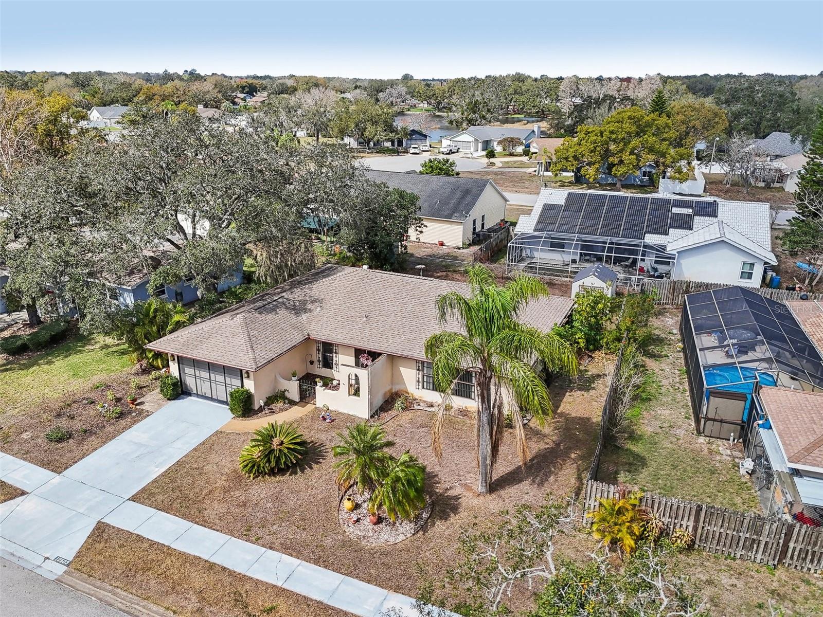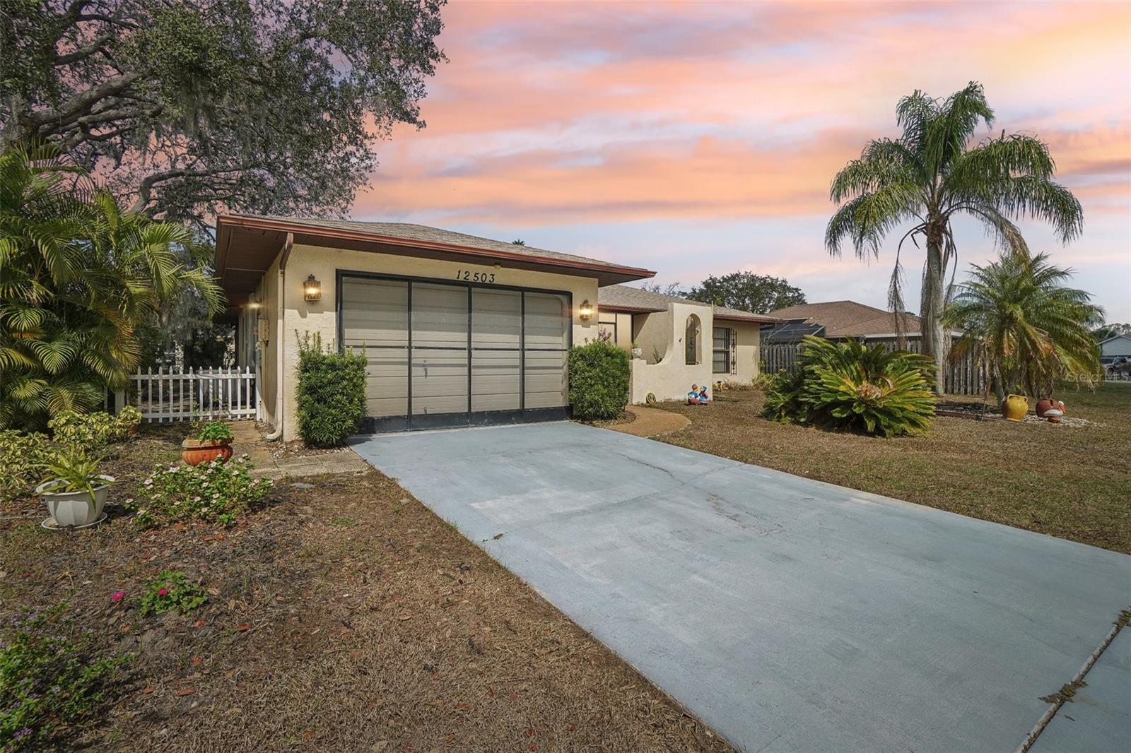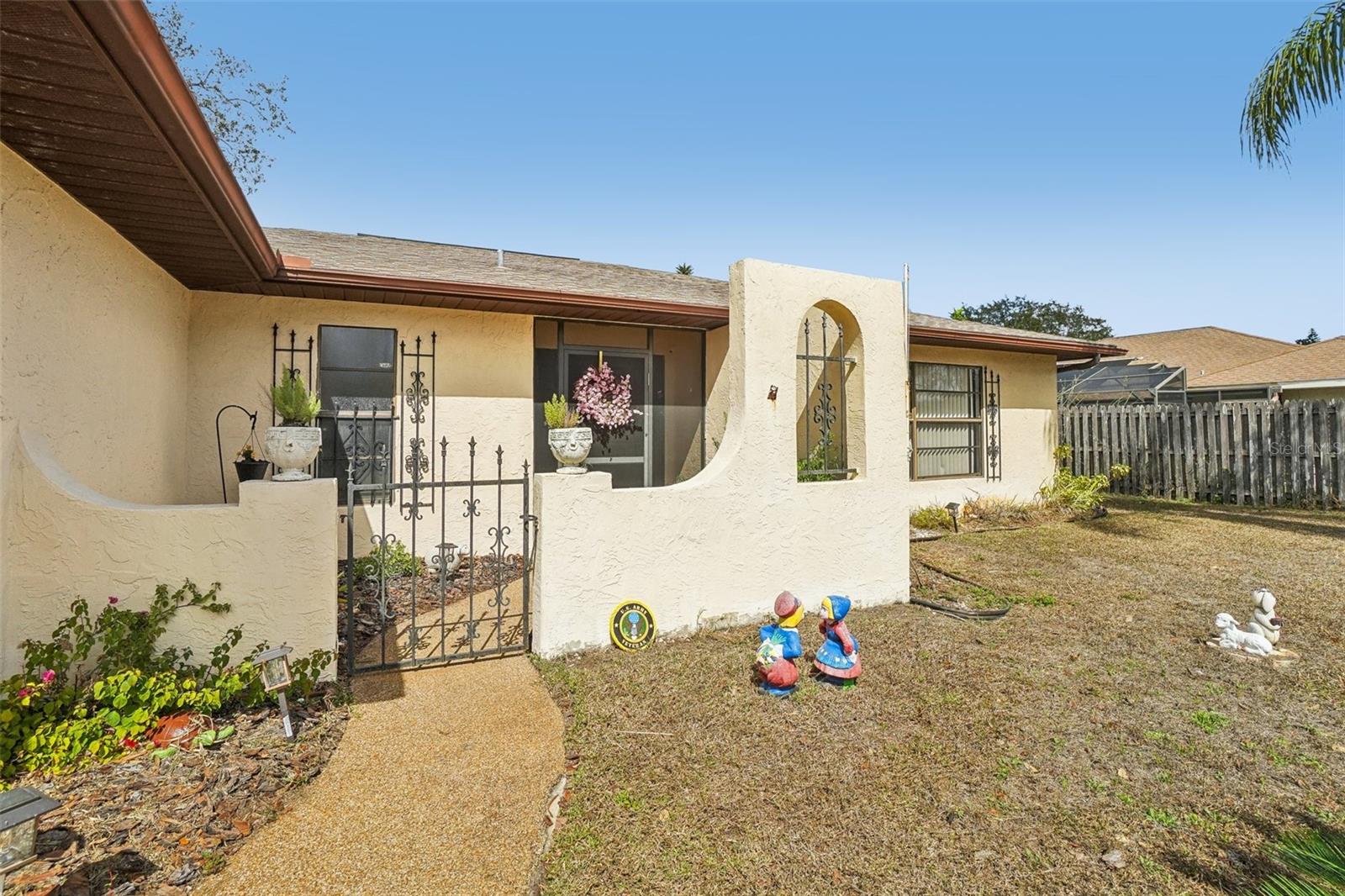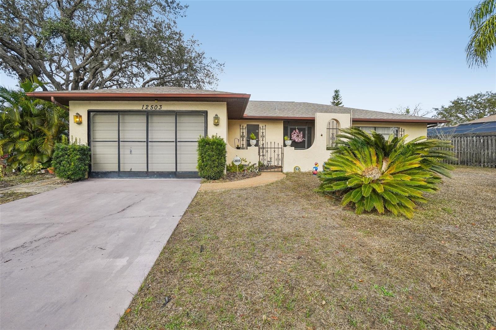 Large Price Decrease! Single Family 2 bedroom 2 bath well cared for home situated in a quiet neighborhood and great location. Open floor plan, Courtyard entrance leads in to the bright and large living, dining, and kitchen areas with views into both the front and back yards. The large owner's suite has a walk-in closet and ensuite bath, there is an equally spacious second bedroom with a large closet and full bath across the hallway. The enclosed Florida room leads out to a "fully fenced" back yard with room to expand the home or to add a pool. Important items to note: Roof only 6 years old, Carpet less than a year old with 20 yr., transferrable warranty, new range with air fryer, new microwave/hood vent, new 8x10 outside shed, Washer and Dryer included (washer is near new), water heater is less than a year old, sprinkler system was updated and serviced water for system is supplied by well, cabinets added to garage for storage. This is a great quiet neighborhood which the home did not receive any damage from either of the recent hurricanes. All floors will be cleaned by Stanley Steamer prior to listing for buyer's convenience. Property is a short drive to the Suncoast Parkway, shopping, restaurants, medical facilities and the Florida Beaches.