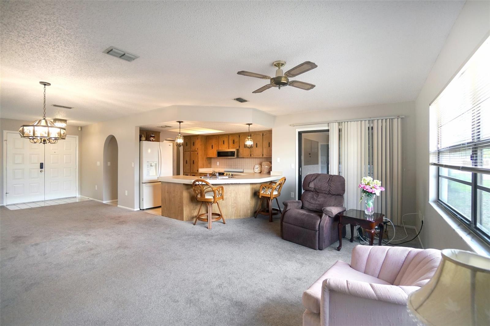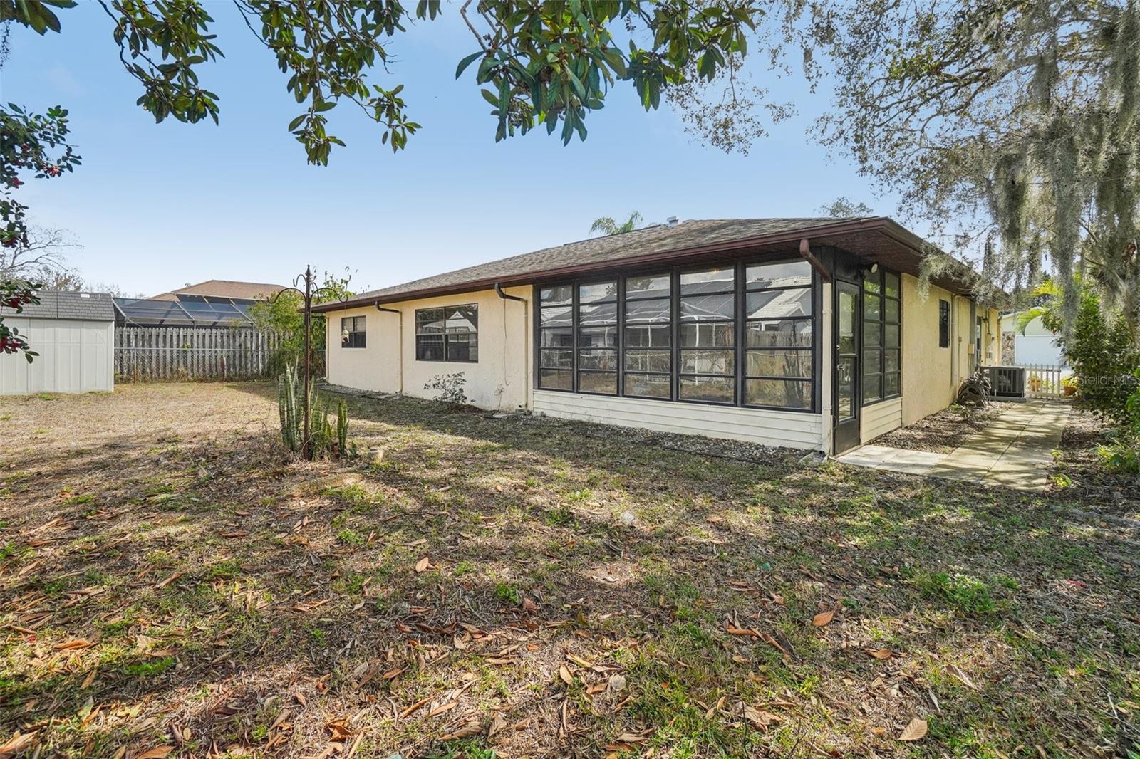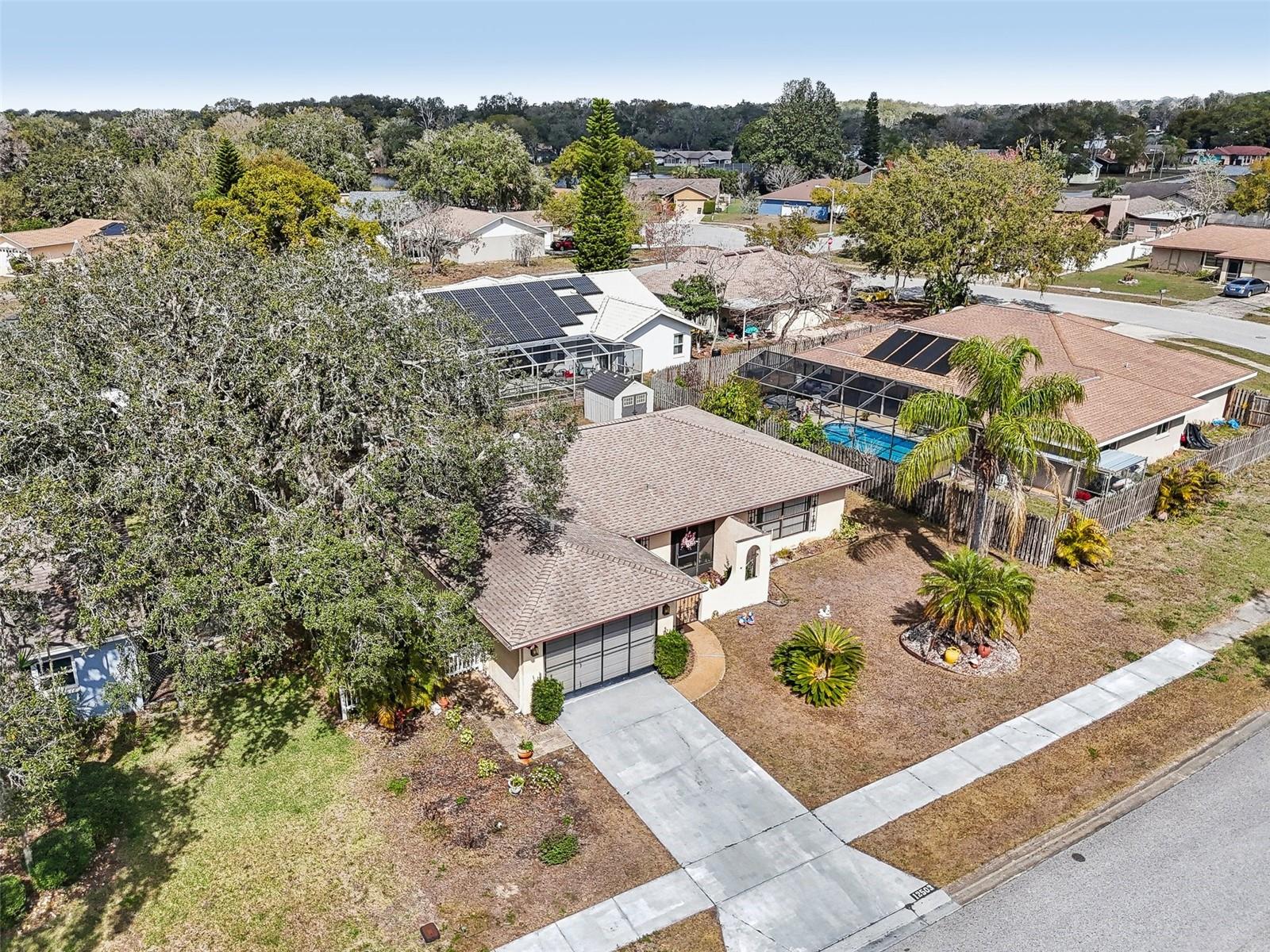 Large Price Decrease! Single Family 2 bedroom 2 bath well cared for home situated in a quiet neighborhood and great location. Open floor plan, Courtyard entrance leads in to the bright and large living, dining, and kitchen areas with views into both the front and back yards. The large owner's suite has a walk-in closet and ensuite bath, there is an equally spacious second bedroom with a large closet and full bath across the hallway. The enclosed Florida room leads out to a "fully fenced" back yard with room to expand the home or to add a pool. Important items to note: Roof only 6 years old, Carpet less than a year old with 20 yr., transferrable warranty, new range with air fryer, new microwave/hood vent, new 8x10 outside shed, Washer and Dryer included (washer is near new), water heater is less than a year old, sprinkler system was updated and serviced water for system is supplied by well, cabinets added to garage for storage. This is a great quiet neighborhood which the home did not receive any damage from either of the recent hurricanes. All floors will be cleaned by Stanley Steamer prior to listing for buyer's convenience. Property is a short drive to the Suncoast Parkway, shopping, restaurants, medical facilities and the Florida Beaches.
