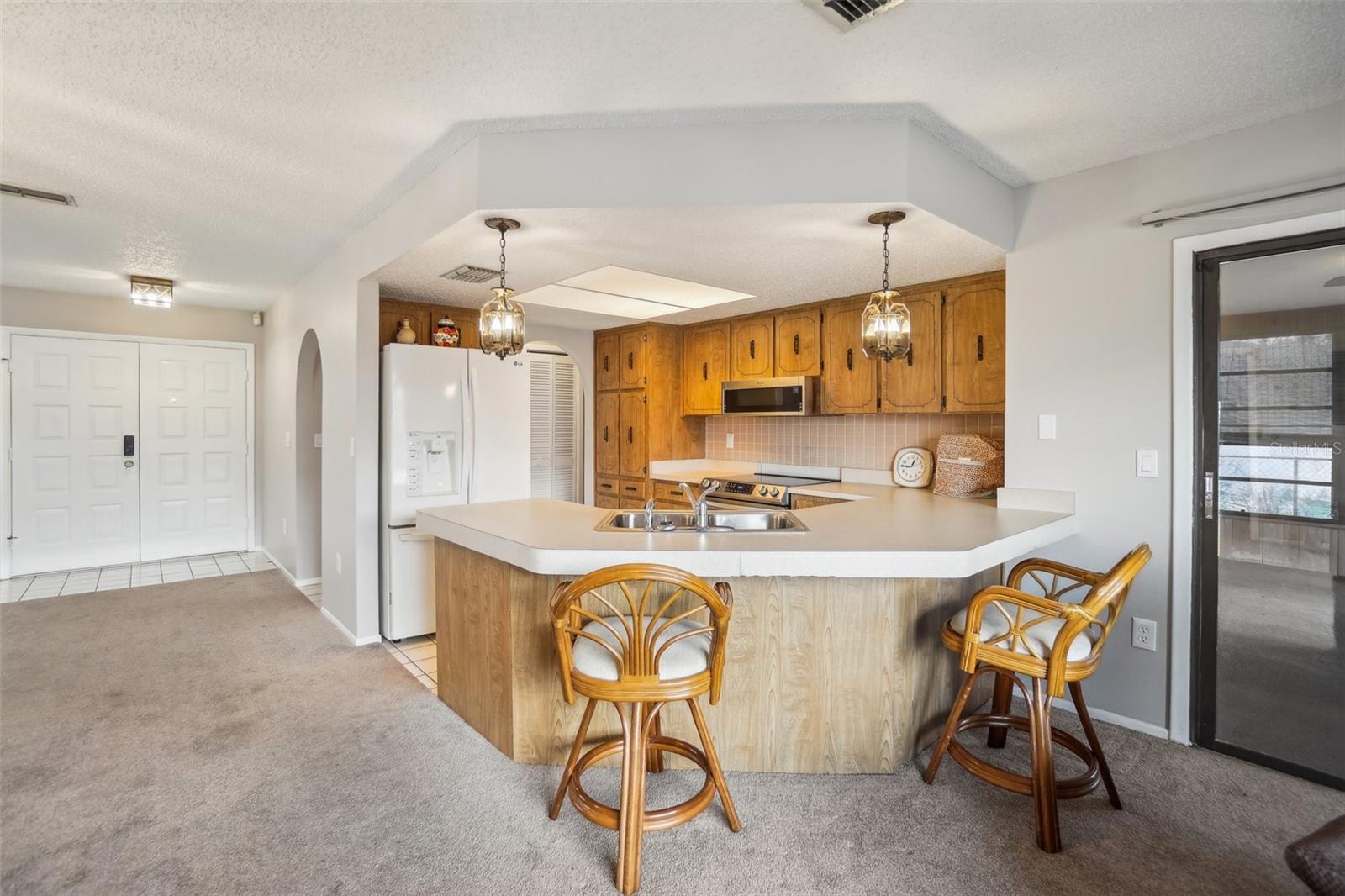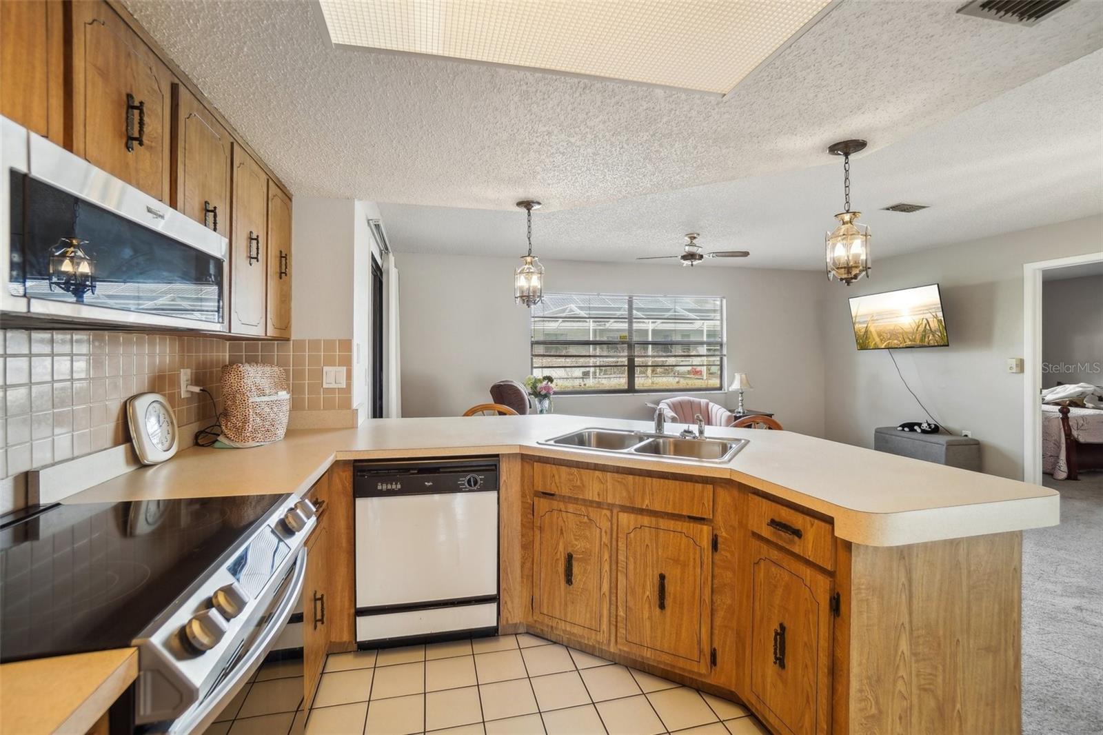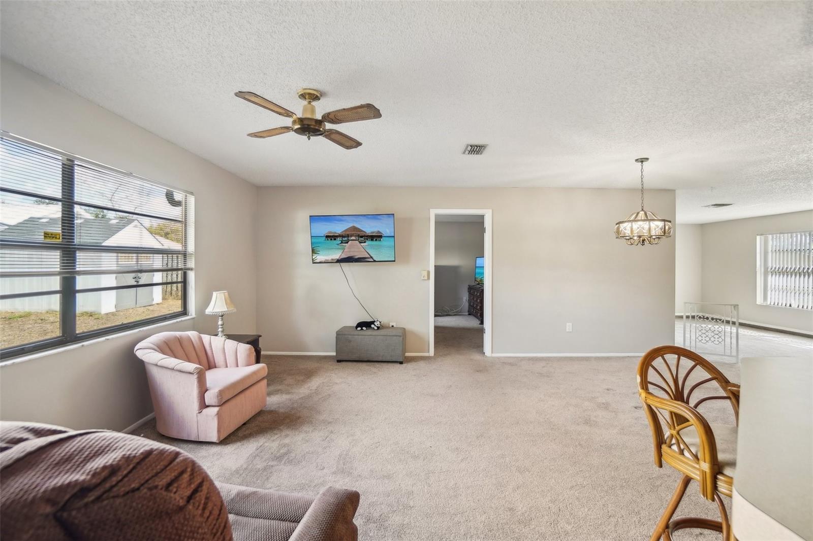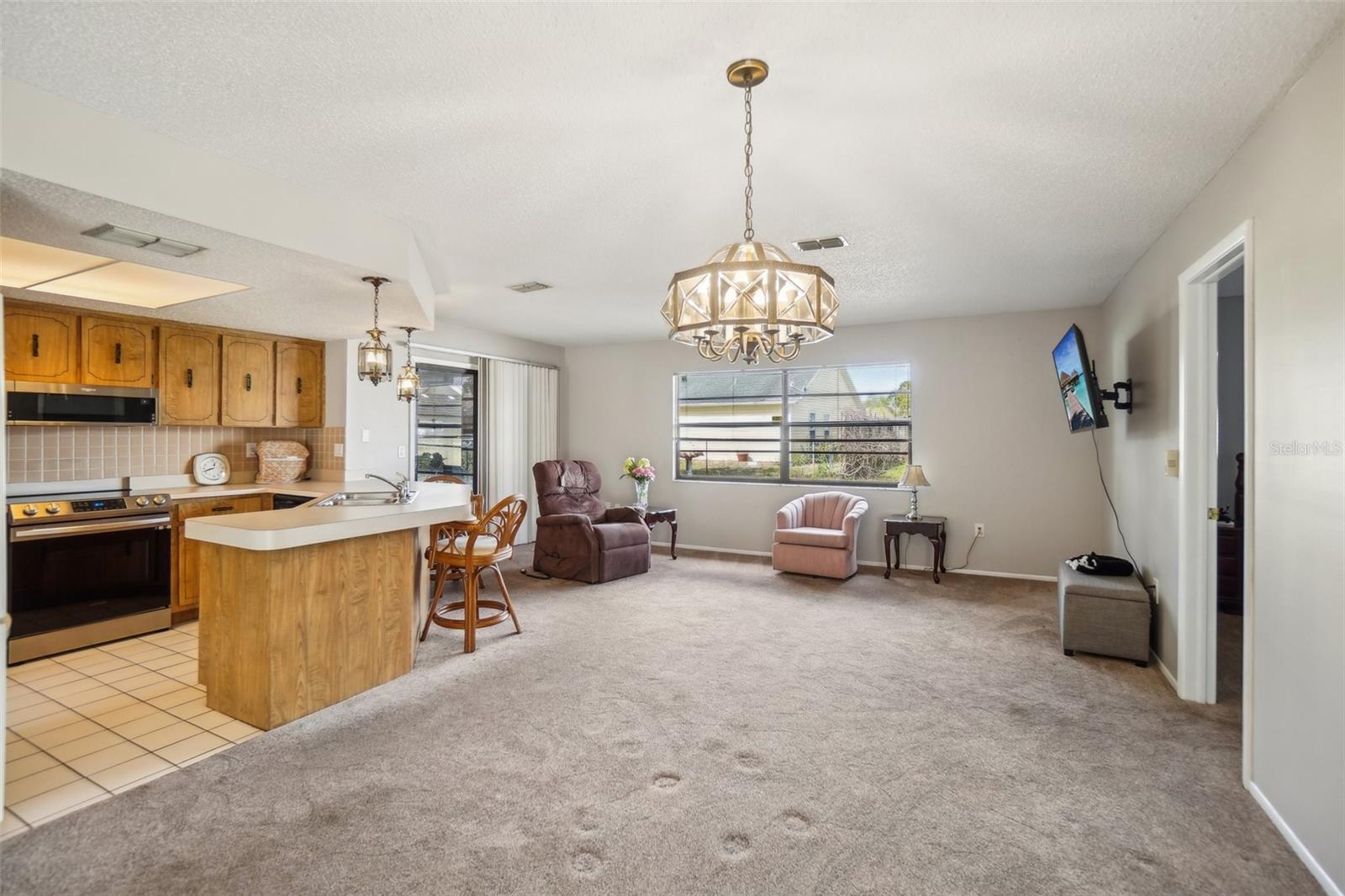 Large Price Decrease! Single Family 2 bedroom 2 bath well cared for home situated in a quiet neighborhood and great location. Open floor plan, Courtyard entrance leads in to the bright and large living, dining, and kitchen areas with views into both the front and back yards. The large owner's suite has a walk-in closet and ensuite bath, there is an equally spacious second bedroom with a large closet and full bath across the hallway. The enclosed Florida room leads out to a "fully fenced" back yard with room to expand the home or to add a pool. Important items to note: Roof only 6 years old, Carpet less than a year old with 20 yr., transferrable warranty, new range with air fryer, new microwave/hood vent, new 8x10 outside shed, Washer and Dryer included (washer is near new), water heater is less than a year old, sprinkler system was updated and serviced water for system is supplied by well, cabinets added to garage for storage. This is a great quiet neighborhood which the home did not receive any damage from either of the recent hurricanes. All floors will be cleaned by Stanley Steamer prior to listing for buyer's convenience. Property is a short drive to the Suncoast Parkway, shopping, restaurants, medical facilities and the Florida Beaches.