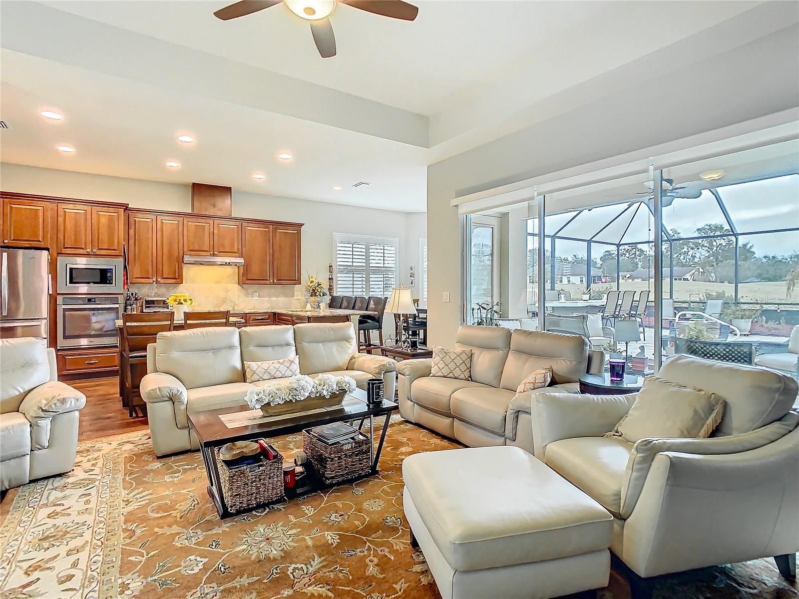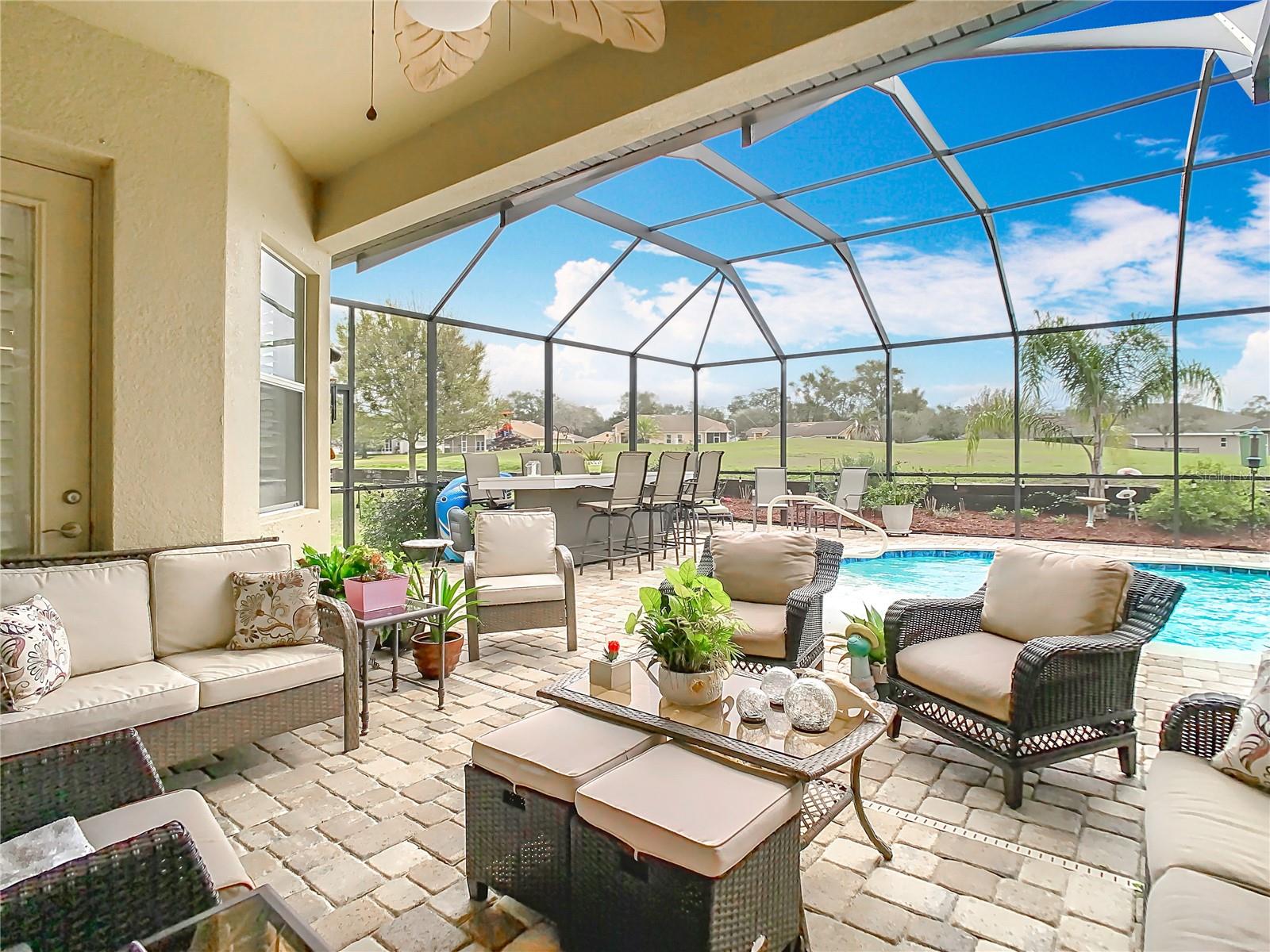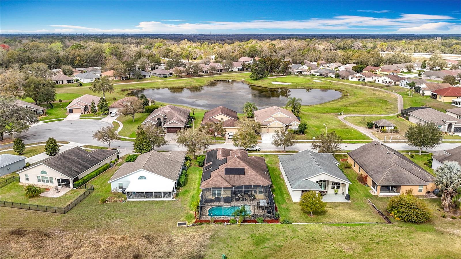 Huge price drop 9/13/25. Stop by in person to see this spectacular home.This is a 2016 Deeb built home and backs onto the 14th green of Meadow Oaks golf course. Home is 2,171 sq. ft., 3 bedroom, 2 bath, 2 car garage pool home. OPEN FLOOR PLAN with split bedrooms for that added privacy. UPGRADES are plentiful in this dream home. Since 2018 the SALT WATER POOL PACKAGE, WHOLE HOUSE WATER PURIFICATION SYSTEM, ADDITIONAL ZONES TO THE IRRIGATION SYSTEM, NEW FRIGIDAIRE A/C INSTALLED IN 2025, and a MINI-SPLIT A/C in the primary bedroom are a few of the upgrades added. Please refer to the enclosures with the listing for further information on other upgrades. The home has ENGINEERED HARDWOOD FLOORING in the foyer, living / dining room, kitchen, family room and primary bedroom. There are ceiling fans in all bedrooms, family room and lanai which were professionally installed. The kitchen has WHIRLPOOL STAINLESS STEEL APPLIANCES, recessed lighting, 42' wood cabinets, SOFT CLOSE DRAWERS and TILE BACKSPLASH. GRANITE COUNTERS and ISLAND give you ample space for meal preparation. There are also TRAY CELINGS in the foyer, dining room, family room, and primary bedroom. The windows are DOUBLE PANED and have CUSTOM MADE PLANTATION SHUTTERS throughout. There are also HURRICANE SHUTTERS for those unfortunate tropical storms which can be easily installed. The front entry area has beautiful DOUBLE LEADED GLASS DOORS with a CRESCENT WINDOW above it. Inside there are 2 STATELY COLUMNS. VOULUME CEILINGS, 8' DOORS, PLANT SHELVES, and DEEP BASEBOARDS which enhance the beauty of this home. The utility room has a sink and HIGH END LG WASHER / DRYER on PEDESTALS. The pool area is caged and screened, The entire area including the covered lanai have pavers for that rich quality look. This is truly a backyard Oasis for you, your family and friends to enjoy year round. The big item of this home are the SOLAR PANELS. They provide electricity to the entire home. NO MONTHLY ELECTRIC BILLS. The solar panels are totally assumable and have TAX CREDITS AVAILABLE YEARLY. This community has NO CDD FEES, is located in a NO FLOOD ZONE, and has reasonable property taxes and HOA fees. There is so much more that can be said about this stunning property. Review the pictures and captions. Once you have you'll be sure to want to see this one in person. DON'T DELAY, THIS HOME WON'T LAST.