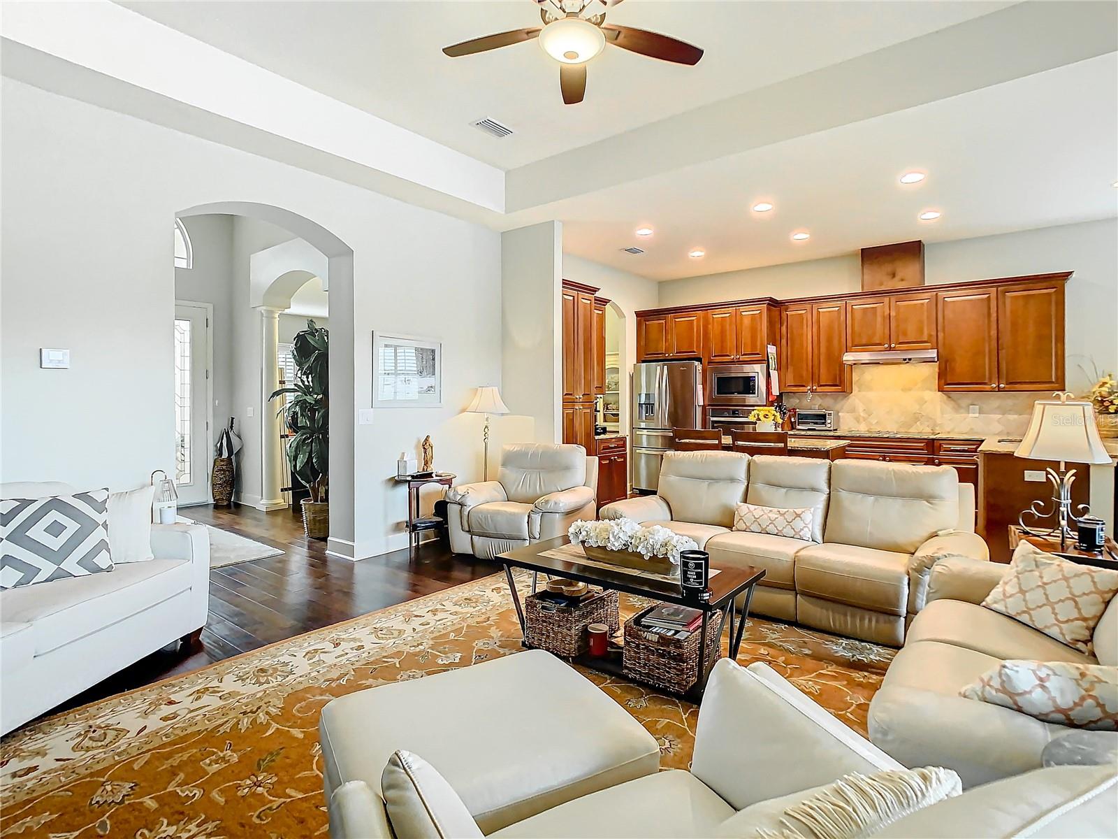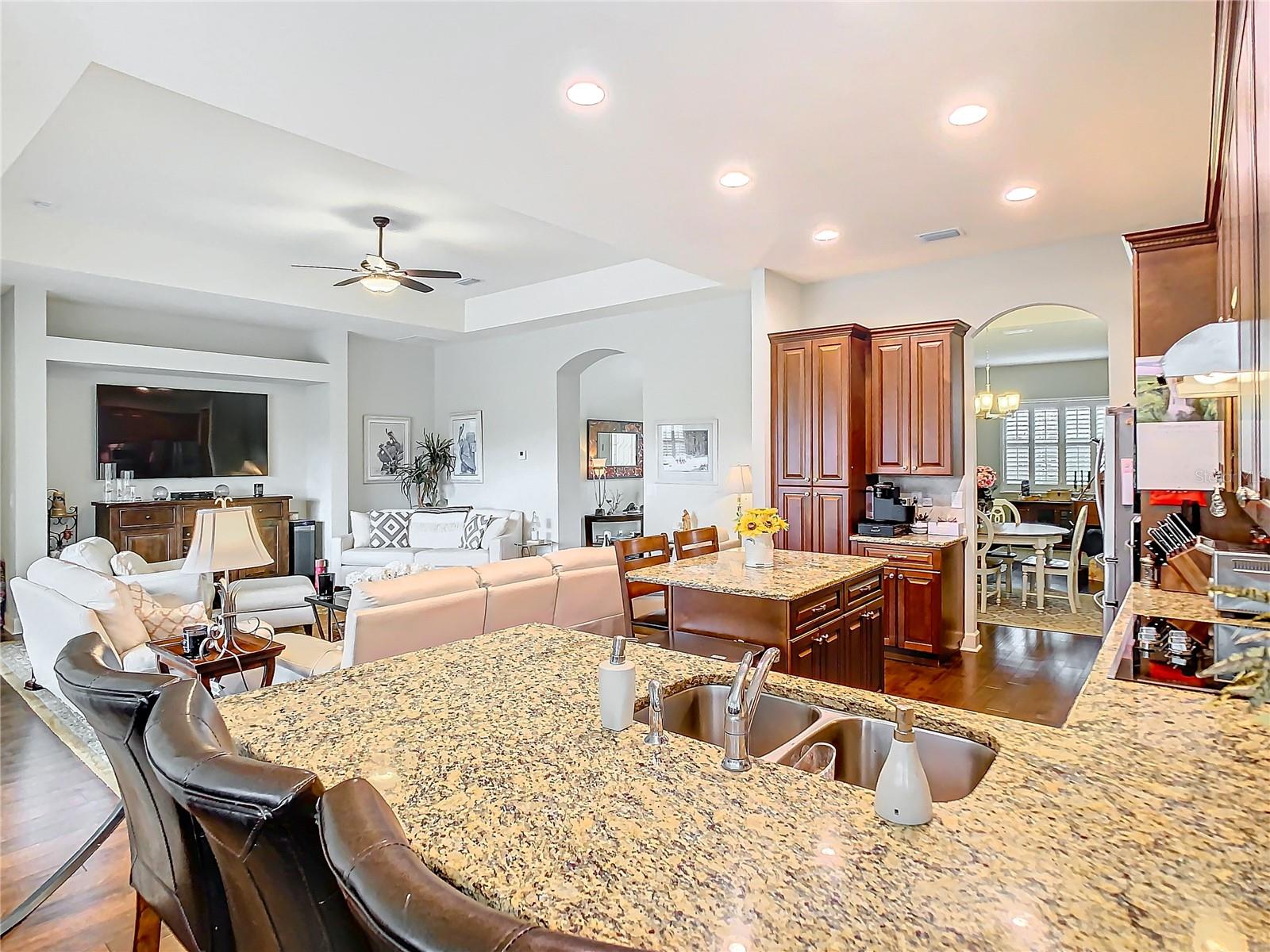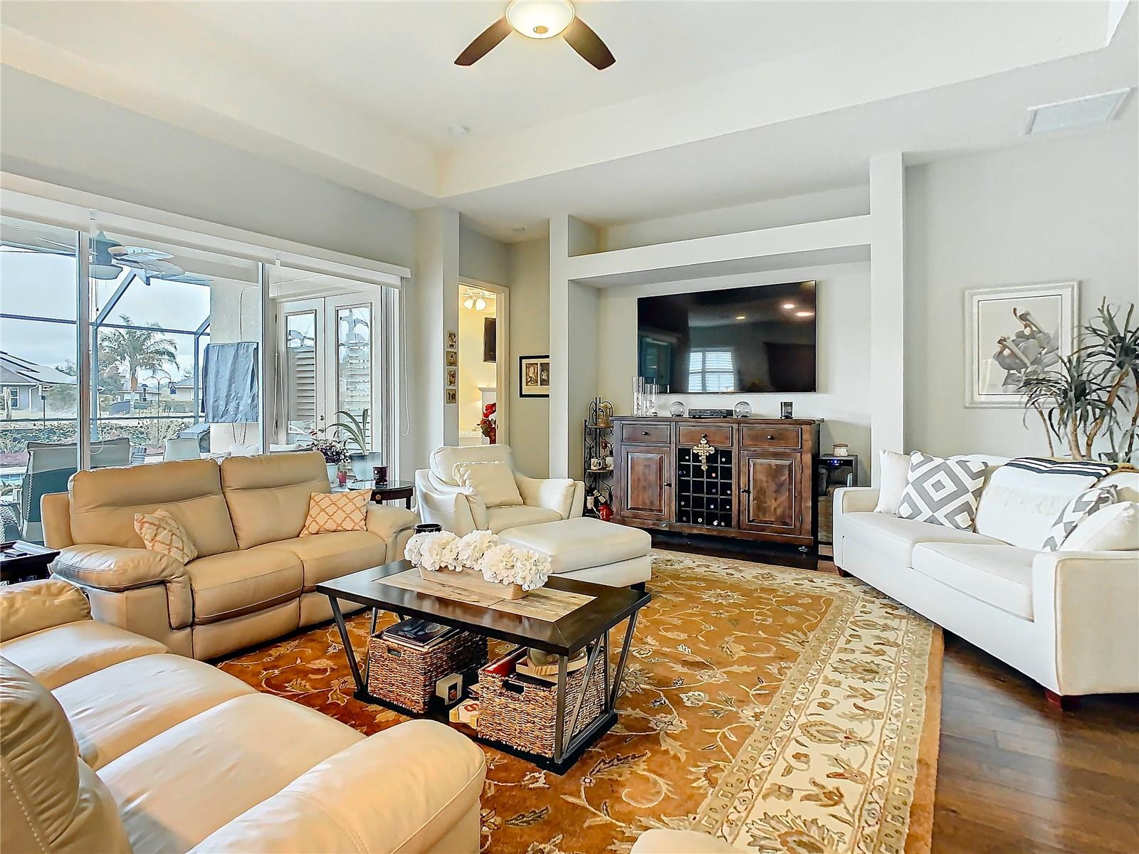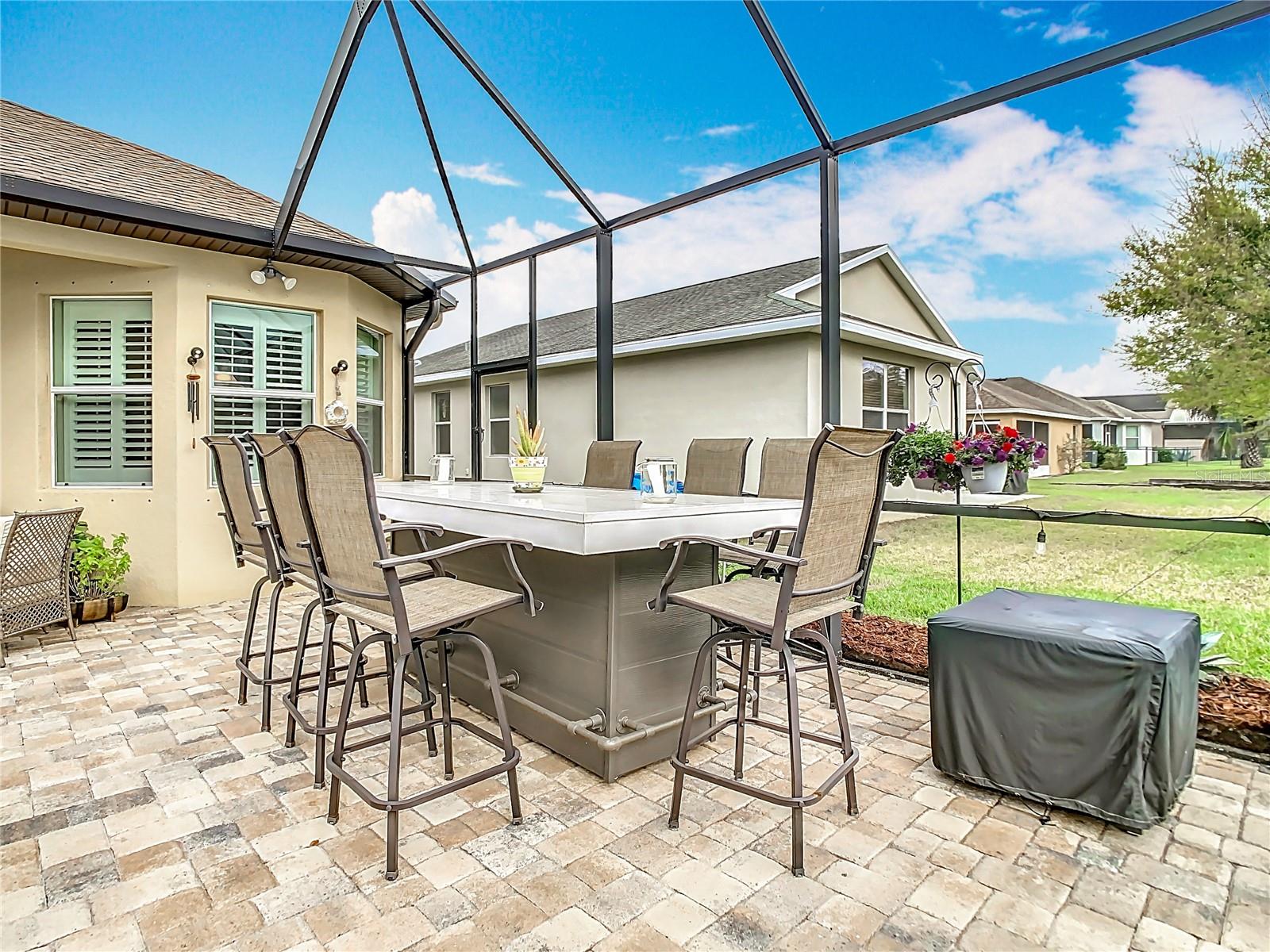 Huge price drop 9/13/25. Stop by in person to see this spectacular home.This is a 2016 Deeb built home and backs onto the 14th green of Meadow Oaks golf course. Home is 2,171 sq. ft., 3 bedroom, 2 bath, 2 car garage pool home. OPEN FLOOR PLAN with split bedrooms for that added privacy. UPGRADES are plentiful in this dream home. Since 2018 the SALT WATER POOL PACKAGE, WHOLE HOUSE WATER PURIFICATION SYSTEM, ADDITIONAL ZONES TO THE IRRIGATION SYSTEM, NEW FRIGIDAIRE A/C INSTALLED IN 2025, and a MINI-SPLIT A/C in the primary bedroom are a few of the upgrades added. Please refer to the enclosures with the listing for further information on other upgrades. The home has ENGINEERED HARDWOOD FLOORING in the foyer, living / dining room, kitchen, family room and primary bedroom. There are ceiling fans in all bedrooms, family room and lanai which were professionally installed. The kitchen has WHIRLPOOL STAINLESS STEEL APPLIANCES, recessed lighting, 42' wood cabinets, SOFT CLOSE DRAWERS and TILE BACKSPLASH. GRANITE COUNTERS and ISLAND give you ample space for meal preparation. There are also TRAY CELINGS in the foyer, dining room, family room, and primary bedroom. The windows are DOUBLE PANED and have CUSTOM MADE PLANTATION SHUTTERS throughout. There are also HURRICANE SHUTTERS for those unfortunate tropical storms which can be easily installed. The front entry area has beautiful DOUBLE LEADED GLASS DOORS with a CRESCENT WINDOW above it. Inside there are 2 STATELY COLUMNS. VOULUME CEILINGS, 8' DOORS, PLANT SHELVES, and DEEP BASEBOARDS which enhance the beauty of this home. The utility room has a sink and HIGH END LG WASHER / DRYER on PEDESTALS. The pool area is caged and screened, The entire area including the covered lanai have pavers for that rich quality look. This is truly a backyard Oasis for you, your family and friends to enjoy year round. The big item of this home are the SOLAR PANELS. They provide electricity to the entire home. NO MONTHLY ELECTRIC BILLS. The solar panels are totally assumable and have TAX CREDITS AVAILABLE YEARLY. This community has NO CDD FEES, is located in a NO FLOOD ZONE, and has reasonable property taxes and HOA fees. There is so much more that can be said about this stunning property. Review the pictures and captions. Once you have you'll be sure to want to see this one in person. DON'T DELAY, THIS HOME WON'T LAST.