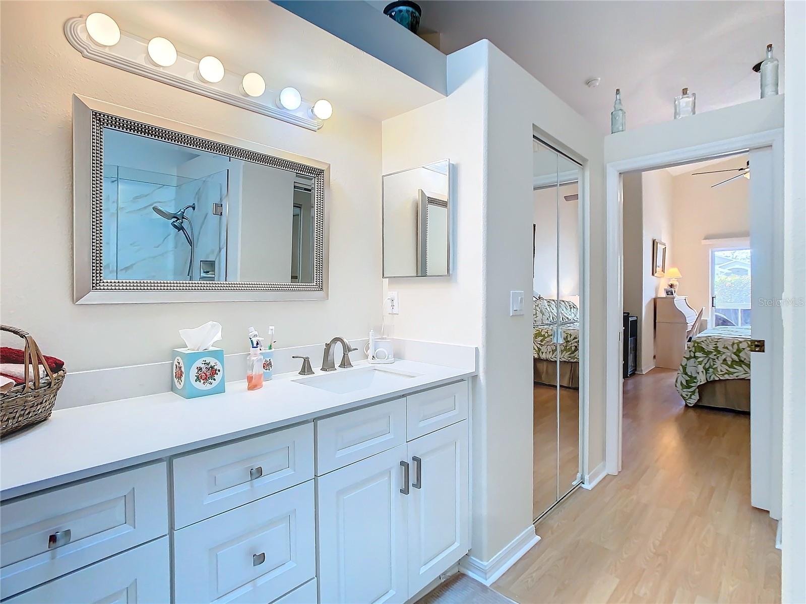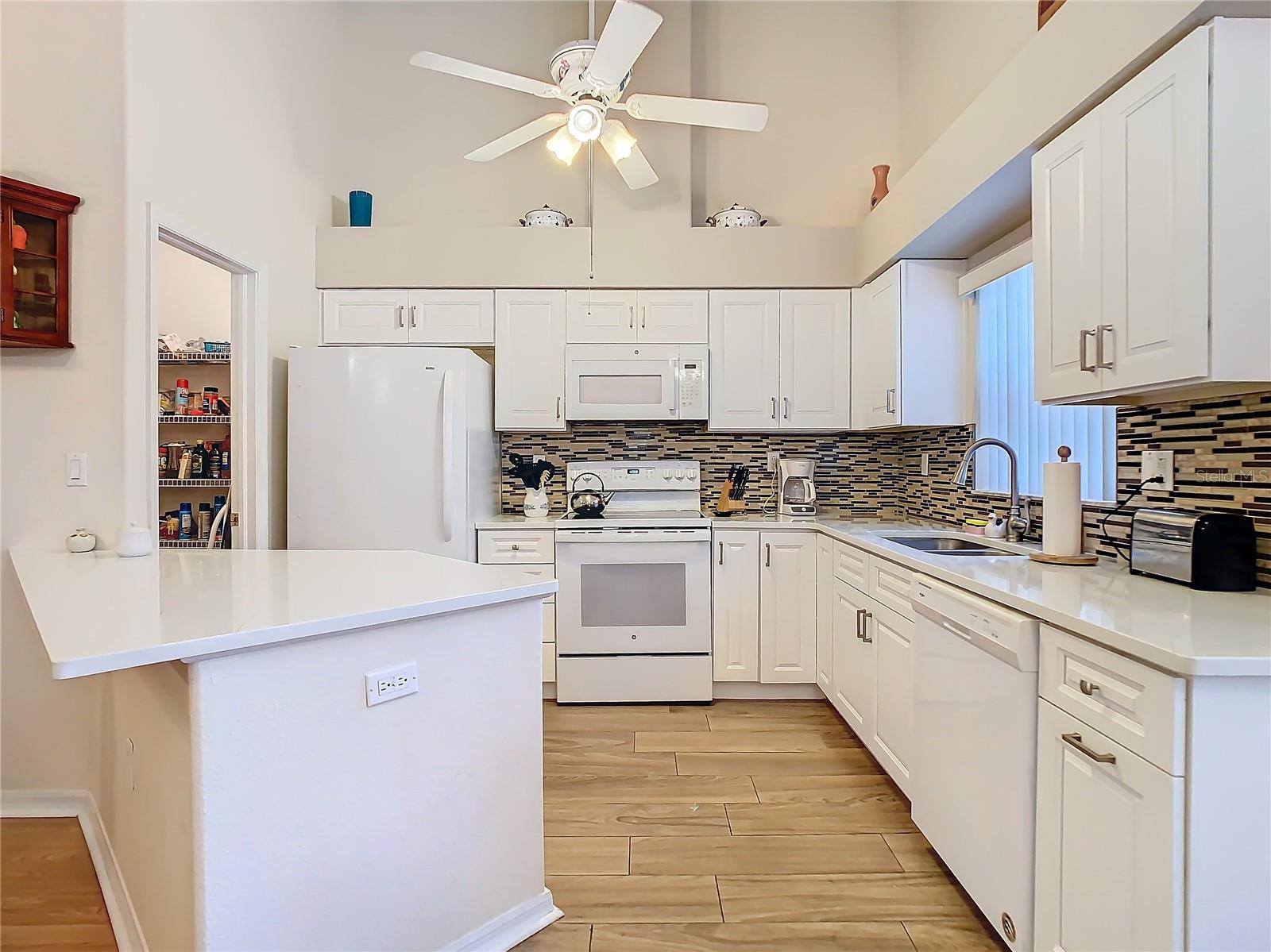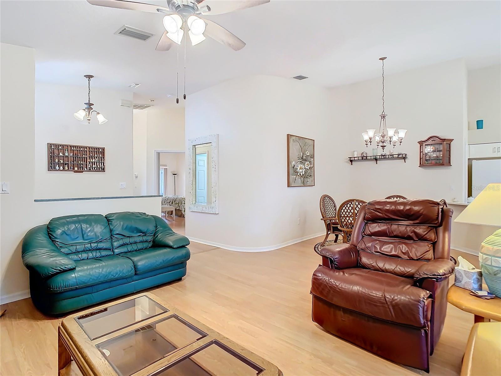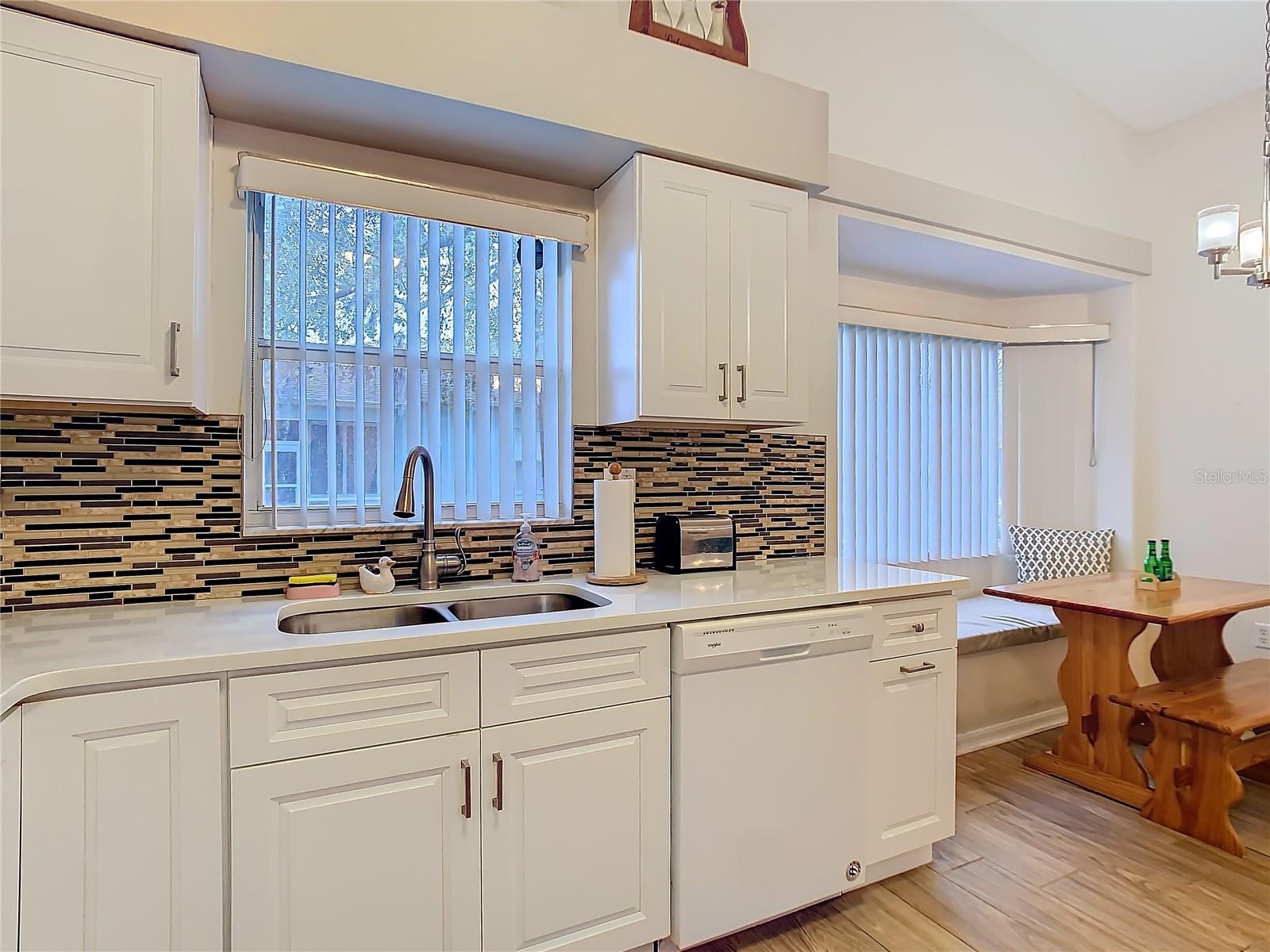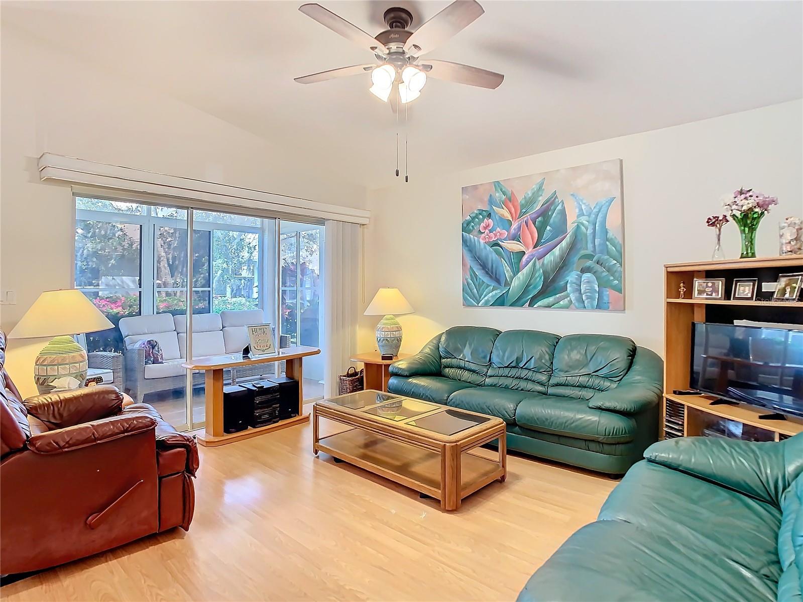 Recent 5K price reduction. Stop by now and get your name on a contract ASAP. Well maintained 1,304 sq. ft. 2 bedroom, 2 bath, 2 car garage attached villa. Located in the well established community of Meadow Oaks - Fairway Villas. This is not a 55+ community. NO CDD fees. Important dates on property. 2014: roof replaced with assistance of HOA roof reserve. 2019: New Trane HVAC system installed. 2021: Interior painting, new upgraded ceramic tile in kitchen, hallway, guest bathroom, and laundry area, . The guest bathroom and kitchen were also remodeled in 2021. This included the plumbing in the kitchen. Wood cabinets, back splash and solid surface counters (quartz & marble). 2022: new dishwasher. 2023: exterior of home was painted with HOA funds. 2024: the water heater and range were replaced. Rain control gutters and guards were installed. Finally the primary bathroom had a remodel in 2024 to include a high quality tile floor and seam-less shower enclosure. This is a very nice area and the sky light adds to its charm. Finally in 2025 new blinds have been installed in the primary bedroom. Some nice features of this villa are the front and rear patios and a sit in bay window located in the kitchenette area. HOA fees give you almost maintenance free living. Ground maintenance, Exterior maintenance (painting), roof repairs and a partial roof replacement reserve as well as a well reserve for your community irrigation. This makes your life a lot easier. THAT NOT ALL! Your fees also cover internet and cable, trash and recycling collection, and street lights. Again THATS NOT ALL! the community clubhouse offers you an exercise, card and billiard rooms as well as a library. There is a large meeting area with a dance floor and small stage. Outside activities include tennis, pickleball, basketball, and shuffle board courts as well as bocce ball. Finally there is a large inground heated pool with a cabana bathrooms. Do you like golf? The public 18 hole golf course Meadow Oaks and Country Club meanders through the community. This truly is a nice place to relax and enjoy your time. Close to all shopping, medical facilities, government offices and local beaches. Easy ride to the Clearwater beaches or to the Tampa / St. Petersburg attractions. This is a great home in a great community. Please, come see for yourself. You'll be glad you did.
