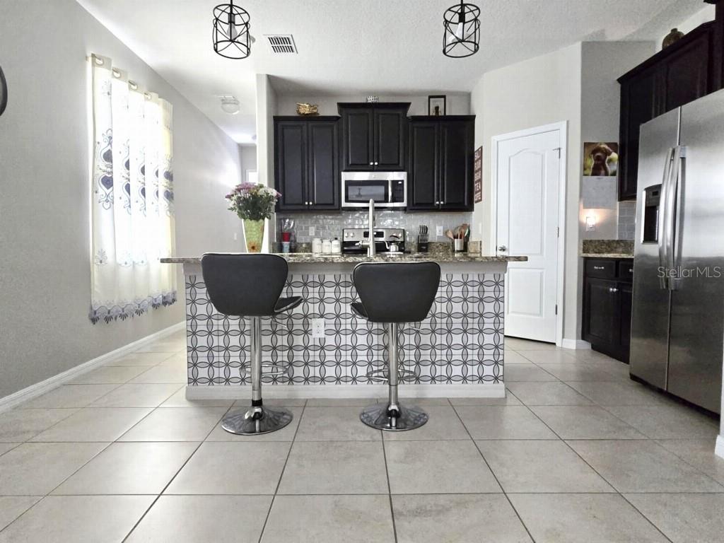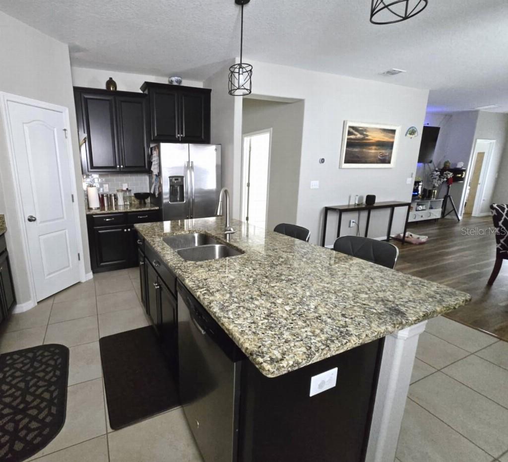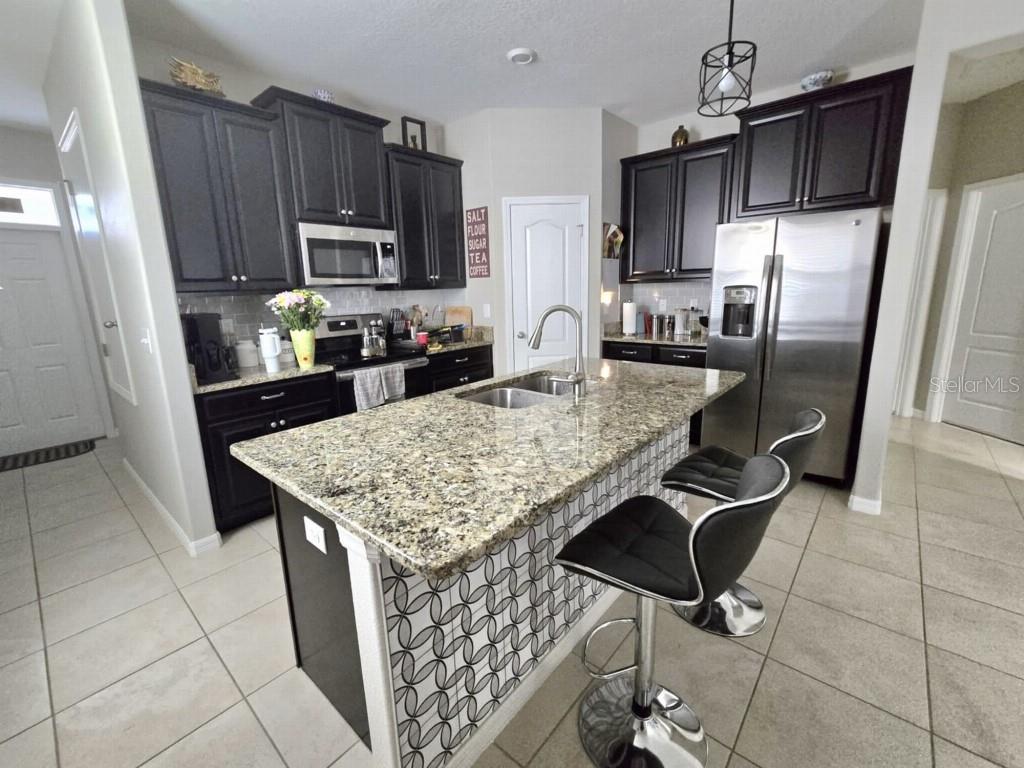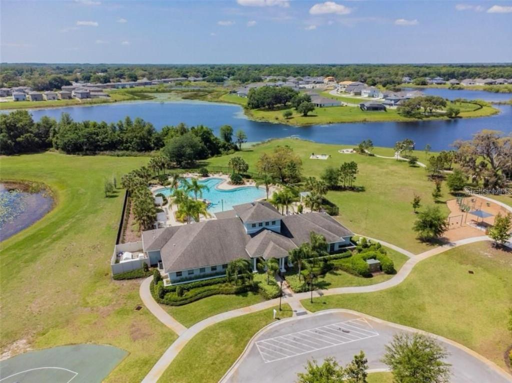 Highly desired Lakeside Community. Several financing options, including owner financing as low as 4.99%APR with terms and approved credit. Welcome to your 3 bedroom, 2 bath 2 car garage home, featuring an open floor plan, high ceilings provide an open, spacious feel. Tile and lifetime wood look flooring. Kitchen features espresso cabinets, 42” uppers, a large island all with granite countertops, and stainless steel appliances, beautiful glass back splash tile. TV wall feature with a 60” electric fireplace. The primary bedroom is spacious with an oversized walk-in closet and ensuite bathroom featuring a dual vanity and tiled shower with a sleek modern glass door. Two additional bedrooms provide ample space. Entire home freshly painted inside and out. Laundry room with storage shelves. The screened lanai is perfect for your morning coffee or entertaining guests in the fenced yard. 2 car garage has built-in overhead storage, epoxy paint floor and EV charging outlet. The community amenities offer something for everyone with modern conveniences such as a clubhouse, swimming pool, tennis courts, fitness center, dog parks, playground, BBQ areas, a dock at the lake. Make your appointment today!