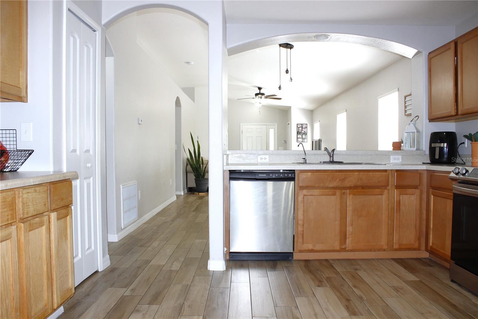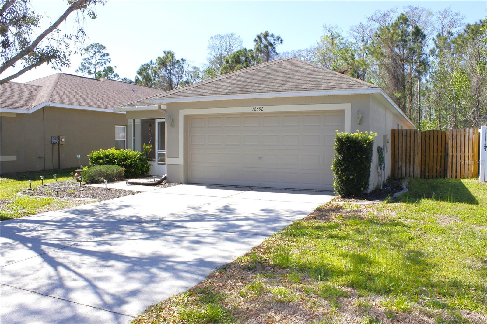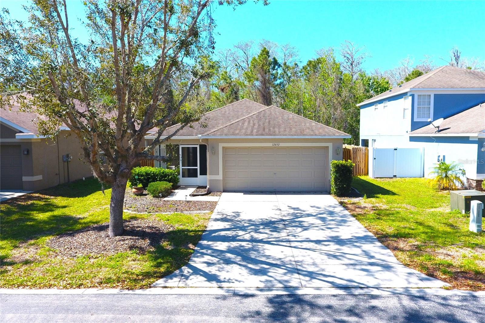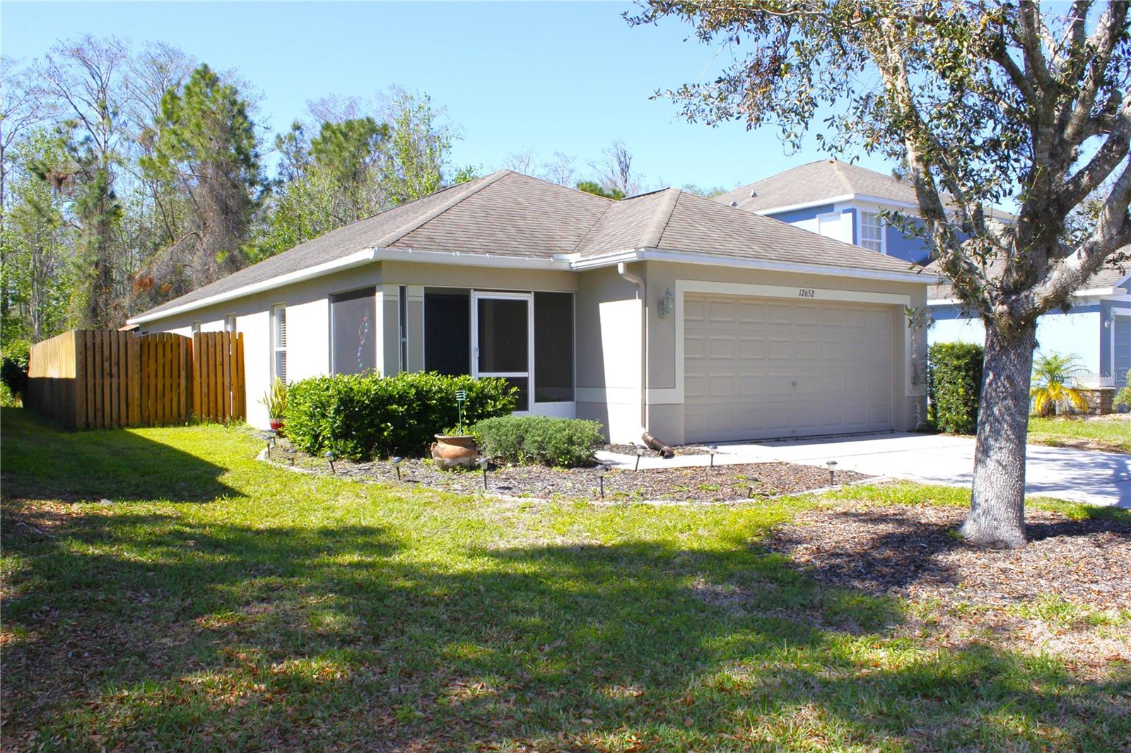 Welcome to this charming home 3 bedroom 2 bath a two-car garage!! This home is perfect for growing families has everything you need, This lovingly well maintained home offers 1360 SqFt of living space. Upon entry you are welcomed by a formal living or dining room nicely laid out kitchen with all new appliances, has great natural light and ceramic tile floors whole house. This home is completely move-in ready. If you love Florida natural this covered and screened patio will make your life even better. The backyard offers areas perfect for pets, gardening, grilling, or entertaining, This special home overlooks a peaceful conservation Nestled in a quiet, secluded neighborhood is conveniently located Near shopping, restaurants ,medical facilities and more. Come see it today and fall in love ! Located in the highly coveted gated community of The Verandahs, this community features a Pool, Fitness Center, Clubhouse, and Playground. Enjoy a low HOA of only $55/month . This home provides quick access to SR-52 and the Suncoast Parkway, connecting you to all of Pasco County and beyond. Tampa International Airport is just 30 to 40 minutes away. NO FLOOD INSURANCE REQUIRED and CLOSE TO TAMPA.