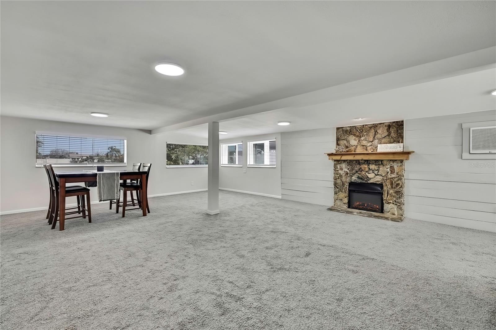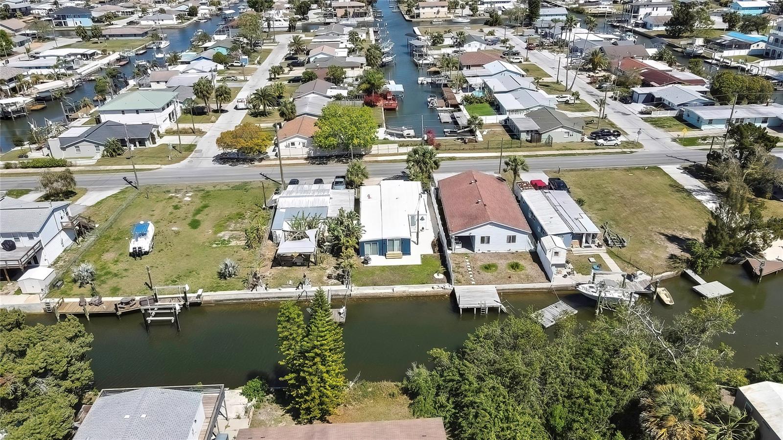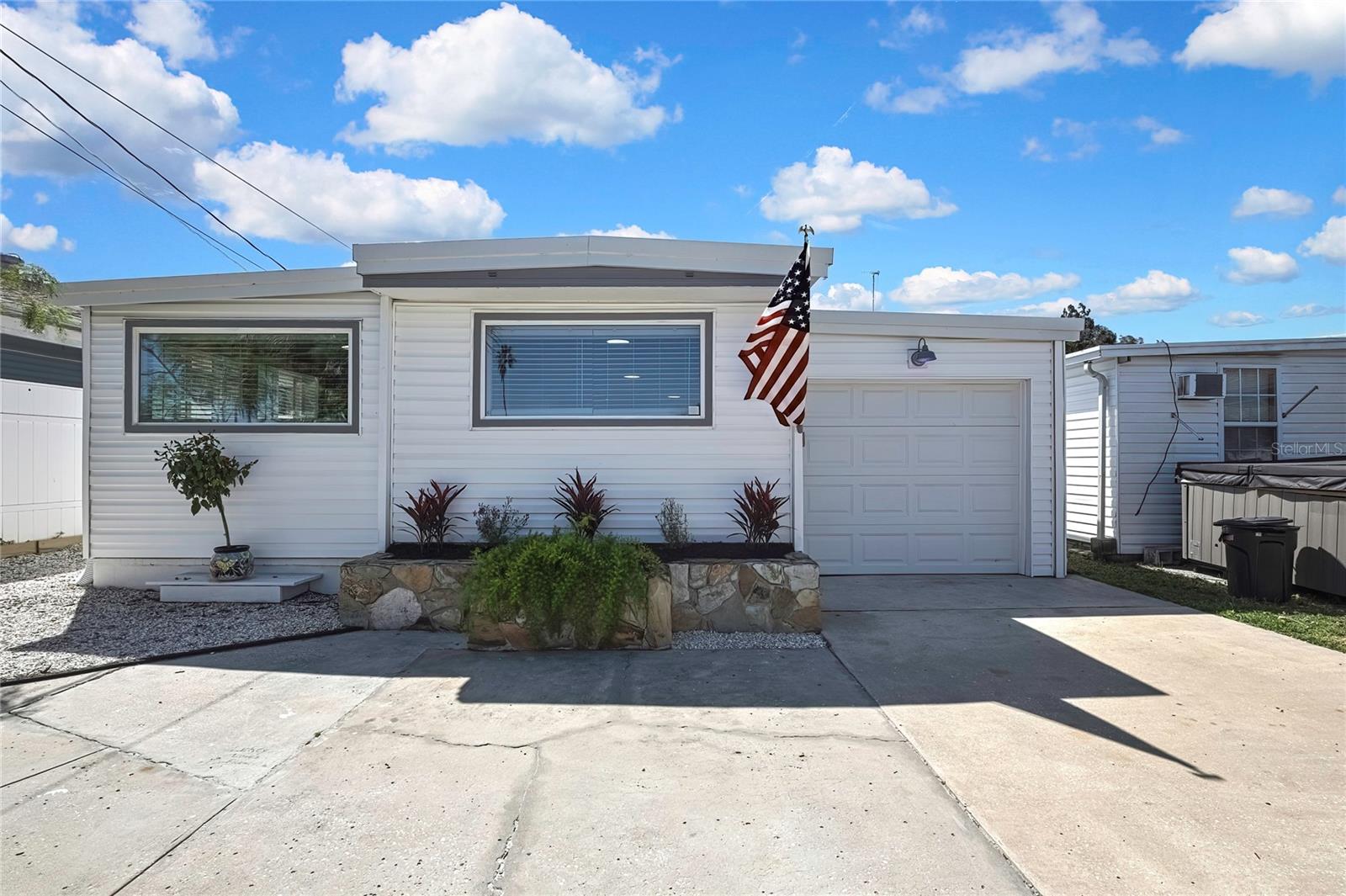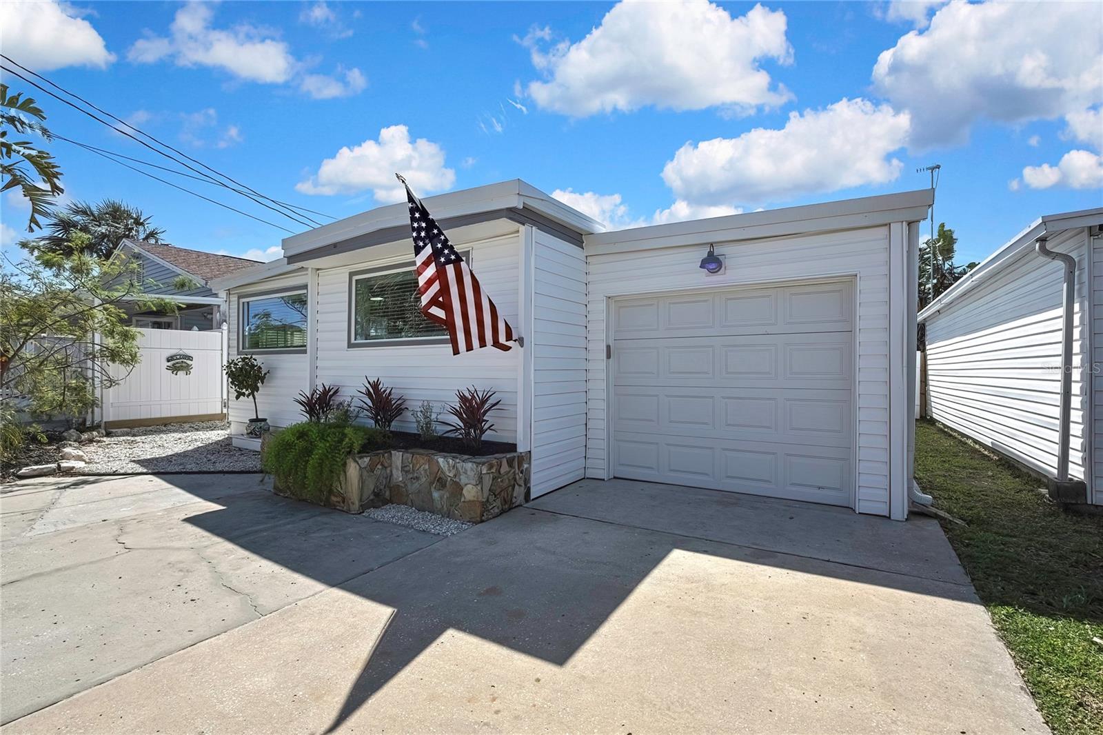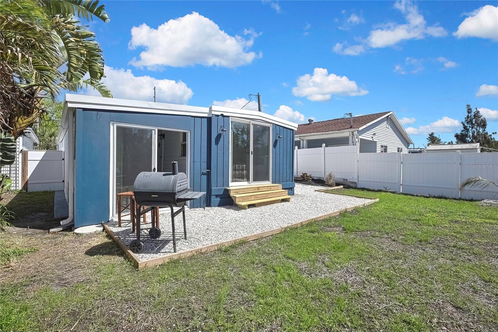 Welcome to this newly renovated 2-bed / 1-bath canal front Sea Ranch, located just a few short minutes to the Gulf of America. This property is perfect for living a low-maintenance lifestyle and shows exceptional attention to detail. The private lot has mature landscape and a shell walkway that leads to the custom tile entryway. The open floor concept with tons of natural light connects both the interior and exterior spaces, which allows multiple water views. The updates are done in modern colors and recessed lighting throughout. The tiled kitchen backsplash, new waterproof vinyl flooring, combined with ergo-friendly butcher block counters and wood cabinets, creates an ocean vibe. The home even has a built-in electric fireplace for those chilly mornings. The master bedroom overlooks the canal and has separate sliding doors. The new bathroom was designed to house a stackable washer/dryer unit. The additional 600 sq ft finished flex space with sliding door leads to the backyard oasis and the 40-foot seawall. The outdoor space is perfect for entertaining. New roof and gutters installed in 2022, with a 12-year warranty that can be transferred to the new owners for $500. Come and live your waterfront lifestyle dream in this golf cart community!