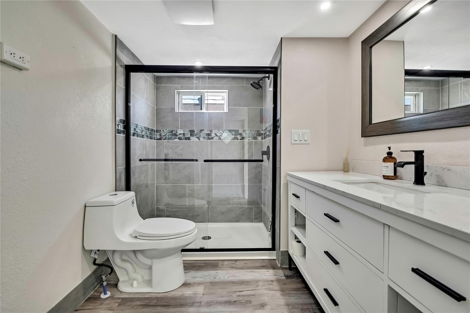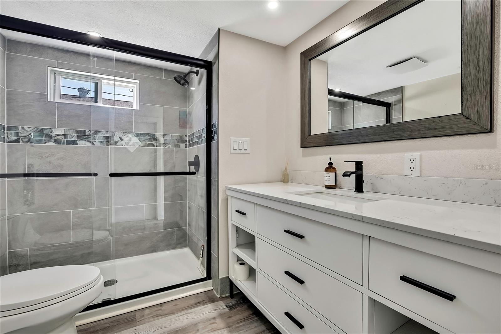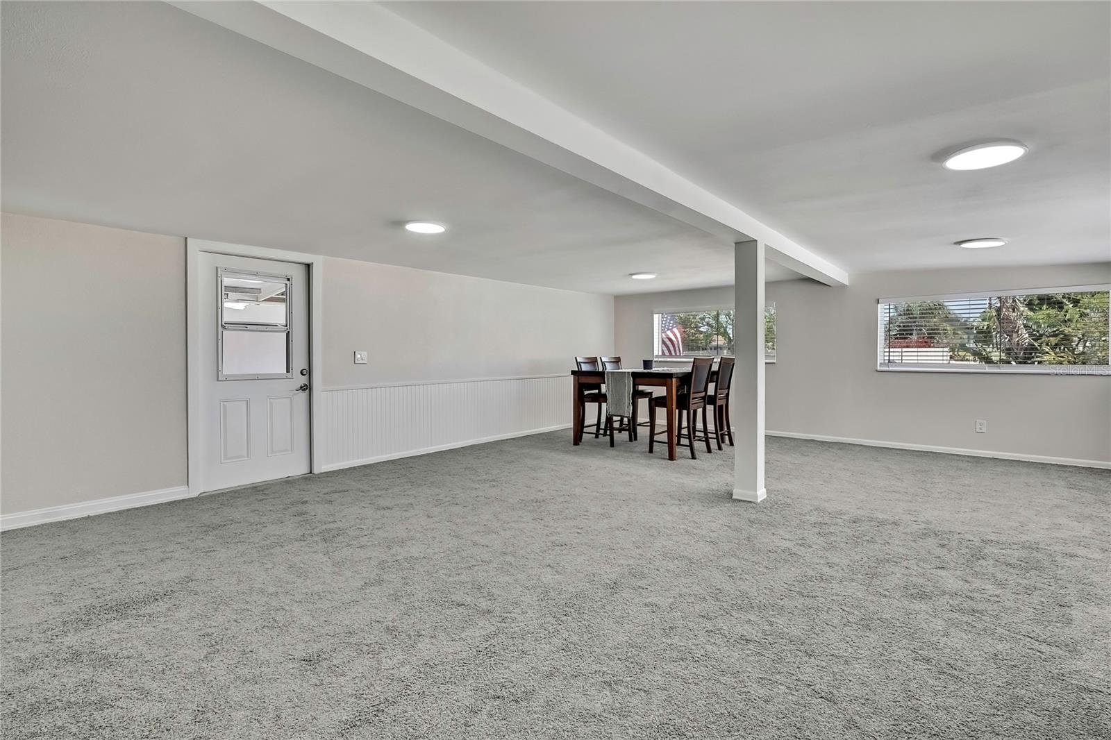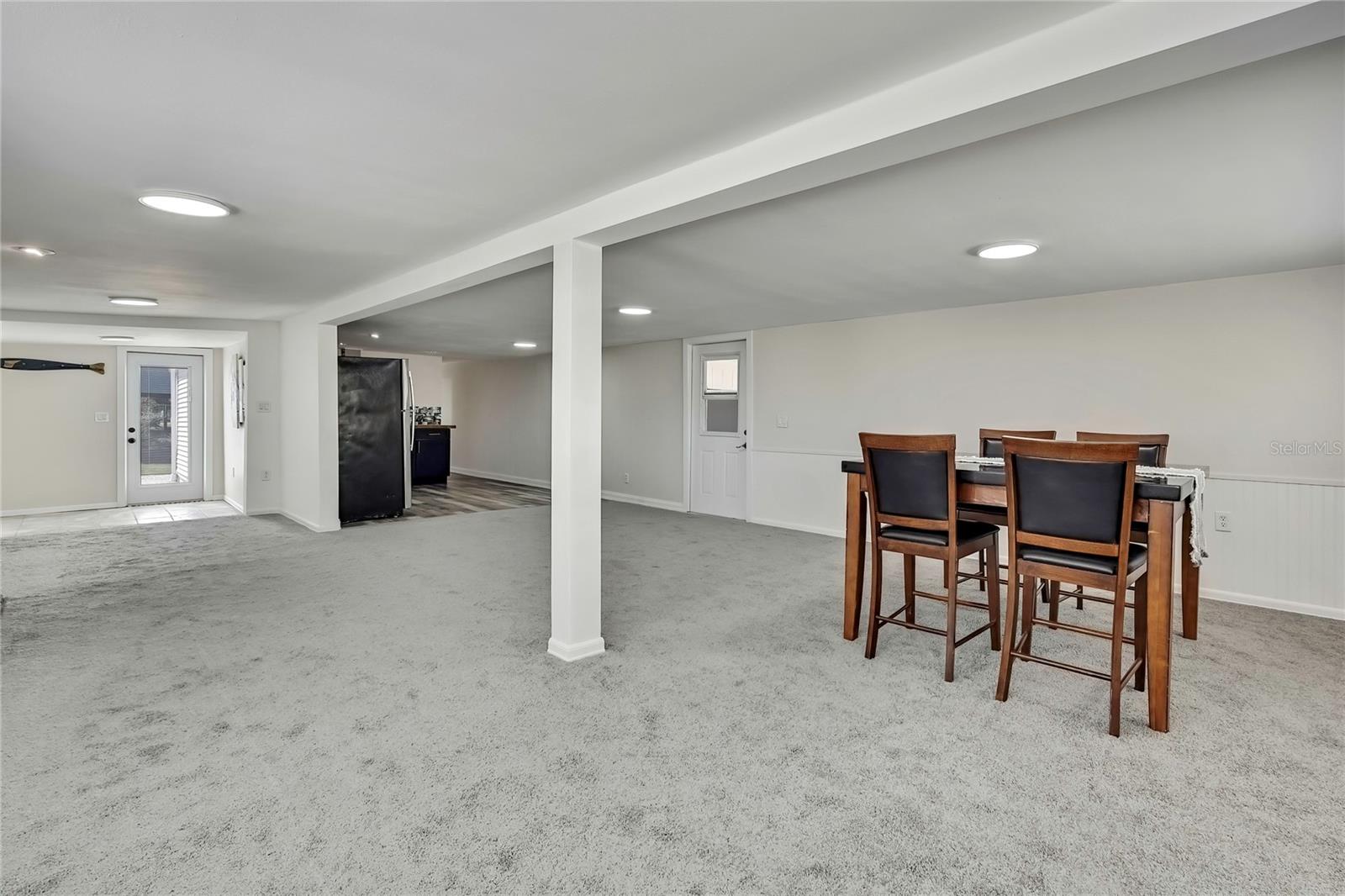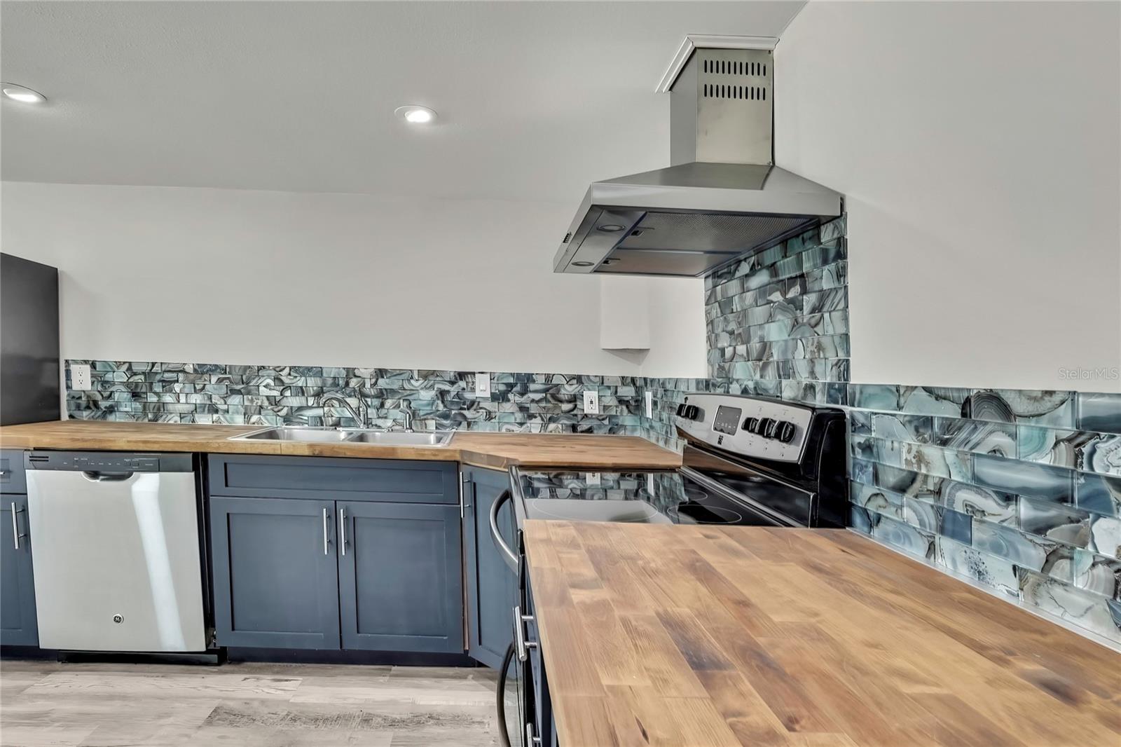 Welcome to this newly renovated 2-bed / 1-bath canal front Sea Ranch, located just a few short minutes to the Gulf of America. This property is perfect for living a low-maintenance lifestyle and shows exceptional attention to detail. The private lot has mature landscape and a shell walkway that leads to the custom tile entryway. The open floor concept with tons of natural light connects both the interior and exterior spaces, which allows multiple water views. The updates are done in modern colors and recessed lighting throughout. The tiled kitchen backsplash, new waterproof vinyl flooring, combined with ergo-friendly butcher block counters and wood cabinets, creates an ocean vibe. The home even has a built-in electric fireplace for those chilly mornings. The master bedroom overlooks the canal and has separate sliding doors. The new bathroom was designed to house a stackable washer/dryer unit. The additional 600 sq ft finished flex space with sliding door leads to the backyard oasis and the 40-foot seawall. The outdoor space is perfect for entertaining. New roof and gutters installed in 2022, with a 12-year warranty that can be transferred to the new owners for $500. Come and live your waterfront lifestyle dream in this golf cart community!