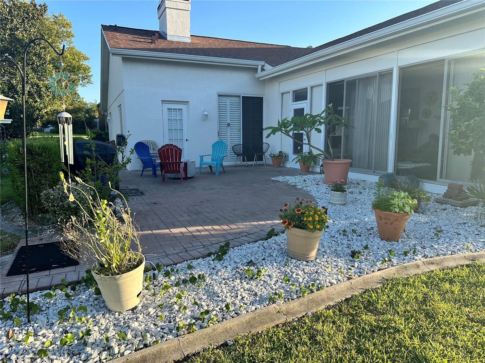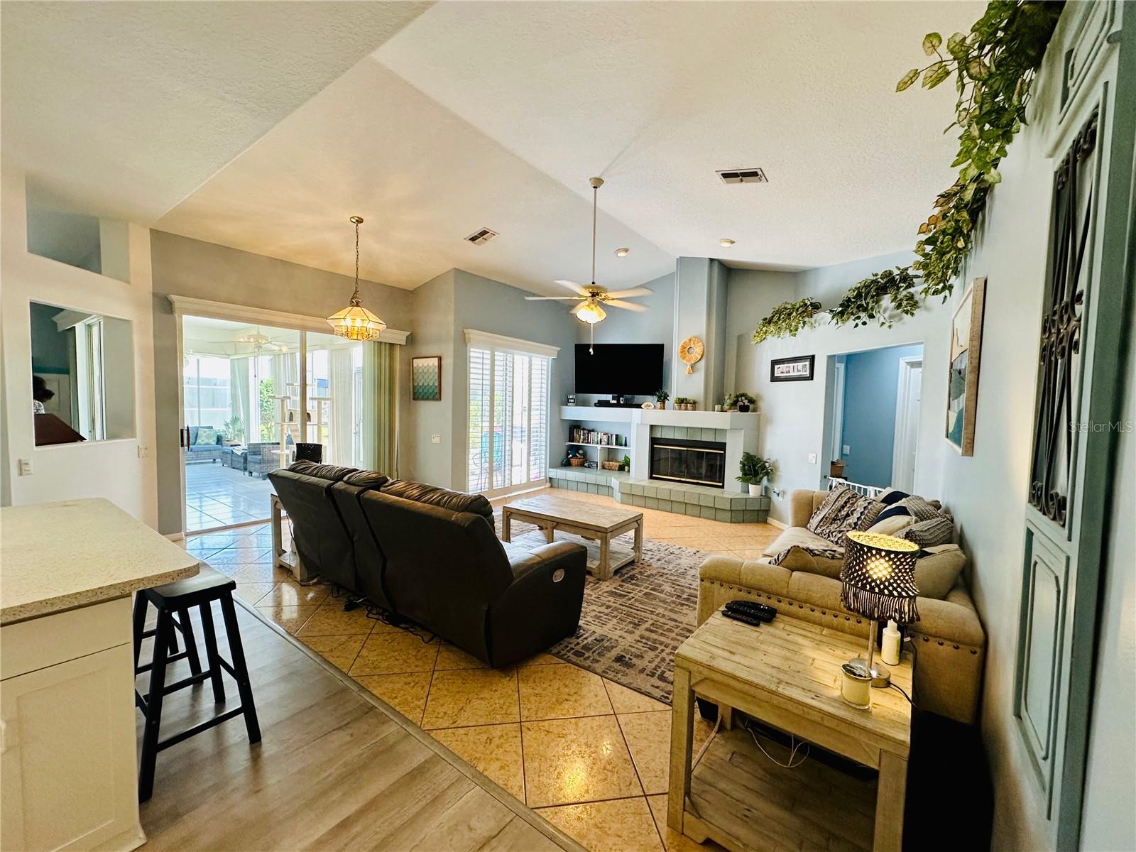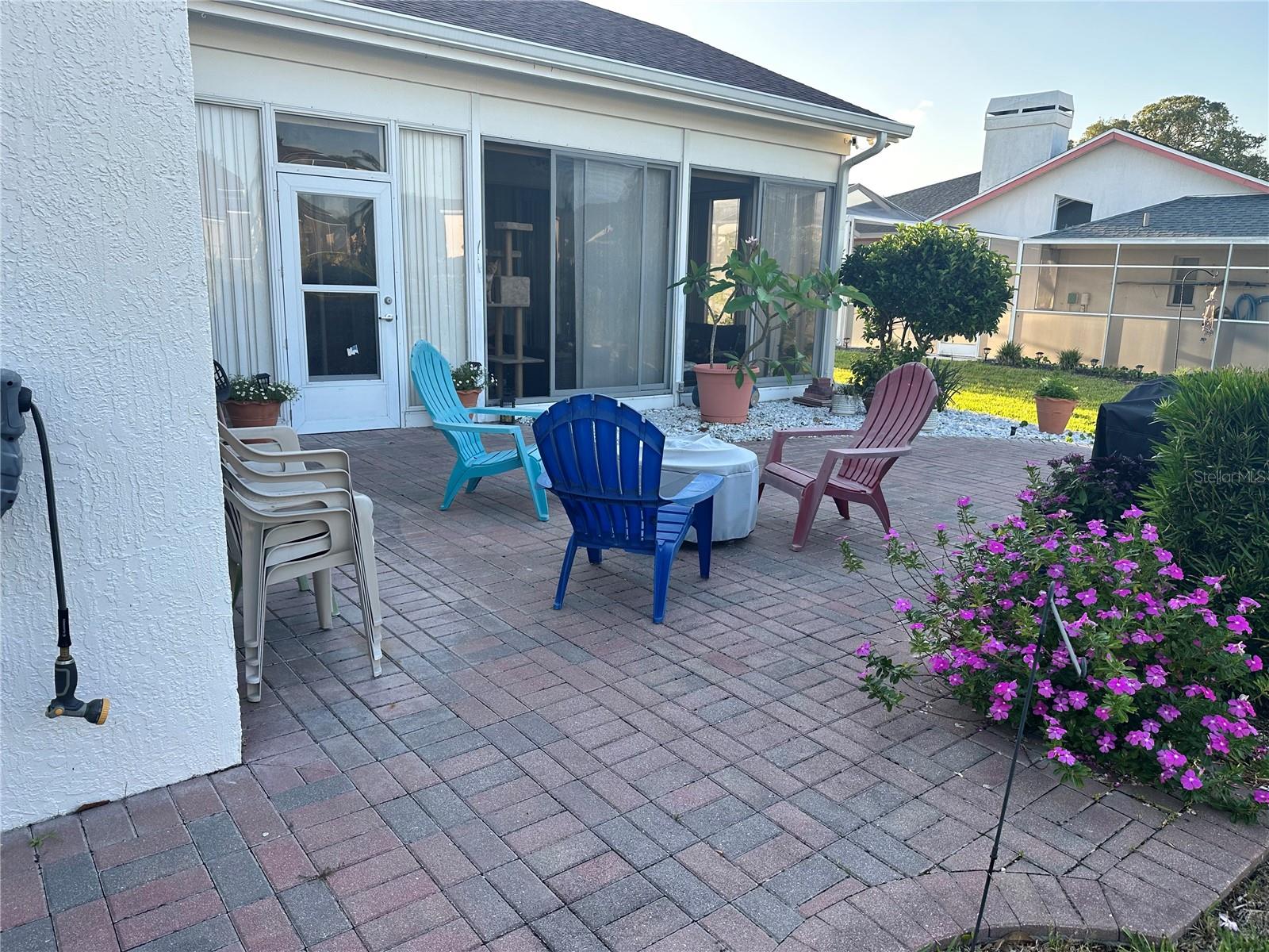 Seller contribution of up to $10,000 for buyer's Buydown or closing costs with accepted contract! Welcome HOME! NEW ROOF, NEW DRIVEWAY. A/C 2022. LOW HOA COVERS CABLE, INTERNET, LAWN CARE, AND TRASH! POOL AND GYM AT CLUBHOUSE! Picture yourself living in this delightful 4-bedroom home, where thoughtful design meets everyday convenience under the warm Florida sun. Host memorable gatherings in the formal dining room, then retreat to the comfortable family room, featuring a wood-burning fireplace, which has been recently cleaned and inspected for worry-free enjoyment on cooler evenings. Or simply relax in the bright and open living area. Effortless indoor-outdoor living is yours with sliding glass doors leading from the master bedroom, living room, and two spots in the family room to your outdoor spaces, perfect for enjoying the Florida breezes. Step out onto the large back brick patio, accessible from the sunroom, the second bathroom, and the family room, ideal for outdoor entertaining and relaxation. Practicality is key with dedicated outdoor access from the second bathroom and second bedroom, ideal for sandy feet after a day at the beach. Your master suite is a true sanctuary, featuring soaring ceilings, dual walk-in closets, and a spa-like ensuite with a spacious tile shower, separate soaking tub, dual vanities, and a private water closet. The sunroom, enclosed for year-round enjoyment, offers a seamless transition to the outdoors via the brick patio – imagine sipping your morning coffee there! Recent significant investments include a NEW ROOF and a striking 3-car stone driveway (both 2024), ensuring peace of mind, along with a 2022 AC system featuring UV filtration for healthy, cool air during those warm Florida months. The stylish kitchen features new (2024) Samsung BESPOKE appliances, including a striking blue refrigerator that beautifully complements the kitchen's aesthetic. This BESPOKE refrigerator also offers a convenient beverage center and icemaker, and can be easily changed to the colors of your choice, allowing you to personalize your kitchen's look. Upgraded wood window shutters add a touch of elegance throughout the home. Enjoy a fantastic Florida lifestyle with a low monthly HOA that includes internet, cable, lawn care, and trash service, plus access to a community clubhouse with a gym, tennis, shuffleboard, and a sparkling pool – perfect for those sunny afternoons. Plus, save on your water bill with your own well and sprinkler system, keeping your lawn lush and green. For those who work from home or desire extra privacy, the 4th bedroom offers a secure setup with its own dedicated walk-through door from the garage. Adding to the home's appeal and efficiency, the front and side windows have been updated (less than 5 years old), offering a modern look, improved energy efficiency, and enhanced noise reduction in these areas.