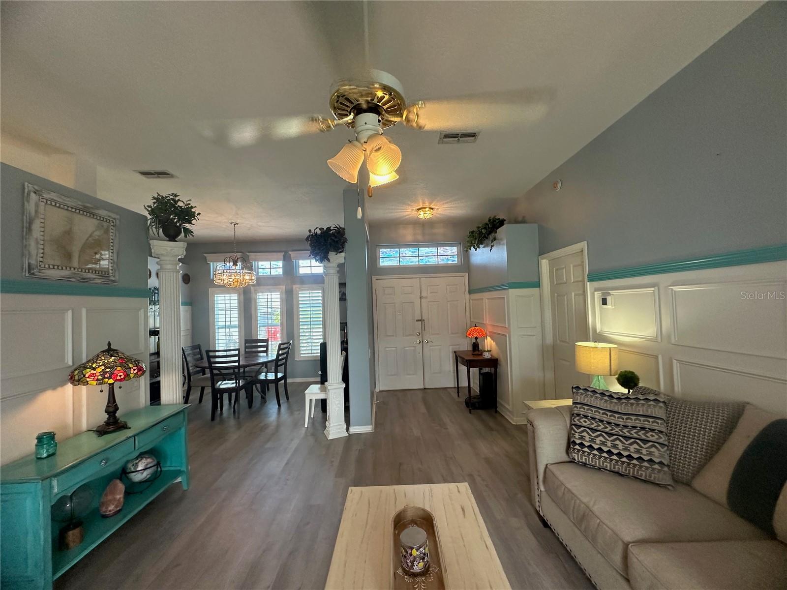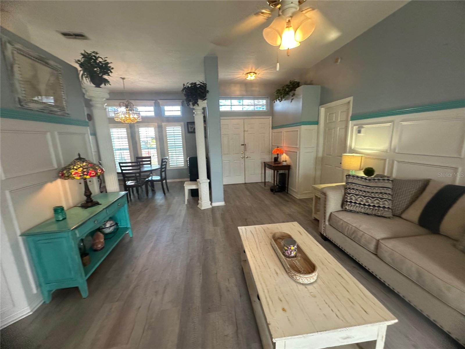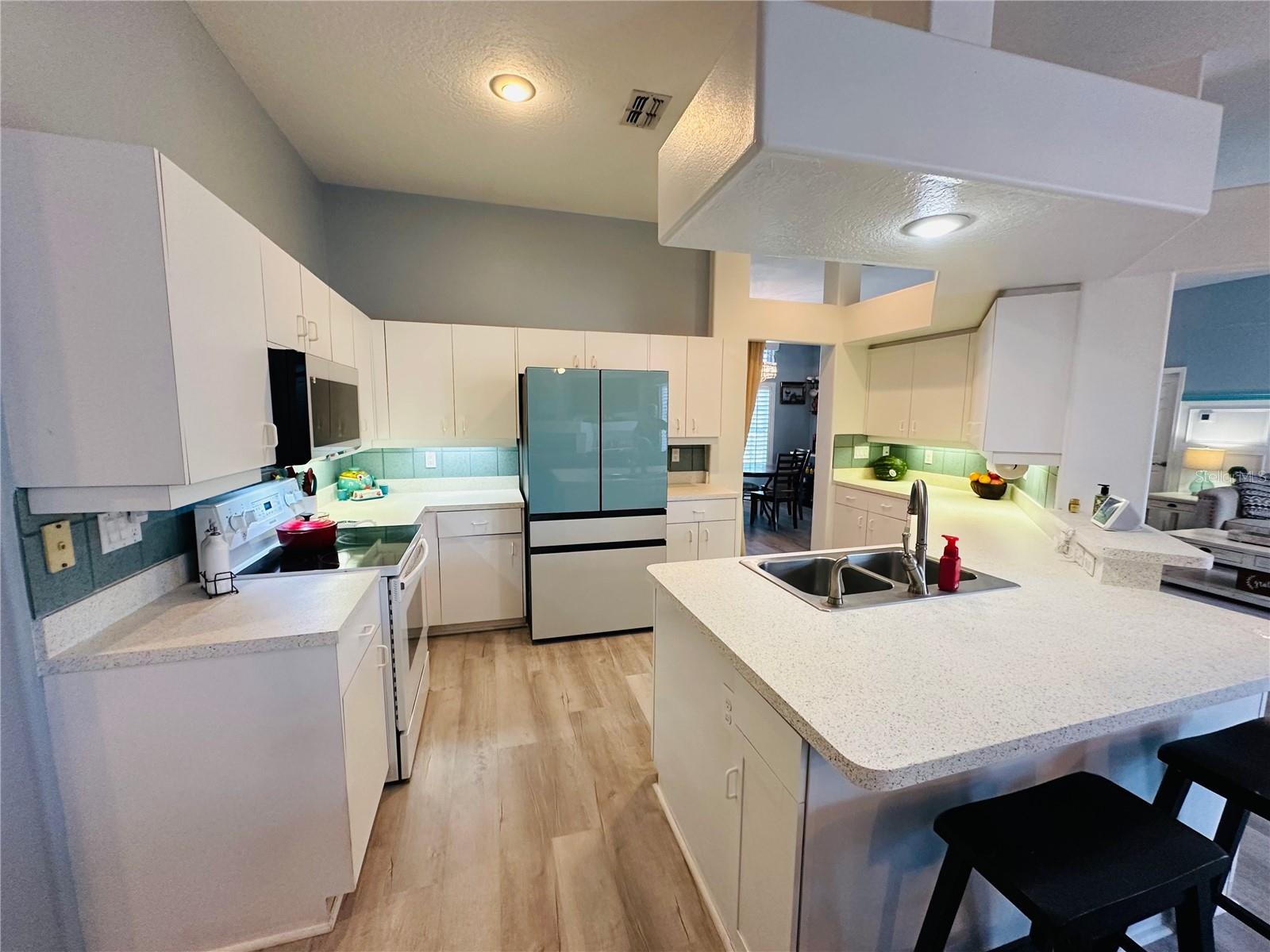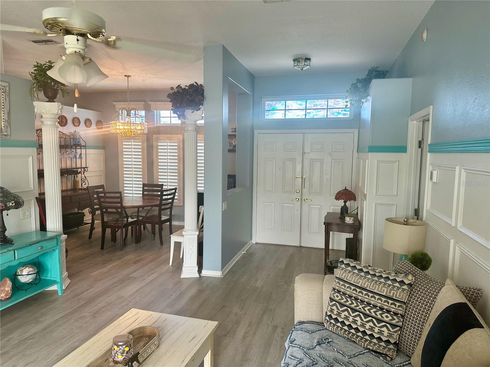 Seller contribution of up to $10,000 for buyer's Buydown or closing costs with accepted contract! Welcome HOME! NEW ROOF, NEW DRIVEWAY. A/C 2022. LOW HOA COVERS CABLE, INTERNET, LAWN CARE, AND TRASH! POOL AND GYM AT CLUBHOUSE! Picture yourself living in this delightful 4-bedroom home, where thoughtful design meets everyday convenience under the warm Florida sun. Host memorable gatherings in the formal dining room, then retreat to the comfortable family room, featuring a wood-burning fireplace, which has been recently cleaned and inspected for worry-free enjoyment on cooler evenings. Or simply relax in the bright and open living area. Effortless indoor-outdoor living is yours with sliding glass doors leading from the master bedroom, living room, and two spots in the family room to your outdoor spaces, perfect for enjoying the Florida breezes. Step out onto the large back brick patio, accessible from the sunroom, the second bathroom, and the family room, ideal for outdoor entertaining and relaxation. Practicality is key with dedicated outdoor access from the second bathroom and second bedroom, ideal for sandy feet after a day at the beach. Your master suite is a true sanctuary, featuring soaring ceilings, dual walk-in closets, and a spa-like ensuite with a spacious tile shower, separate soaking tub, dual vanities, and a private water closet. The sunroom, enclosed for year-round enjoyment, offers a seamless transition to the outdoors via the brick patio – imagine sipping your morning coffee there! Recent significant investments include a NEW ROOF and a striking 3-car stone driveway (both 2024), ensuring peace of mind, along with a 2022 AC system featuring UV filtration for healthy, cool air during those warm Florida months. The stylish kitchen features new (2024) Samsung BESPOKE appliances, including a striking blue refrigerator that beautifully complements the kitchen's aesthetic. This BESPOKE refrigerator also offers a convenient beverage center and icemaker, and can be easily changed to the colors of your choice, allowing you to personalize your kitchen's look. Upgraded wood window shutters add a touch of elegance throughout the home. Enjoy a fantastic Florida lifestyle with a low monthly HOA that includes internet, cable, lawn care, and trash service, plus access to a community clubhouse with a gym, tennis, shuffleboard, and a sparkling pool – perfect for those sunny afternoons. Plus, save on your water bill with your own well and sprinkler system, keeping your lawn lush and green. For those who work from home or desire extra privacy, the 4th bedroom offers a secure setup with its own dedicated walk-through door from the garage. Adding to the home's appeal and efficiency, the front and side windows have been updated (less than 5 years old), offering a modern look, improved energy efficiency, and enhanced noise reduction in these areas.