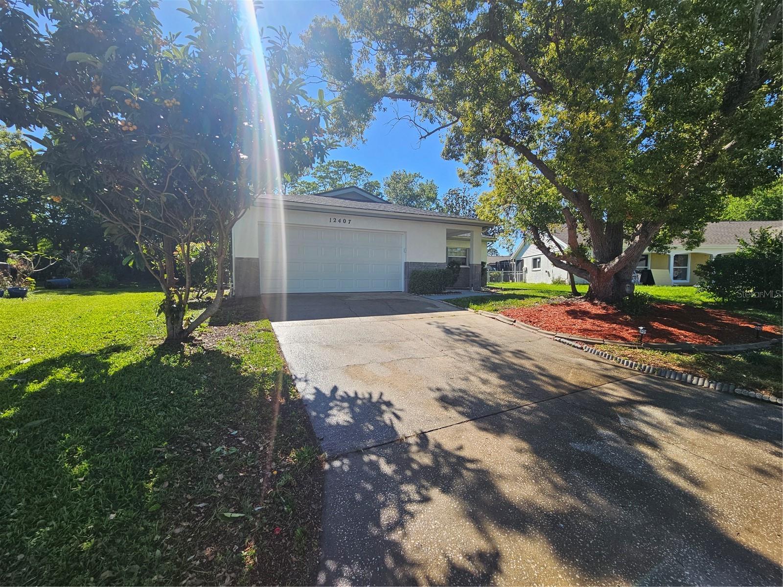 One or more photo(s) has been virtually staged. Nestled in the heart of Beacon Woods, subdivision, 12407 Spanish Moss Dr. presents a unique opportunity on a slice of Floridian Paradise. With its three bedrooms, two full baths, and an expansive 1292 ft.² of living space this property is the perfect canvas for creating your dream home, waiting for your personal touches to shine. This spacious two-car garage provides ample storage, while the newly installed AC unit (2021) ensures comfort throughout the year. Inside, the possibilities are endless. The open floor plan invites you to envision your ideal living space, complimented by natural light that floods through the large windows, casting a warm glow throughout the home. Outside, the private, wooded backyard, a serene retreat. Mature trees throughout the landscape, both beauty and privacy. It’s the perfect backdrop for morning, coffee, or evening gatherings. The lot is a blank canvas, ready for a garden, outdoor kitchen, or anything else your heart desires, Living in Beacon Woods means having exclusive access to the community, clubhouse, and golf course, ideal for social, gatherings, or honing your golf skills. Moreover, this home location is second to none. It’s just a stone's throw away from local shopping, pristine, beaches, and healthcare facilities, ensuring everything you need is within reach. This home represents not just a living space but an opportunity. An opportunity to put your stamp on something, to transform it into a reflection of your style and taste. With a solid foundation, community amenities, and an unbeatable location, 12407 Spanish Moss Dr. is ready to be turned into your haven. Don’t miss out on a chance to make this house your home.