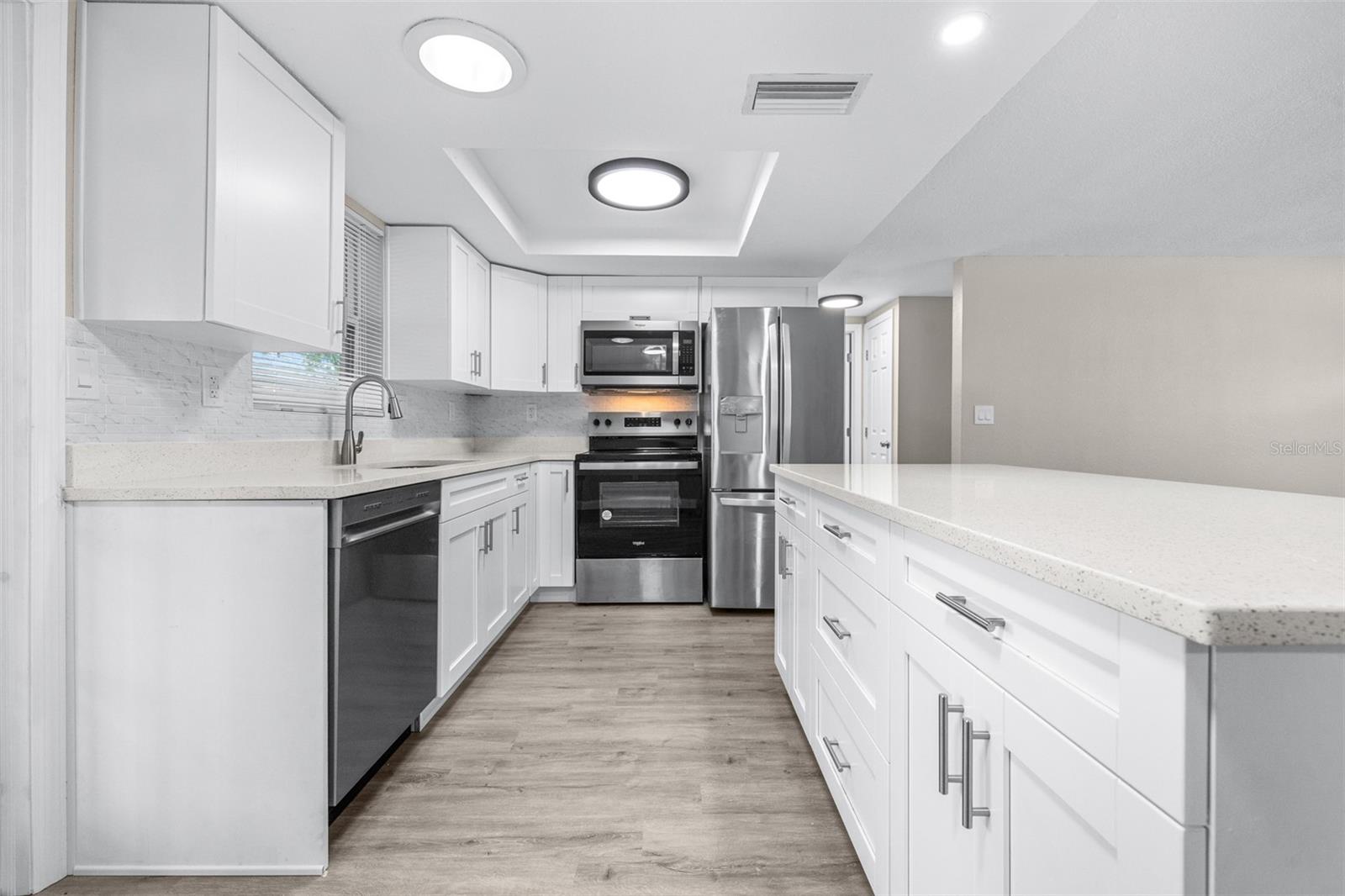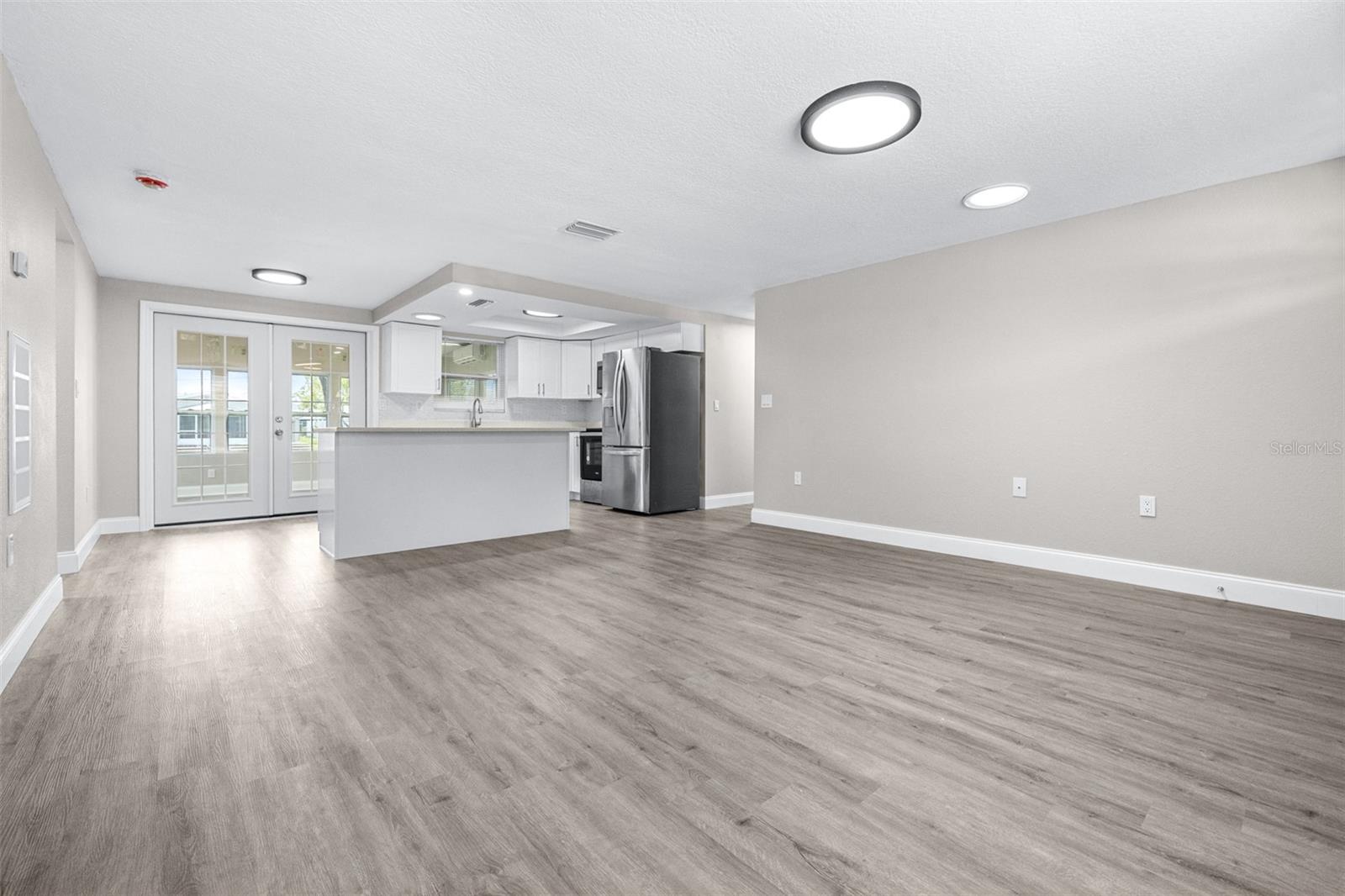 Welcome to your beautifully renovated, move-in ready waterfront home in Hudson Beach, where coastal living meets modern comfort. This charming 3-bedroom, 2-bath residence offers direct Gulf access with no fixed bridges and no HOA, making it ideal for boating, jet skiing, and fishing enthusiasts. The home features 1,443 square feet of open-concept living space, freshly painted inside and out, and showcases brand-new waterproof vinyl plank flooring throughout. Step into a bright and spacious family room that flows seamlessly into a fully updated kitchen, complete with white Shaker cabinetry, quartz countertops, a kitchen center island, and brand-new stainless steel appliances. A new French door leads to the air-conditioned Florida room, offering beautiful views of the water and direct access to a large backyard—perfect for relaxing evenings and enjoying vibrant sunsets. The seawall is ready for your future dock. The split-bedroom floor plan provides privacy, with two spacious guest bedrooms and a shared bathroom featuring a quartz-topped white Shaker vanity and a tiled bathtub on one side of the home, while the primary bedroom is tucked away on the opposite side, adjacent to a second full bath featuring a walk-in glass-enclosed shower and matching vanity. Additional updates include a roof less than four years old, a newer HVAC system under three years old, updated windows.New water heater, all-new drywall, baseboards, interior doors, french double door, electrical outlets, and fresh paint throughout the inside and outside, all completed in 2025. The home also features an inside laundry room with hookups. Ideally located just minutes from marinas, public boat ramps, waterfront restaurants, tiki bars, and a quaint local beach, this golf cart-friendly community also provides easy access to US-19, shopping, dining, and is just about an hour from Tampa International Airport. This home is a rare opportunity to enjoy the Florida lifestyle—schedule your private tour today!