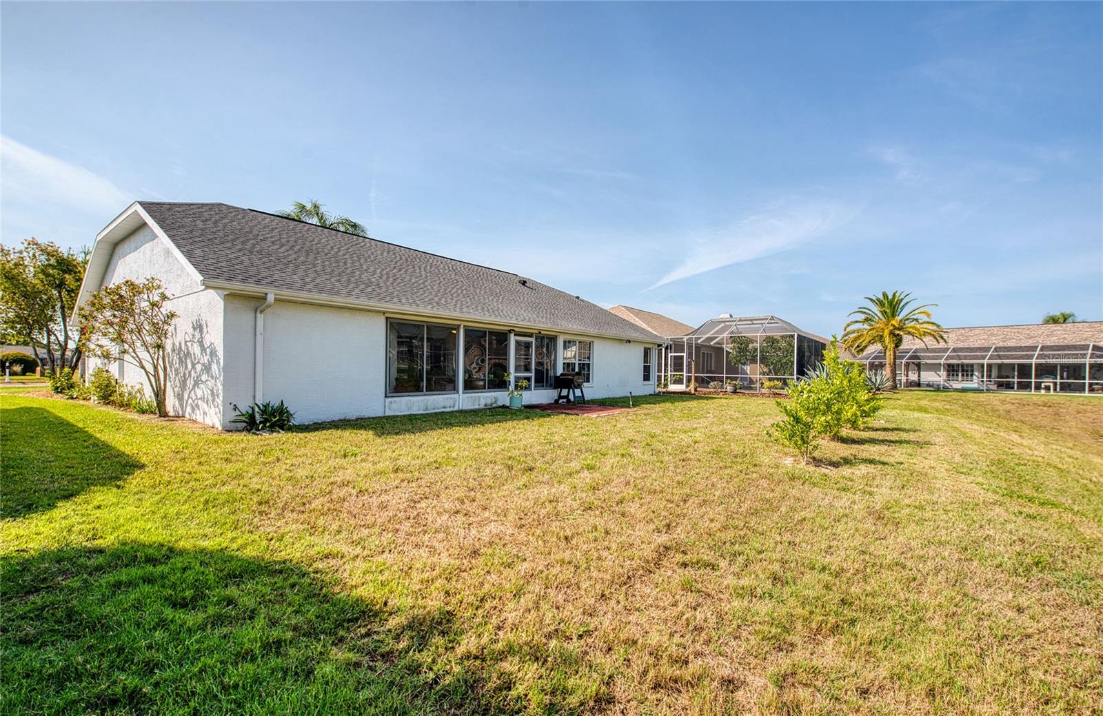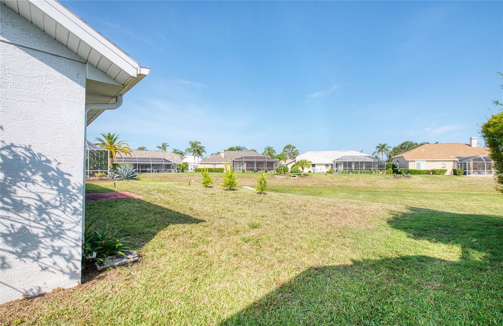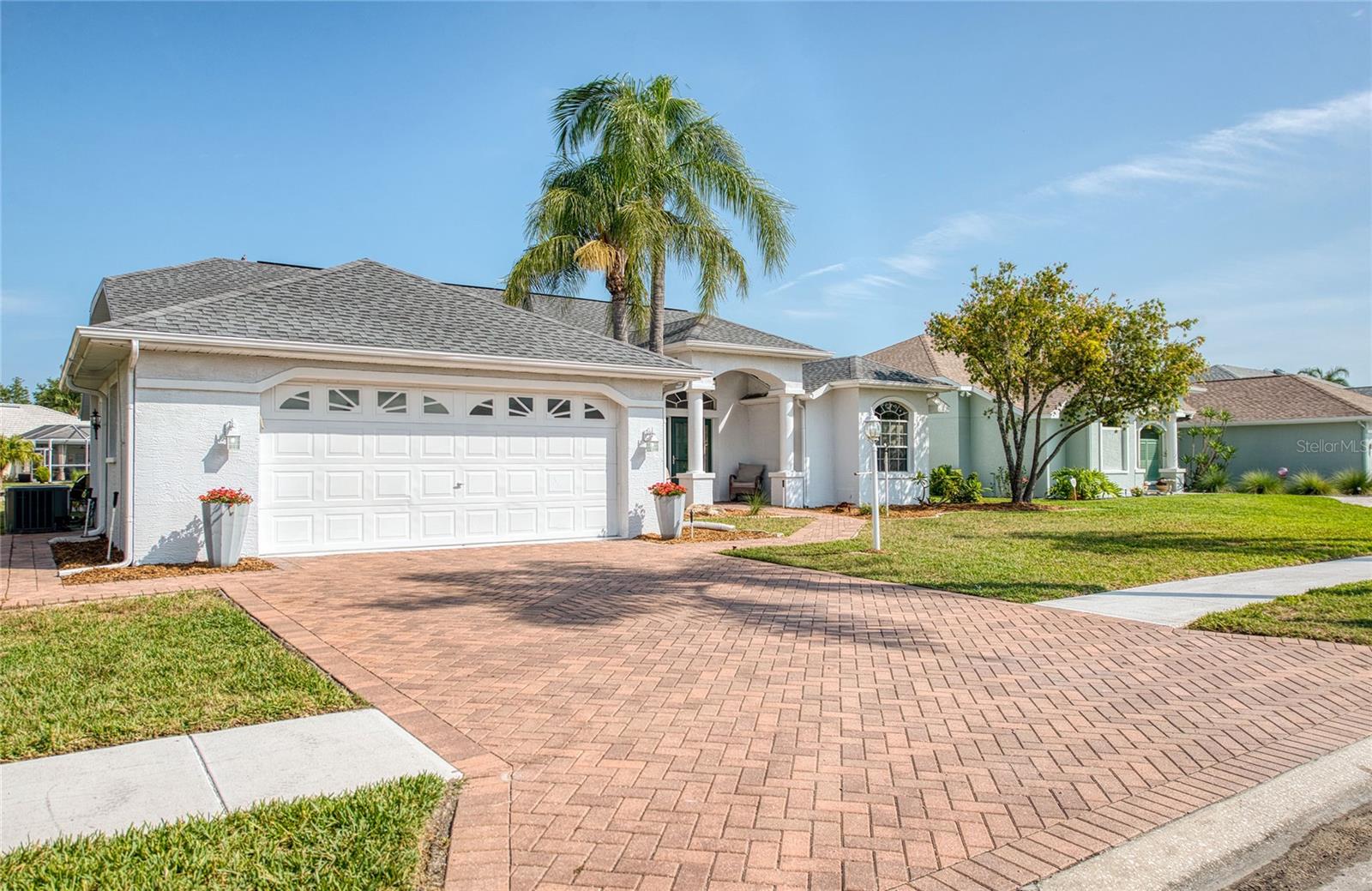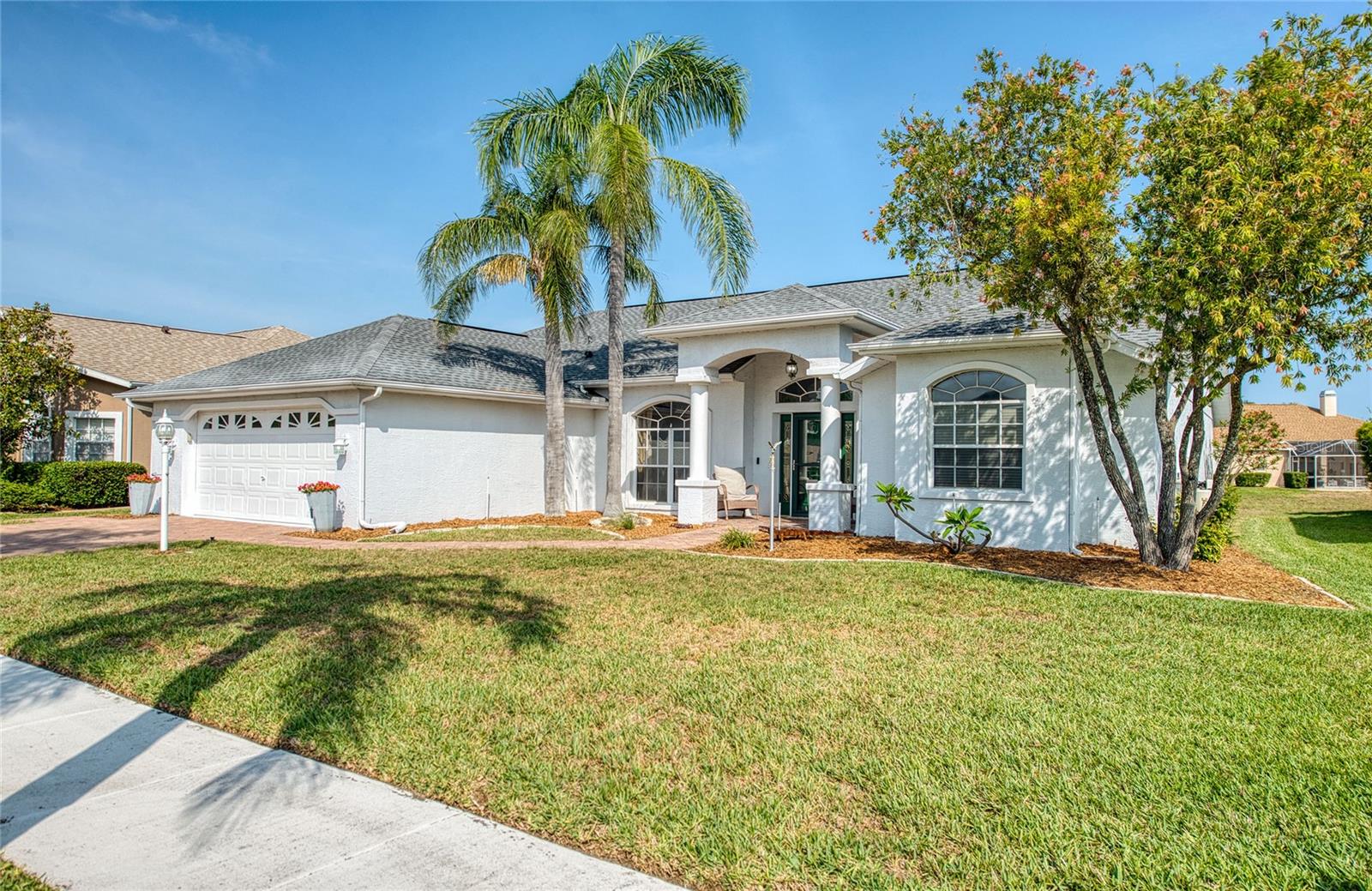 Welcome to this beautifully maintained 3-bedroom, 2-bathroom home in the highly desirable The Estates neighborhood, known for its great curb appeal and peaceful surroundings. This home offers peace of mind with recent updates. A/C (2021), new window screens (2021), Roof replaced in 2021 — invoice available upon request and new stainless steel kitchen appliances (2024). As you approach, a solid wood front door with brass-accented sidelights welcomes you, allowing natural light to flow into the entryway. Inside, you'll find a spacious double-door coat closet and ceramic tile flooring throughout the entry, kitchen, hallways, and bathrooms. The dining and living areas, along with the bedrooms, feature matching carpet for a warm and cohesive look. The open living and kitchen areas boast high ceilings and sliding glass doors that lead to a screened-in lanai and a serene backyard overlooking a retention pond—offering privacy with no rear neighbors and wide green views. The kitchen is both functional and charming, with whitewashed cabinets, granite countertops, a built-in desk area, stainless-steel sink, and ample cabinet storage. The adjacent laundry room, located just off the garage entry, also offers additional cabinetry and a utility sink. The spacious master suite features high ceilings, recessed lighting, and a flexible bonus room perfect for an office, nursery, yoga studio, or reading nook, with its own access to the lanai. Two walk-in closets lead to the master bathroom, which is outfitted with a double-sink vanity, makeup counter, large ceramic tile shower with glass doors, and a relaxing Jacuzzi tub set beneath a large window that lets in abundant natural light. The additional two bedrooms are generously sized, each with large closets and ceiling fans. They share a full hallway bathroom with ceramic tile flooring, a tiled shower with sliding glass doors, a single-sink vanity with storage and a privacy glass window. Additional features include ceiling fans throughout, vertical blinds, window treatments, and marble window sills. HOA dues include cable, high-speed internet, lawn maintenance, and pest/weed control. Enjoy a beautiful and full of fun Community's Club Housewith a pool, tennis and pickleball courts. Also, the well known Veterans Memorial Park is just 7 minutes away and offers a wide range of amenities, including a playground, splash pad, basketball, volleyball, pickleball courts, gym, Pilates classes, a swimming pool, and numerous sports programs, summer camps, and community events. Many of their activities are held indoors, making it a year-round destination for all ages. Don't miss the opportunity to live on Regal Lane in the Estates of Beacon Woods. Schedule your private showing today!
