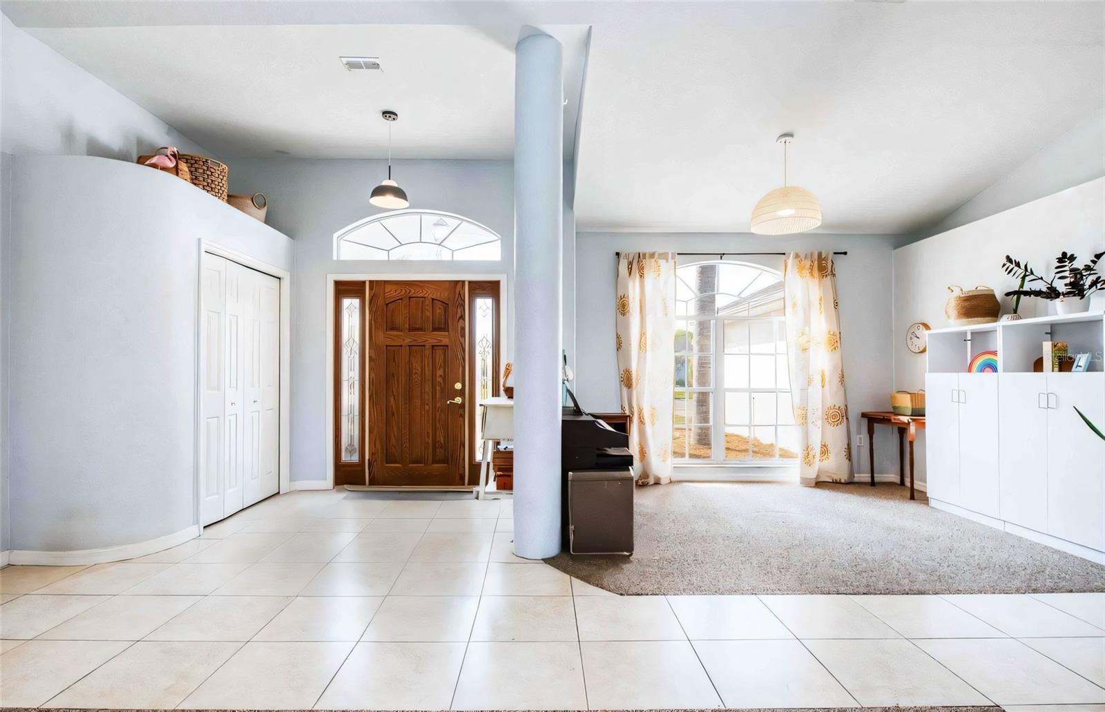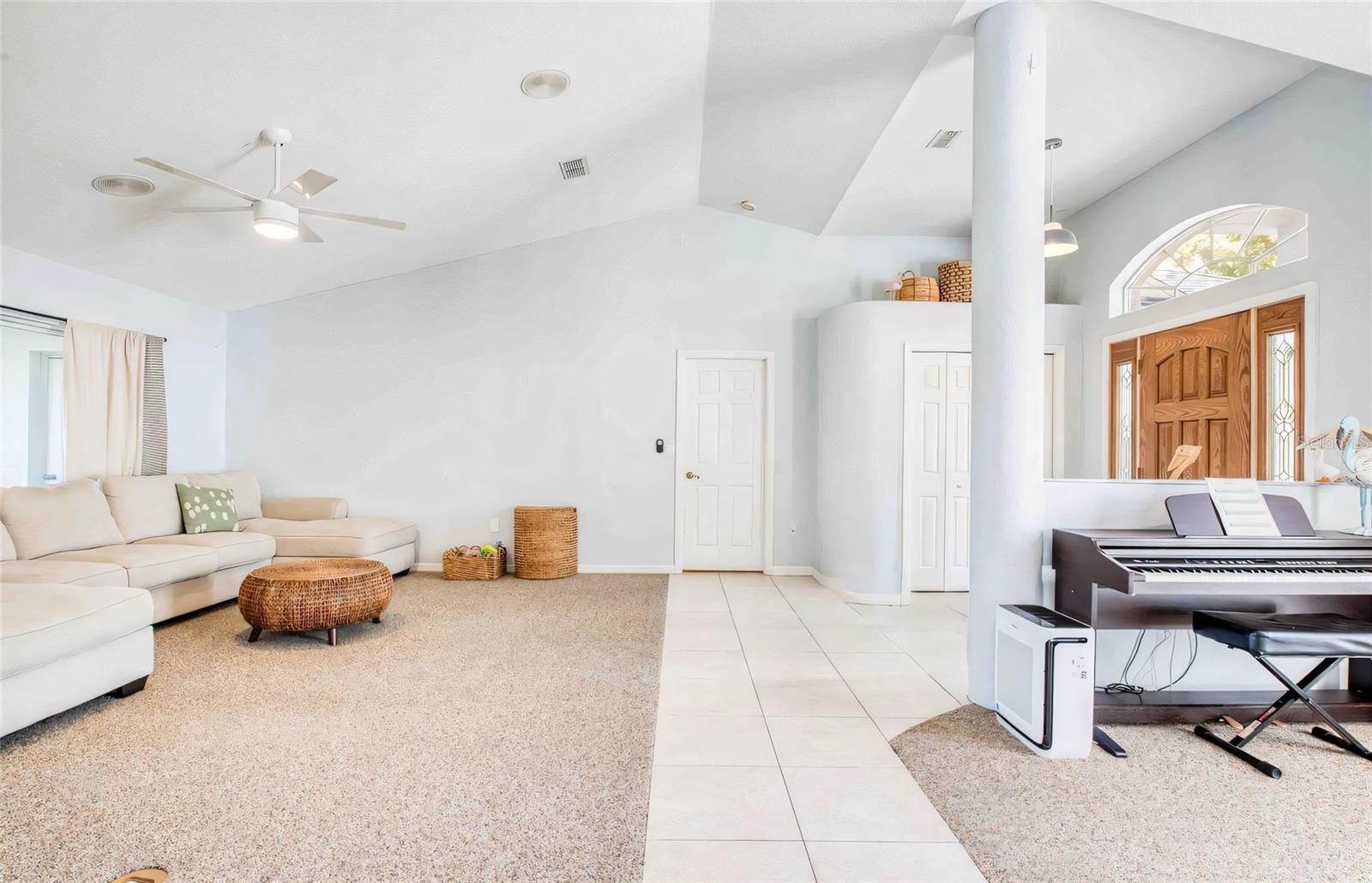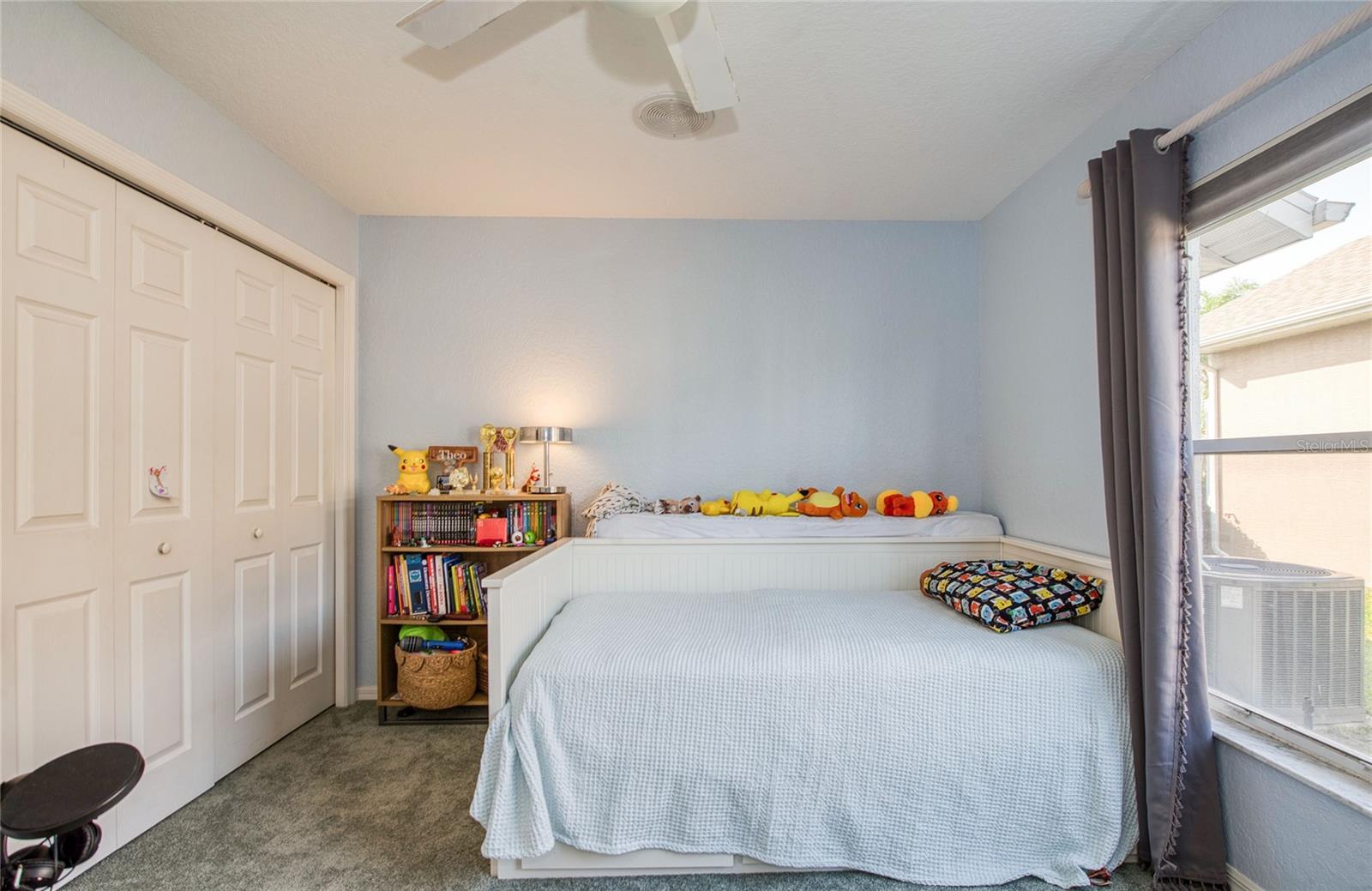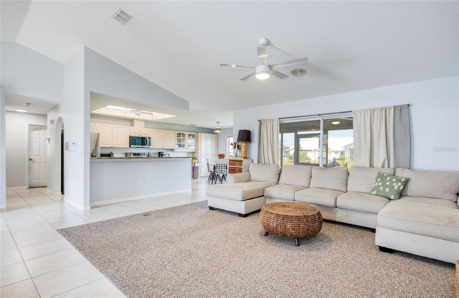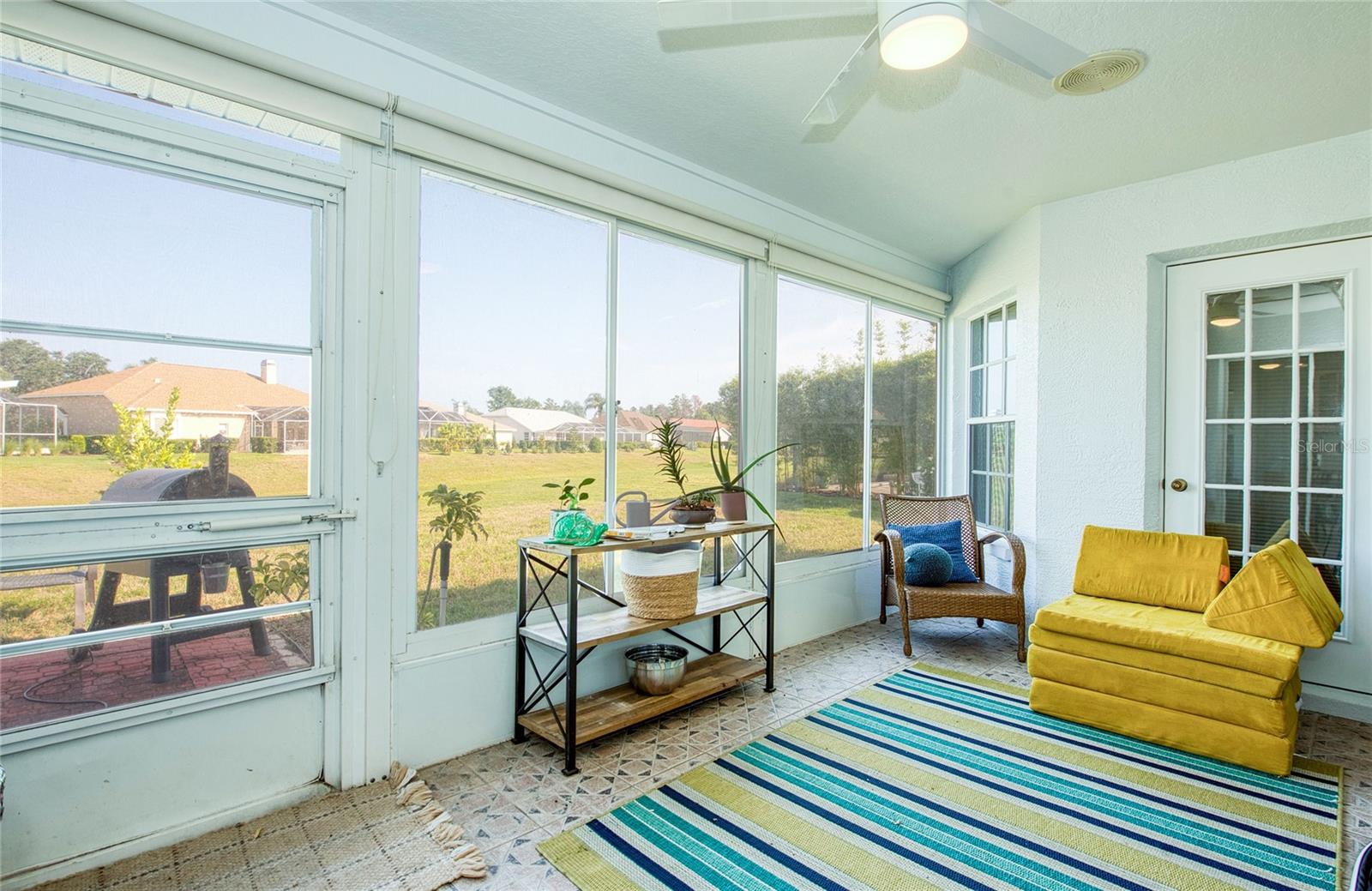 Welcome to this beautifully maintained 3-bedroom, 2-bathroom home in the highly desirable The Estates neighborhood, known for its great curb appeal and peaceful surroundings. This home offers peace of mind with recent updates. A/C (2021), new window screens (2021), Roof replaced in 2021 — invoice available upon request and new stainless steel kitchen appliances (2024). As you approach, a solid wood front door with brass-accented sidelights welcomes you, allowing natural light to flow into the entryway. Inside, you'll find a spacious double-door coat closet and ceramic tile flooring throughout the entry, kitchen, hallways, and bathrooms. The dining and living areas, along with the bedrooms, feature matching carpet for a warm and cohesive look. The open living and kitchen areas boast high ceilings and sliding glass doors that lead to a screened-in lanai and a serene backyard overlooking a retention pond—offering privacy with no rear neighbors and wide green views. The kitchen is both functional and charming, with whitewashed cabinets, granite countertops, a built-in desk area, stainless-steel sink, and ample cabinet storage. The adjacent laundry room, located just off the garage entry, also offers additional cabinetry and a utility sink. The spacious master suite features high ceilings, recessed lighting, and a flexible bonus room perfect for an office, nursery, yoga studio, or reading nook, with its own access to the lanai. Two walk-in closets lead to the master bathroom, which is outfitted with a double-sink vanity, makeup counter, large ceramic tile shower with glass doors, and a relaxing Jacuzzi tub set beneath a large window that lets in abundant natural light. The additional two bedrooms are generously sized, each with large closets and ceiling fans. They share a full hallway bathroom with ceramic tile flooring, a tiled shower with sliding glass doors, a single-sink vanity with storage and a privacy glass window. Additional features include ceiling fans throughout, vertical blinds, window treatments, and marble window sills. HOA dues include cable, high-speed internet, lawn maintenance, and pest/weed control. Enjoy a beautiful and full of fun Community's Club Housewith a pool, tennis and pickleball courts. Also, the well known Veterans Memorial Park is just 7 minutes away and offers a wide range of amenities, including a playground, splash pad, basketball, volleyball, pickleball courts, gym, Pilates classes, a swimming pool, and numerous sports programs, summer camps, and community events. Many of their activities are held indoors, making it a year-round destination for all ages. Don't miss the opportunity to live on Regal Lane in the Estates of Beacon Woods. Schedule your private showing today!