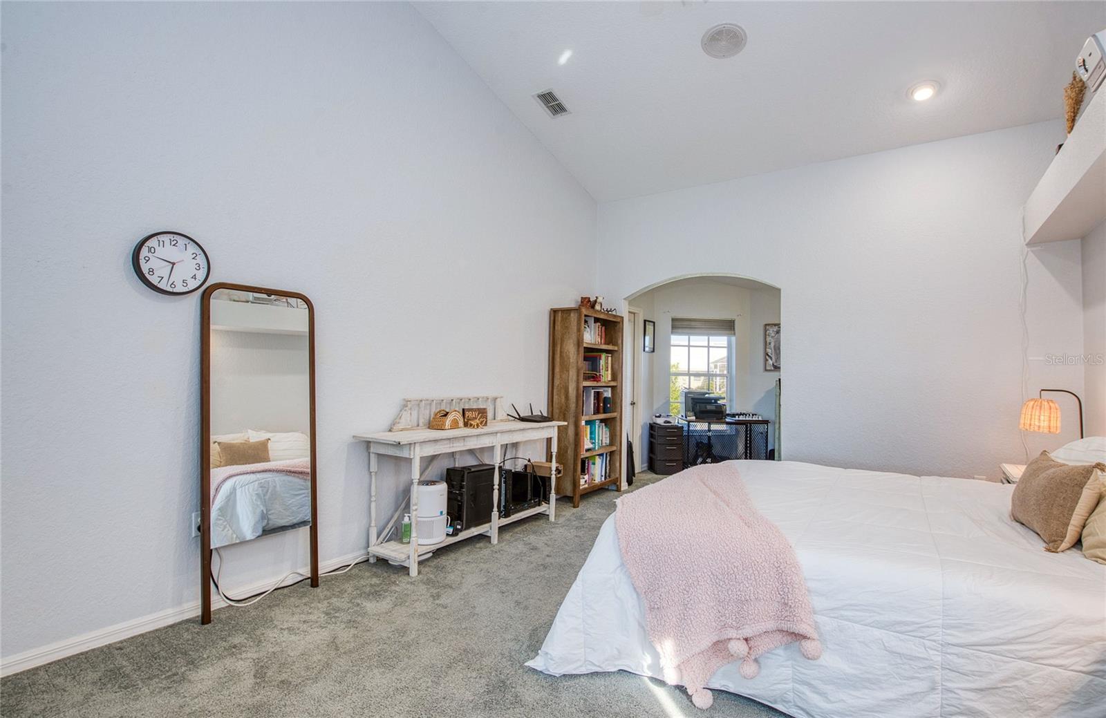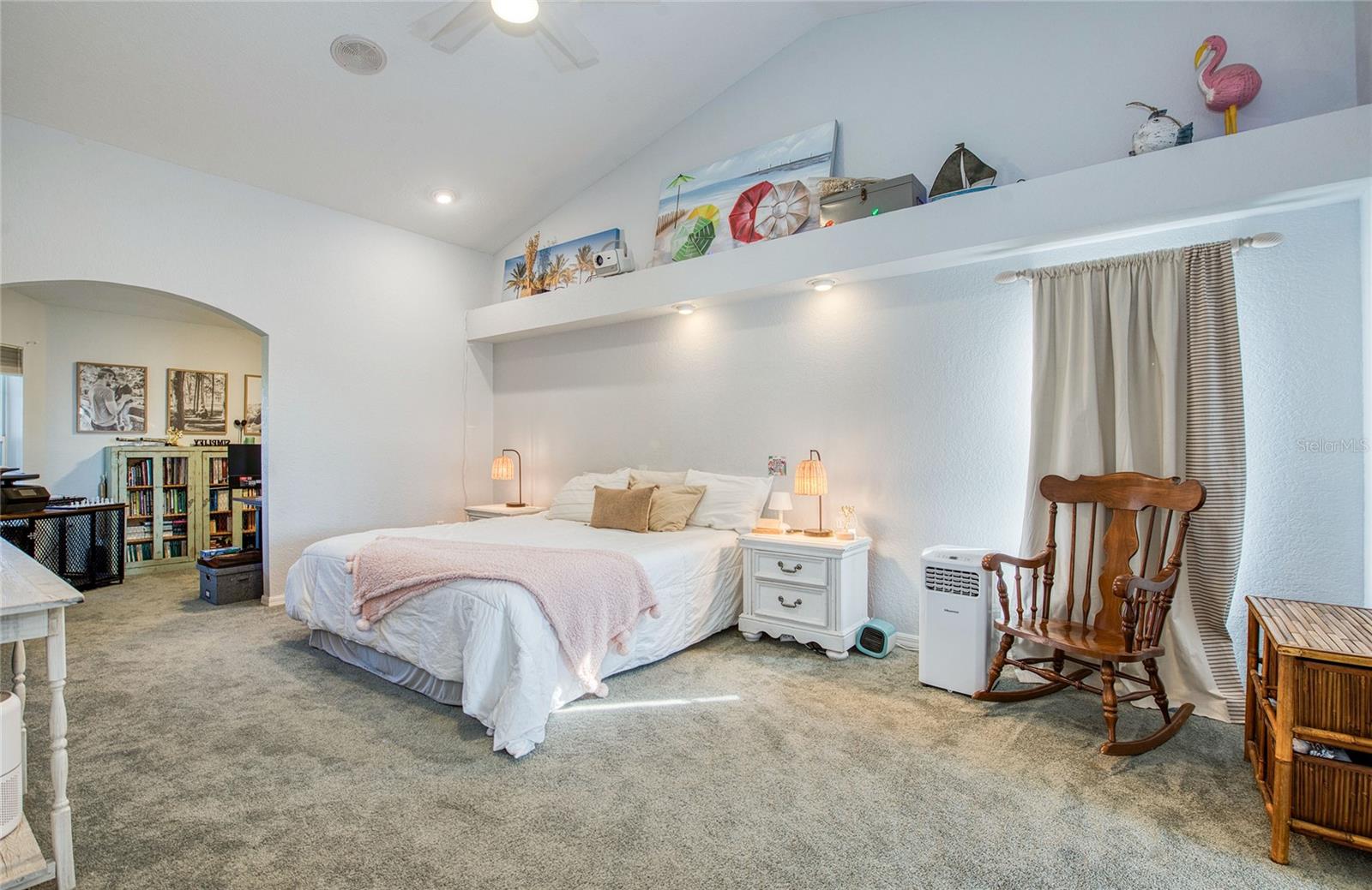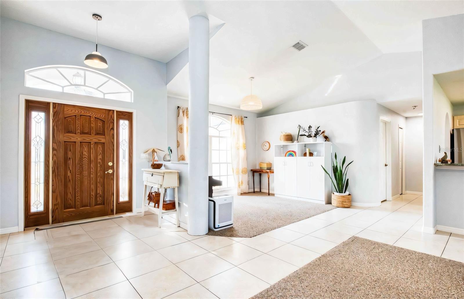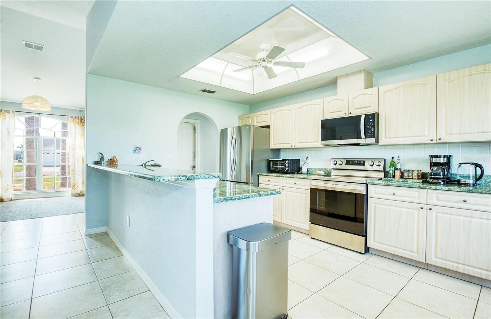 Welcome to this beautifully maintained 3-bedroom, 2-bathroom home in the highly desirable The Estates neighborhood, known for its great curb appeal and peaceful surroundings. This home offers peace of mind with recent updates. A/C (2021), new window screens (2021), Roof replaced in 2021 — invoice available upon request and new stainless steel kitchen appliances (2024). As you approach, a solid wood front door with brass-accented sidelights welcomes you, allowing natural light to flow into the entryway. Inside, you'll find a spacious double-door coat closet and ceramic tile flooring throughout the entry, kitchen, hallways, and bathrooms. The dining and living areas, along with the bedrooms, feature matching carpet for a warm and cohesive look. The open living and kitchen areas boast high ceilings and sliding glass doors that lead to a screened-in lanai and a serene backyard overlooking a retention pond—offering privacy with no rear neighbors and wide green views. The kitchen is both functional and charming, with whitewashed cabinets, granite countertops, a built-in desk area, stainless-steel sink, and ample cabinet storage. The adjacent laundry room, located just off the garage entry, also offers additional cabinetry and a utility sink. The spacious master suite features high ceilings, recessed lighting, and a flexible bonus room perfect for an office, nursery, yoga studio, or reading nook, with its own access to the lanai. Two walk-in closets lead to the master bathroom, which is outfitted with a double-sink vanity, makeup counter, large ceramic tile shower with glass doors, and a relaxing Jacuzzi tub set beneath a large window that lets in abundant natural light. The additional two bedrooms are generously sized, each with large closets and ceiling fans. They share a full hallway bathroom with ceramic tile flooring, a tiled shower with sliding glass doors, a single-sink vanity with storage and a privacy glass window. Additional features include ceiling fans throughout, vertical blinds, window treatments, and marble window sills. HOA dues include cable, high-speed internet, lawn maintenance, and pest/weed control. Enjoy a beautiful and full of fun Community's Club Housewith a pool, tennis and pickleball courts. Also, the well known Veterans Memorial Park is just 7 minutes away and offers a wide range of amenities, including a playground, splash pad, basketball, volleyball, pickleball courts, gym, Pilates classes, a swimming pool, and numerous sports programs, summer camps, and community events. Many of their activities are held indoors, making it a year-round destination for all ages. Don't miss the opportunity to live on Regal Lane in the Estates of Beacon Woods. Schedule your private showing today!