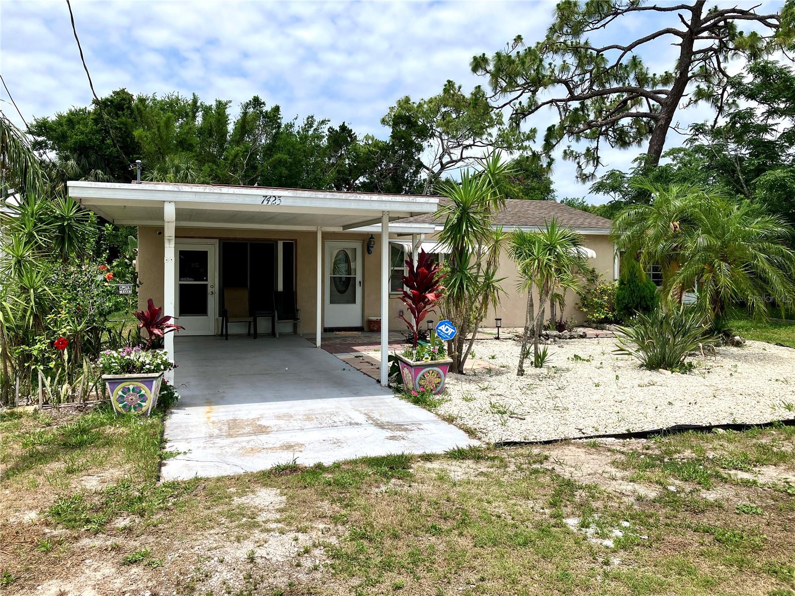 Charming 2BR/1.5BA home with updates and space to live, garden, and create! Central AC (3 yrs old) plus freestanding AC unit, fans in every room for energy savings. Spacious closets, linen closet, enclosed garage with half bath, washer/dryer—perfect for a workshop or hobby space. Florida room offers garden views and dining nook. Covered patios, carport, large backyard ideal for gardening. Also includes new stove, new microwave, electric lawnmower, tiller, power washer, shop vac, dehumidifier, fridge with ice maker, wicker couch & kitchen table. Move-in ready! Don’t miss this opportunity to own a delightful, efficient, and versatile home that’s ready for your personal touch!