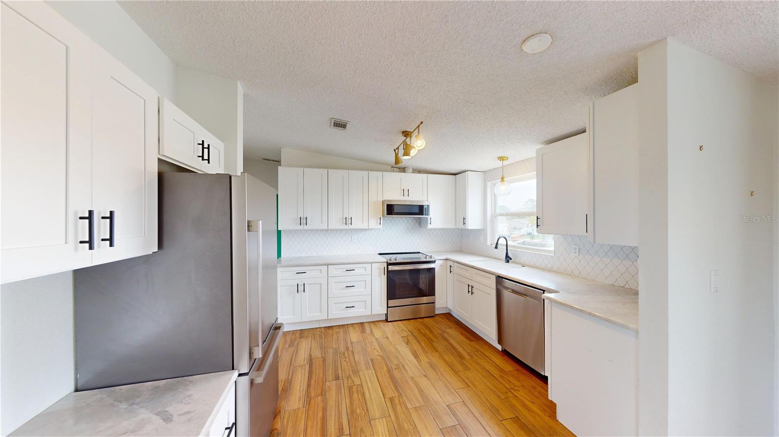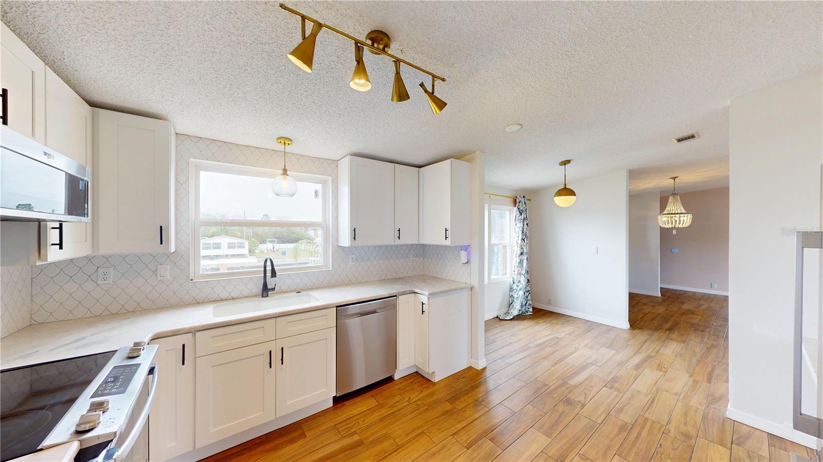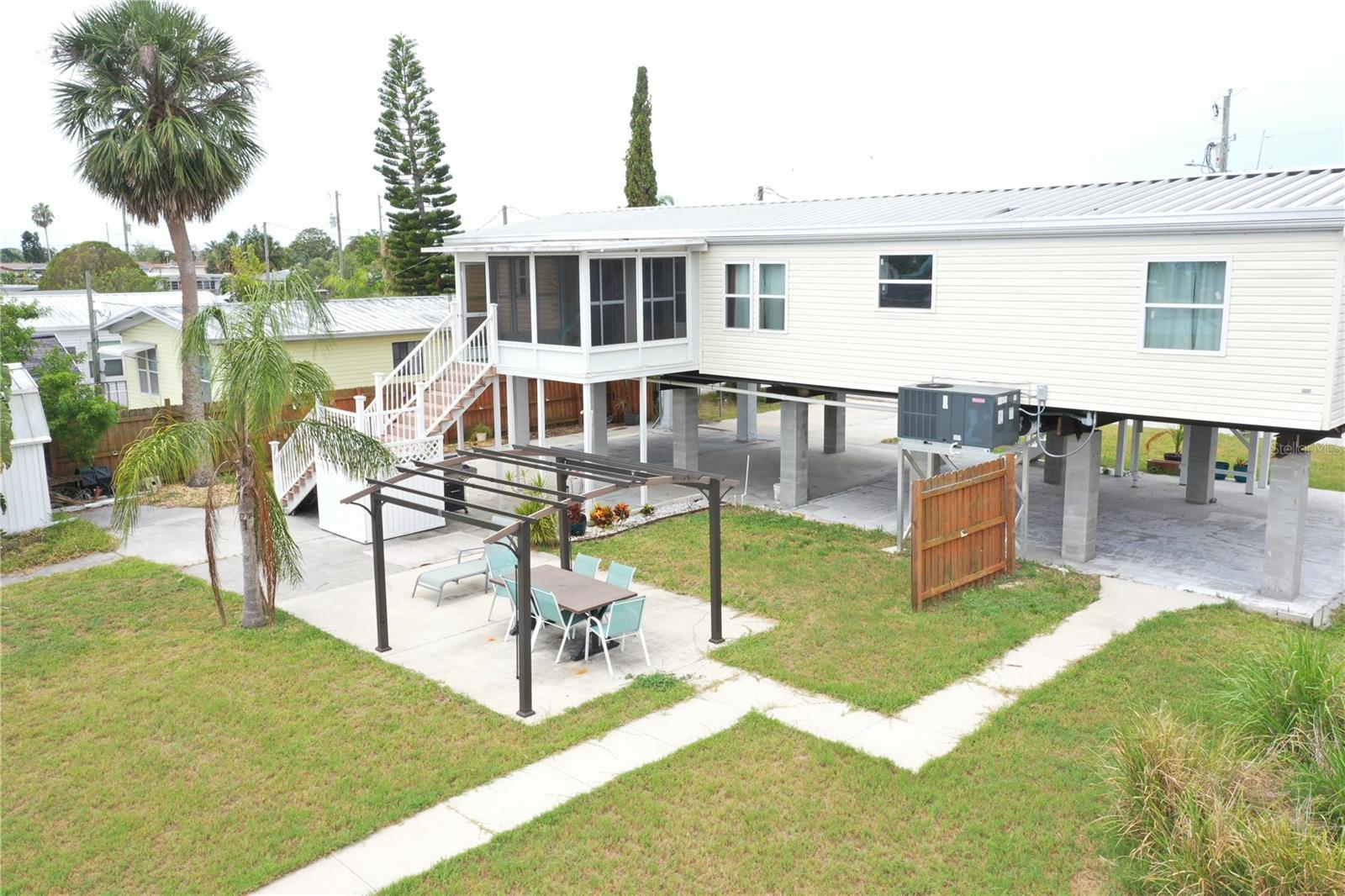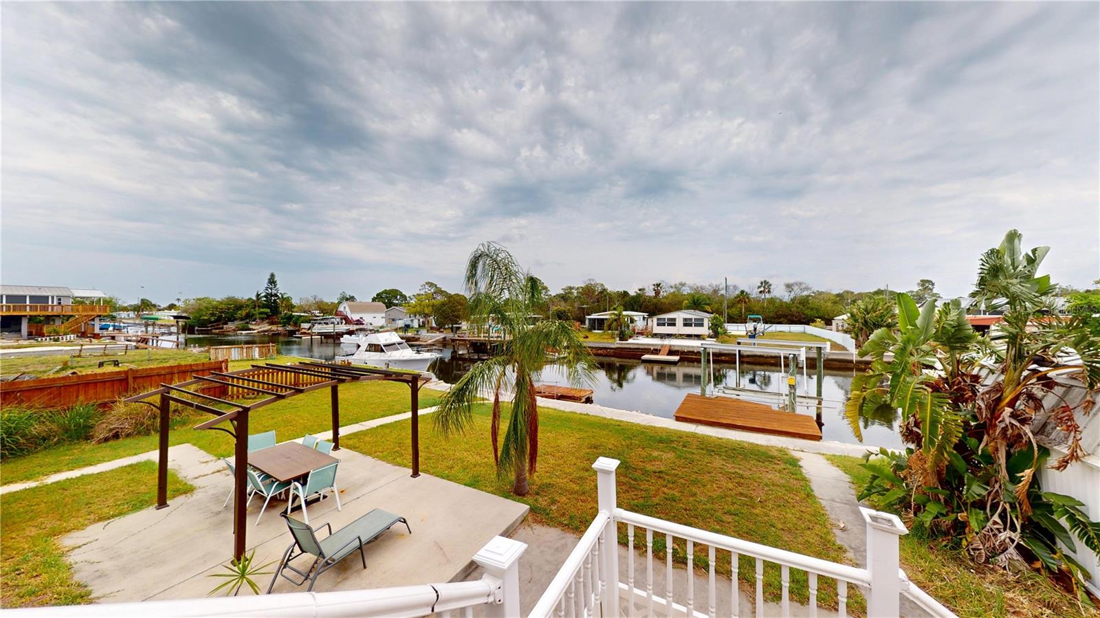 Updated, upgraded & a recent price decrease! This waterfront home, in Signal Cove of Hudson is what you have been looking for with 80 feet of seawall! This 1994 Palm Harbor Stilt Home is unrecognizable from what it was a couple of years ago while available and waiting for it's new owners! Driving into the neighborhood, you get the very sense that the water is nearby. Approaching the property, you'll notice the home is levels above the rest as a spot for relaxing & enjoying that Florida lifestyle. The backyard is spacious & provides a large, covered area for a break from the sun, a sun shaded seating area, large shed & not only a dock with boatlift & a floating dock but 80 glorious feet of seawall!! From the backyard, you can enter the home, via its composite built staircase into the front covered porch. Upon entrance of the home there is an open, airy feeling to the home that greets you inside, with its open floor plan offering a very large living room & dining area combination & the kitchen & breakfast are combination with a desk for convenience. The owner's suite is separate from the spare bedrooms while providing ample space for get togethers. The entire home has wood plank style tiling that runs through the entire floor plan providing consistency for your eye & as well as your sanity. The large owner's suite has a large closet, large window for lighting, a ceiling fan & a private en-suite that is sure to please with its separate shower stall, upgraded wooden vanity, fixtures & hardware while featuring a gorgeous stand-alone tub! Back out to the living room there is a large window, ceiling fan & enough space for the largest of sectionals or couch sets with a full ensemble. There is an open dining area near both the living room & kitchen while the kitchen boasts a breakfast area, a nook with desk & storage, quartz countertops, upgraded stainless steel appliances, solid wood cabinetry, updated fixtures & hardware. Just past the kitchen & delving deeper into the home is where you will find the 3 spare bedrooms, laundry room with exterior exit that can also be used to enter the home & a full updated & upgraded bathroom. The first spare bedroom provides a ceiling fan & a large window while being closest to the kitchen. The second spare bedroom is nearer the full bath & offers a view of the water, through it's window, while having a standard closet & ceiling fan. The third spare bedroom is nearest to the laundry room & linen closet & has a window & no closet. The full spare bathroom has an upgraded glass enclosure shower, wood vanity, framed mirror & upgraded hardware & fixtures. Being only 27 miles from Clearwater beach & 69 miles to Disney World this property should be your next home tour. If you have been looking for something with water frontage and easy access to the Gulf of Mexico, well hear you have it!