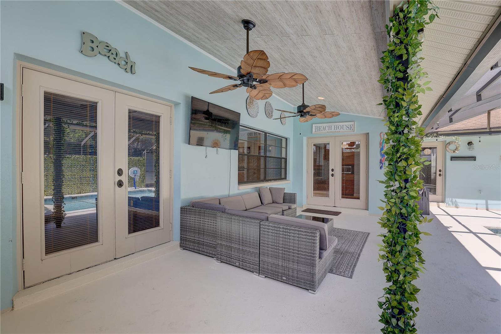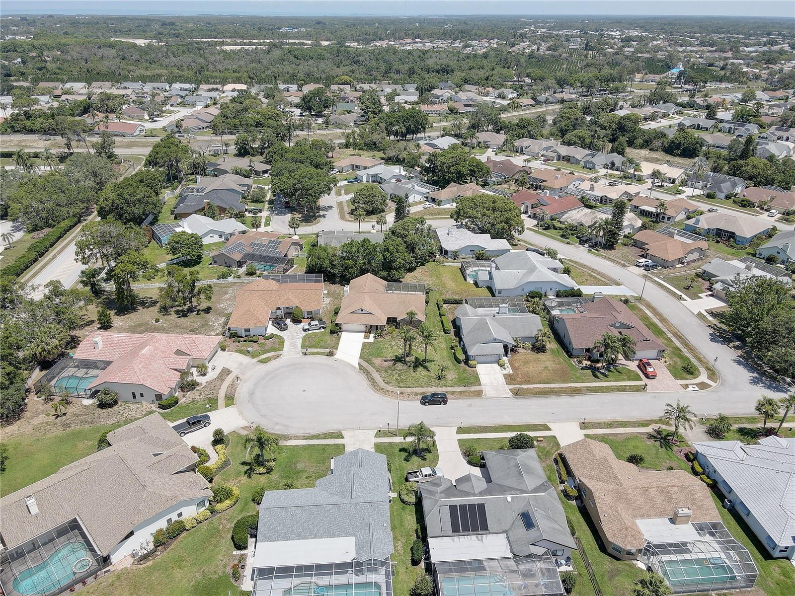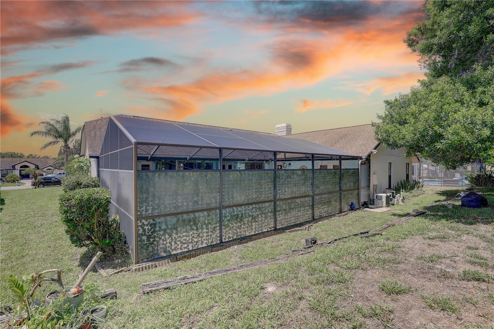 Step into timeless comfort and modern convenience at this stunning four-bedroom, two-bathroom home, where every detail has been crafted to inspire everyday luxury. Nestled on a peaceful cul-de-sac and set on over a quarter-acre lot, this spacious 2,327 square foot residence offers an elegant blend of warmth and sophistication—all with a serene view of your private, screen-enclosed pool oasis. As you approach the home, you're welcomed by a charming exterior accented with stucco and classic architectural lines. Step through the French doors into a beautifully laid-out interior where soaring cathedral and vaulted ceilings create an open and airy ambiance. Skylights cast natural light across the living spaces, enhancing the home’s fresh and vibrant feel. Elegant bamboo and tile flooring run throughout, adding a refined touch to every step. The heart of the home, the kitchen, is designed for both beauty and functionality. Solid wood cabinets and striking stone countertops provide ample space for meal prep or entertaining, while a breakfast bar and open layout to the family room ensure you’re always part of the conversation. Cooking is a delight with a suite of modern appliances, including a range, range hood, microwave, refrigerator, dishwasher, and more—all included. Cozy up in the expansive family room, where a striking stone fireplace sets the scene for memorable evenings. The primary suite is a restful retreat, offering generous space and a walk-in closet, creating the perfect balance of form and function. Three additional bedrooms, each with their own character, plenty of room for family, guests, or even a home office. Outside, paradise awaits. A sparkling heated pool with an in-ground spa invites you to unwind or entertain with style, all beneath the comfort of a screened enclosure. The outdoor kitchen enhances the space, perfect for weekend BBQs or relaxed al fresco dinners. Surrounded by lush landscaping and mature trees, this backyard feels like a private resort. The home’s layout is smart and seamless, including thoughtful extras like a dedicated laundry room, ample storage, and a garage with workshop space and a door opener for added convenience. The home also features central air, electric and gas heating, and is connected to public utilities. Located within a vibrant community, residents enjoy access to a community pool, parks, playgrounds, tennis courts, and walking trails—perfect for those who love to stay active or just enjoy a leisurely stroll. With a floorplan that flows effortlessly, stunning outdoor spaces, and stylish interior finishes, this property is a rare gem that offers both elegance and livability. Whether you're hosting family and friends, relaxing poolside, or enjoying the spacious interior, every corner of this home invites you to live fully and comfortably. Come home to where comfort meets style, and your everyday escape begins.