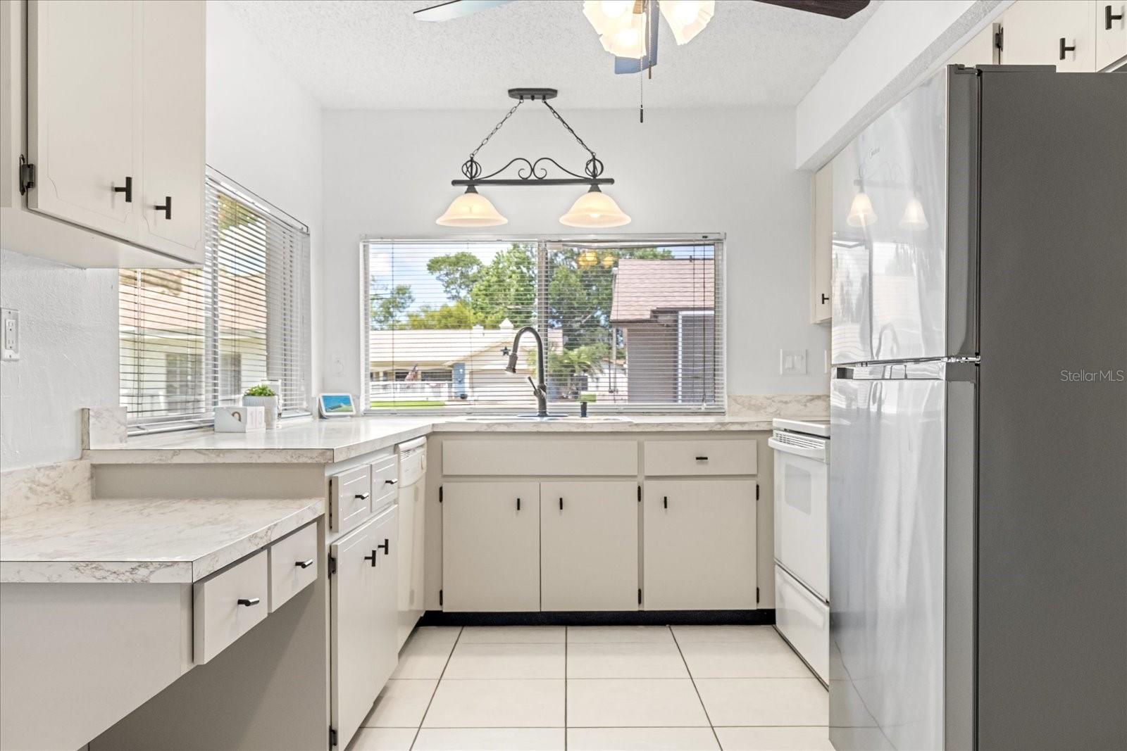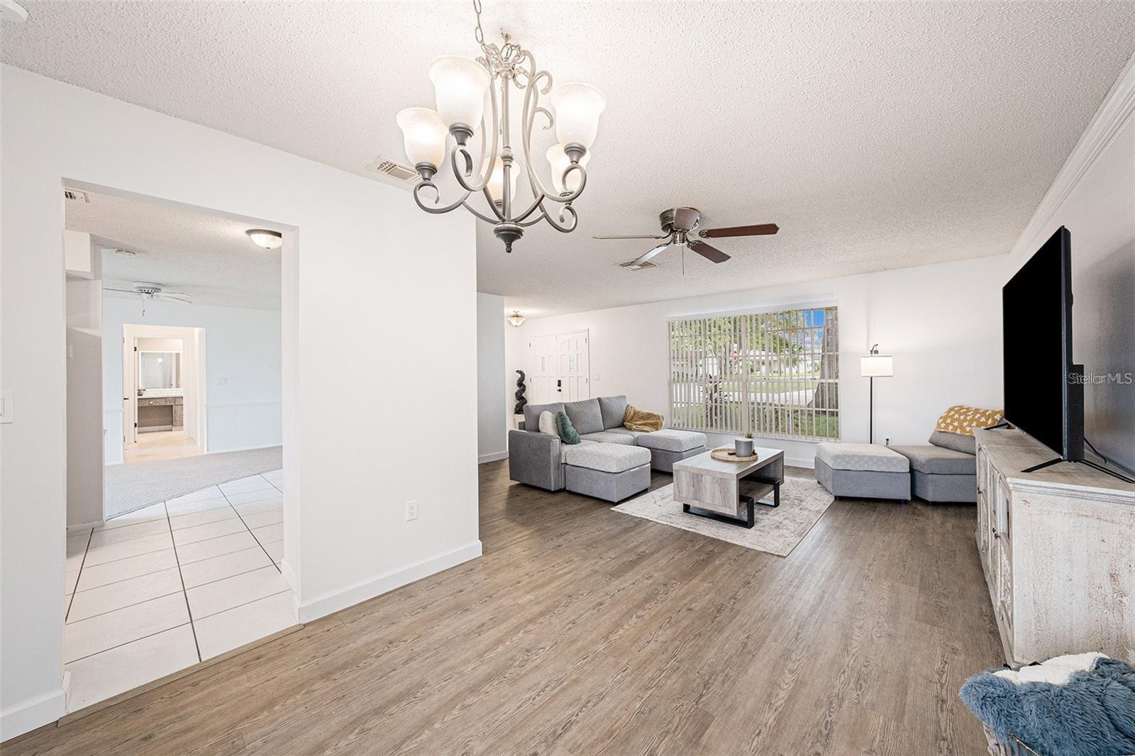 Welcome to this beautiful 2-bedroom, 2-bathroom, 2 car garage home that sits on a coveted corner lot in the sought after, well established and deed restricted neighborhood of Beacon Woods East. This tranquil home boasts a new HVAC (2025), updated kitchen cabinets, freshly painted walls inside and out, plush newer carpet, LVP and many new fixtures throughout. The living and dining room provide ample space for entertainment, while the split floor plan offers privacy and comfort for all. The second bedroom is perfect for guests while the primary suite is a true retreat with its walk-in closet and private bathroom. The kitchen features plenty of counter space and lots of natural light, including a pass thru window to the outdoor granite counter. The living room is the heart of the home, with sliders that provide a seamless transition to the covered screened in lanai, perfect for grilling and relaxing outside. Enjoy each morning to awe-inspiring sunrises and end each day viewing captivating SUNSETS. The 2-car garage provides plenty of space for your vehicles and toys. Centrally located, this home provides easy access to all major roads, and makes it an ideal location for anyone. With shopping, golfing, boating, hospital, dining, and entertainment just a short drive away, this is the perfect place to call home.