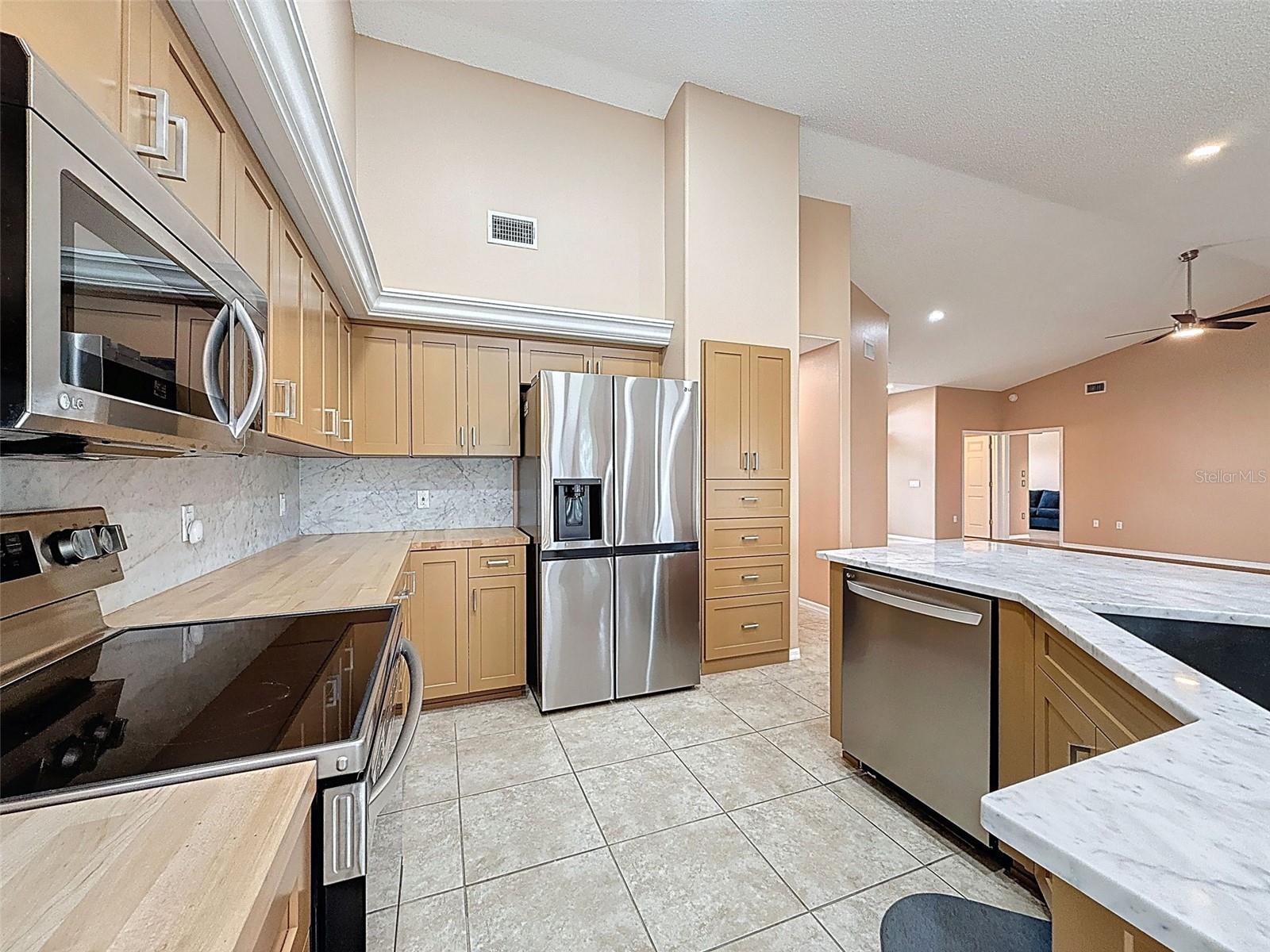 One or more photo(s) has been virtually staged. Meticulously maintained 3-bedroom, 3 FULL bathroom, 2-CAR GARAGE home is located in the Resort-Like Adult community of Heritage Pines. From the moment you step inside, the expansive open floor plan and soaring vaulted ceilings create a space that is both cozy and airy. This home is beautifully updated, with every detail thoughtfully designed to make you feel right at home. This home boasts a new custom Kitchen, a super energy efficient Train a/c unit, along with a large 18'x10' patio. This Heritage Pines house is more than just a community—it’s a lifestyle. This community offers the perfect blend of active living and peace of mind. The 24-hour security and gated entrance provide the privacy and safety you deserve, while the endless amenities and activities make every day feel like a vacation. The clubhouse has been newly renovated to include a restaurant and bar which serves delicious meals and drinks at unbeatable prices. You’ll also find a performing arts center, library, craft rooms, woodworking shop, and a host of social clubs and activities to fit every interest and passion. From yoga and aerobics to card nights and volunteer opportunities, the possibilities here are endless. And when you're looking to relax, your HOA fee covers everything from high-speed internet and cable to lawn care & pest control. For golf enthusiasts, the pristine, resident-owned golf course awaits, along with pickleball courts, tennis, bocce ball, and even billiards—there’s always something to do! Relax and unwind at the heated pool and jacuzzi, or take in a show at the Performing Arts Center. The possibilities for recreation are endless with a variety of social clubs, activities, & classes of all kinds. Heritage Pines truly offers the best of Florida living. The convenience of having all your favorite activities right at your doorstep, combined with the peace and beauty of a park-like setting, makes this home the perfect place to live, relax, and thrive. Plus, with easy access to the stunning beaches of the Tampa Bay area, and the hidden gems of the Nature Coast, you can explore all that Florida has to offer. This is more than just a home—it’s the opportunity to embrace a vibrant, fulfilling Resort-Like Lifestyle in a community that feels like family. Whether you seek adventure or relaxation, Heritage Pines has it all. Schedule your private tour today and see firsthand why this could be the perfect place for you to start your next chapter!!