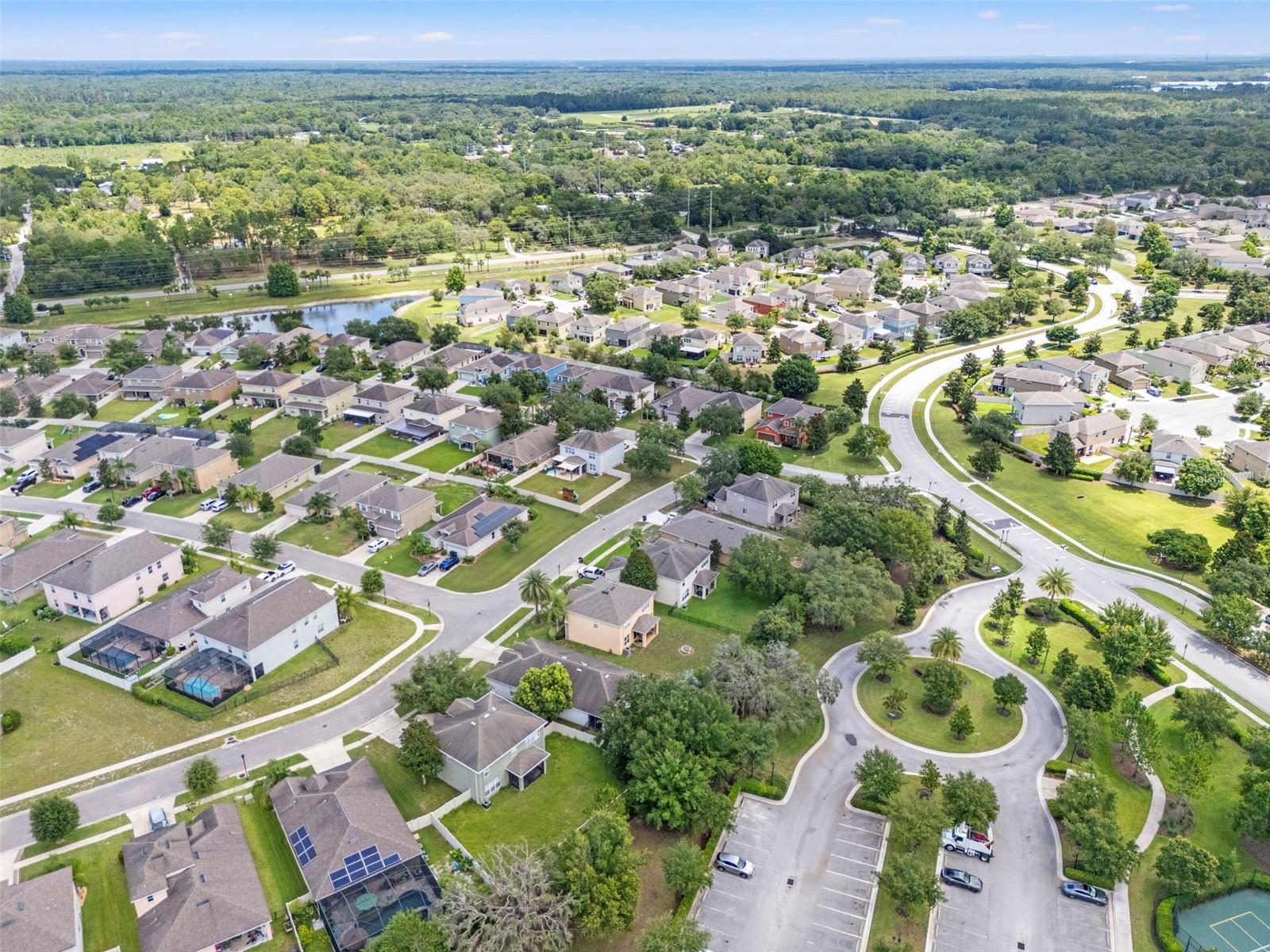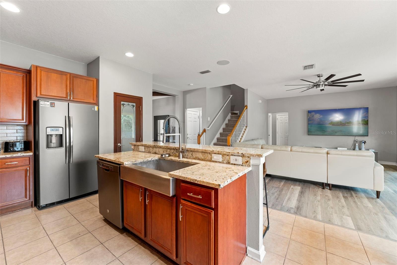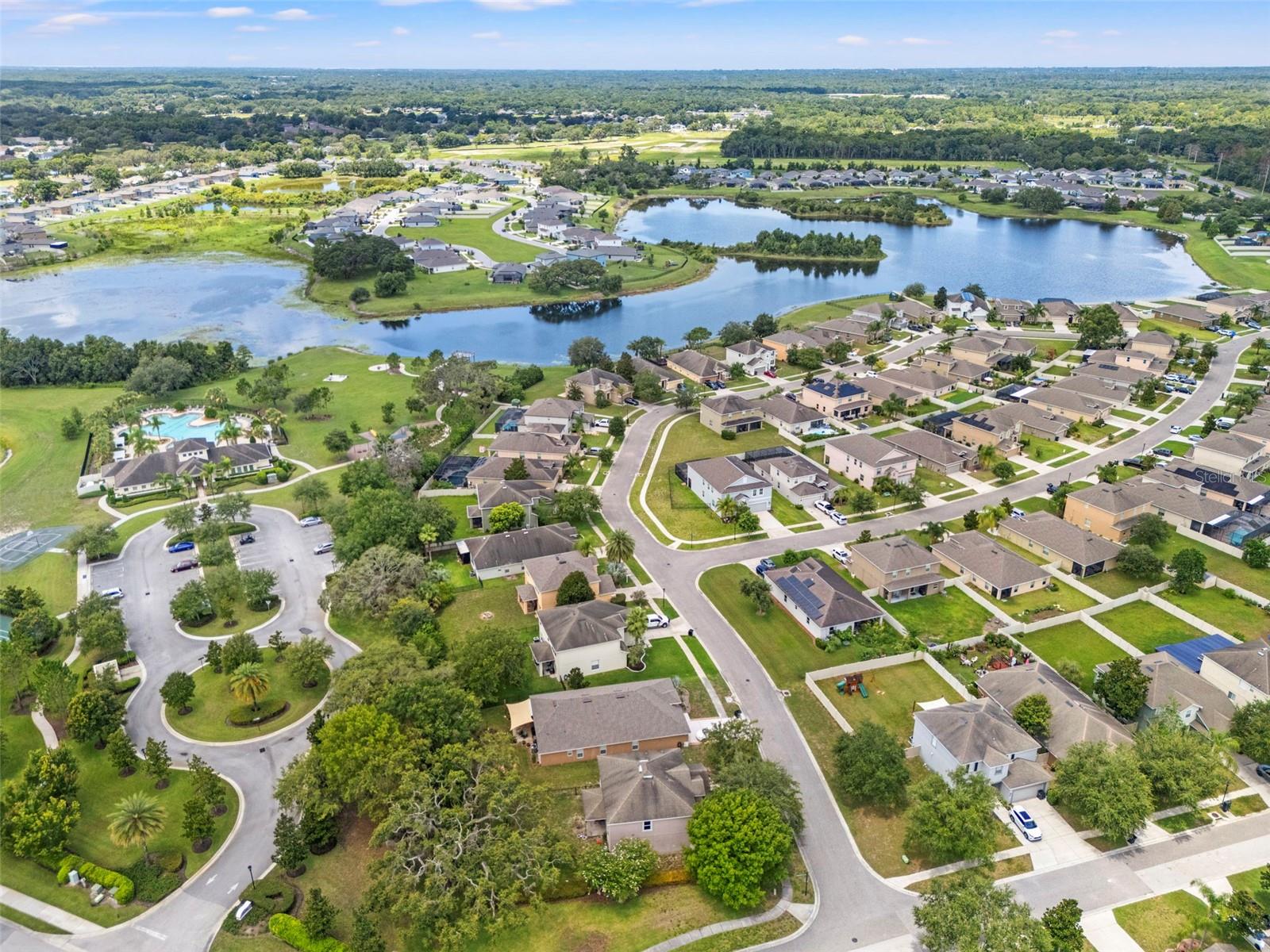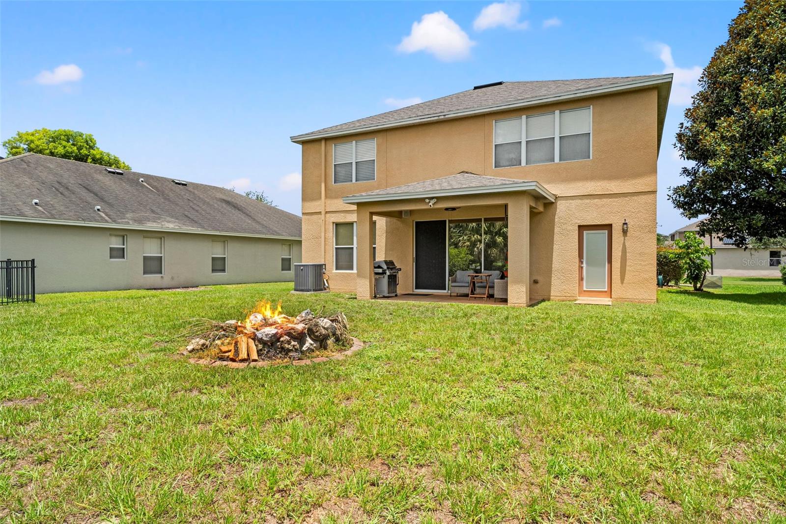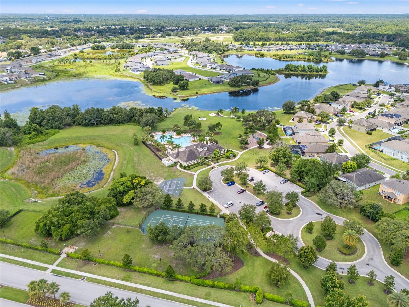 One or more photo(s) has been virtually staged. MOTIVATED SELLER!Gorgeous 4-Bedroom Home with Elegant Curb Appeal & Premium Upgrades! Welcome to this stunning 4-bedroom, 2.5-bathroom home that exudes charm from the moment you arrive. Beautifully landscaped with striking stone front elevation and an elegant 8-foot front door with phantom screen, this home is designed to impress both inside and out. Step into the bright and airy foyer featuring high ceilings with wood beam accents, Edison-style LED lighting, and durable ceramic tile floors. Off the entry, you'll find a versatile den/bonus room—perfect as a home office, playroom, or hobby space. The heart of the home is the gourmet kitchen, complete with :Rich cherry oak cabinetry,Granite countertops and ceramic backsplash,Stainless steel appliances,Stainless farmhouse sink with gooseneck faucet and built-in bottle washer,Breakfast bar with seating, plus a spacious pantry. Enjoy the open-concept layout with a large family room and dining area, prewired with indoor/outdoor speaker zones—perfect for entertaining. Oversized sliding glass doors lead to the covered lanai and expansive backyard—no rear neighbors, just wide-open space and your own cozy fire pit area.Convenient touches include:First-floor half bath with outdoor access (no need to track through the house!) Spacious laundry room with utility sink.Under-stair storage and multiple linen closets for added space.Upstairs, the oversized primary suite offers a peaceful retreat with:Dual walk-in closets,Large ensuite bath with tub, step-in shower, double vanity, and private water closet.Abundant natural light from well-placed windows.Three additional bedrooms (two with walk-in closets) and a full bath complete the second floor.Additional highlights:Updated ceiling fans, window treatments, blinds, and thermostats. New Roof 2024. Access to resort-style amenities: clubhouse, fitness center, pool, playground, tennis & basketball courts, dog park, and fishing pier — all included with the low HOA fee. Don’t miss your chance to own this move-in-ready, thoughtfully designed home in a desirable community. Schedule your private showing today!