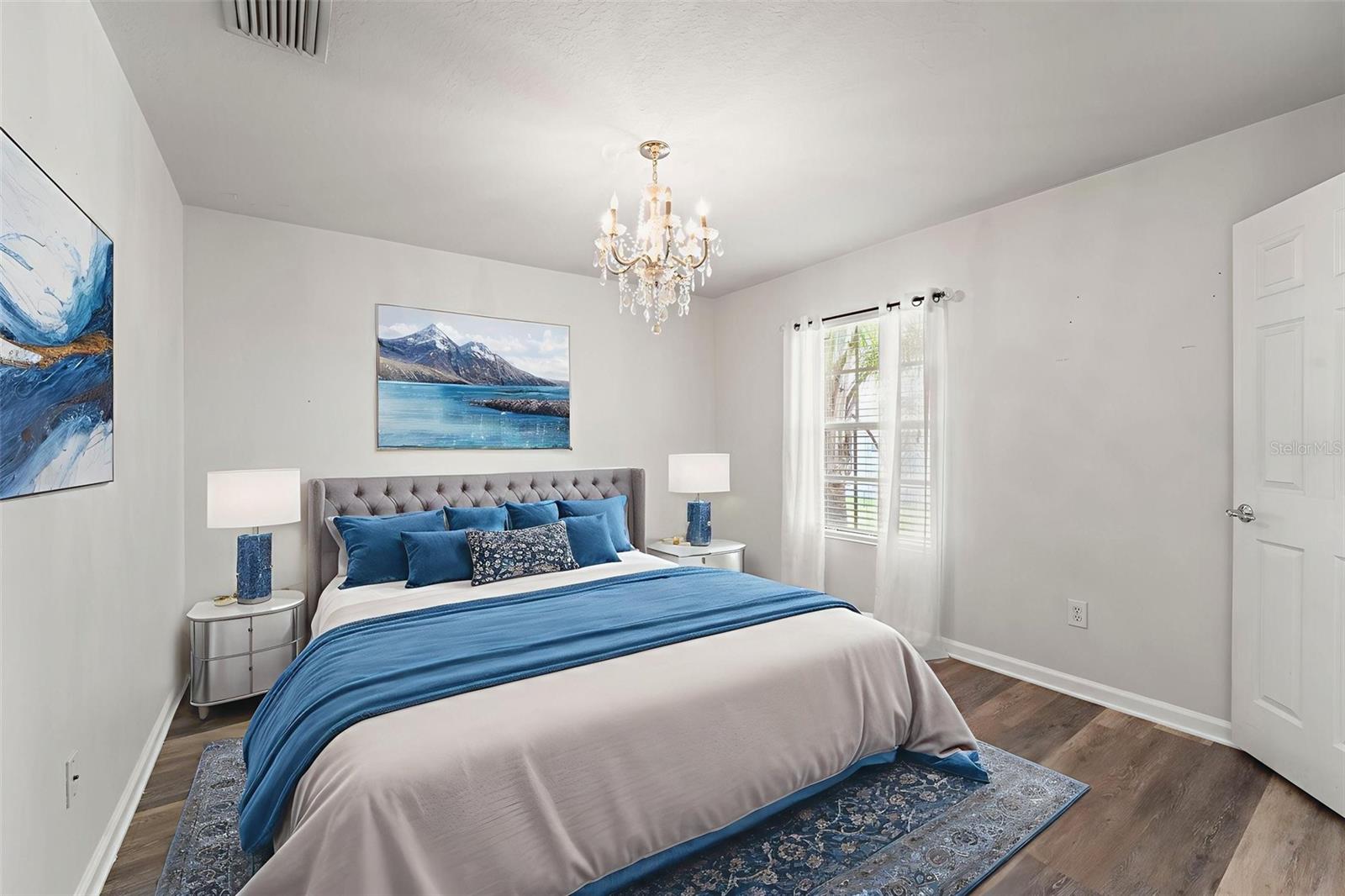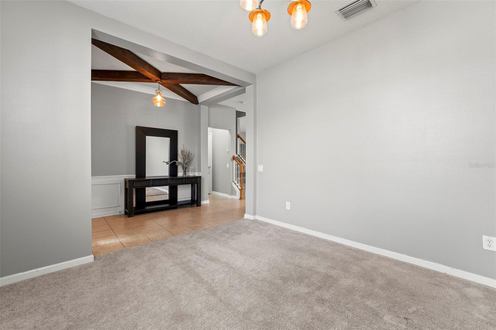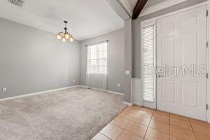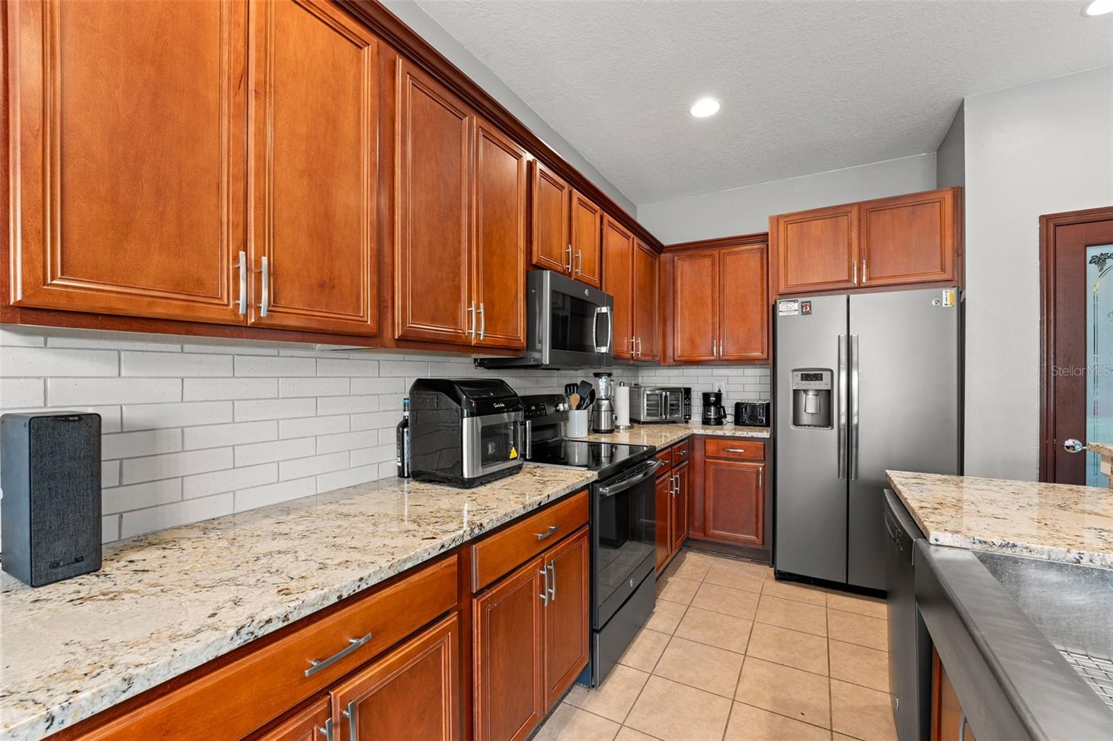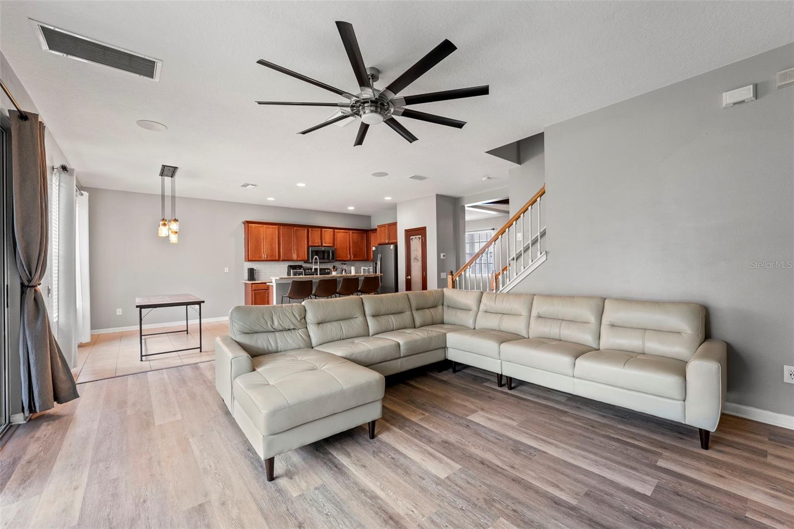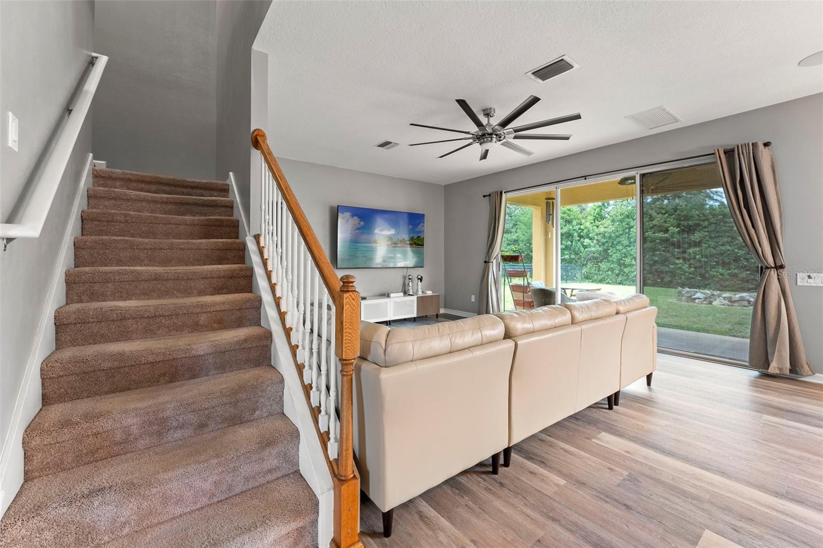 One or more photo(s) has been virtually staged. MOTIVATED SELLER!Gorgeous 4-Bedroom Home with Elegant Curb Appeal & Premium Upgrades! Welcome to this stunning 4-bedroom, 2.5-bathroom home that exudes charm from the moment you arrive. Beautifully landscaped with striking stone front elevation and an elegant 8-foot front door with phantom screen, this home is designed to impress both inside and out. Step into the bright and airy foyer featuring high ceilings with wood beam accents, Edison-style LED lighting, and durable ceramic tile floors. Off the entry, you'll find a versatile den/bonus room—perfect as a home office, playroom, or hobby space. The heart of the home is the gourmet kitchen, complete with :Rich cherry oak cabinetry,Granite countertops and ceramic backsplash,Stainless steel appliances,Stainless farmhouse sink with gooseneck faucet and built-in bottle washer,Breakfast bar with seating, plus a spacious pantry. Enjoy the open-concept layout with a large family room and dining area, prewired with indoor/outdoor speaker zones—perfect for entertaining. Oversized sliding glass doors lead to the covered lanai and expansive backyard—no rear neighbors, just wide-open space and your own cozy fire pit area.Convenient touches include:First-floor half bath with outdoor access (no need to track through the house!) Spacious laundry room with utility sink.Under-stair storage and multiple linen closets for added space.Upstairs, the oversized primary suite offers a peaceful retreat with:Dual walk-in closets,Large ensuite bath with tub, step-in shower, double vanity, and private water closet.Abundant natural light from well-placed windows.Three additional bedrooms (two with walk-in closets) and a full bath complete the second floor.Additional highlights:Updated ceiling fans, window treatments, blinds, and thermostats. New Roof 2024. Access to resort-style amenities: clubhouse, fitness center, pool, playground, tennis & basketball courts, dog park, and fishing pier — all included with the low HOA fee. Don’t miss your chance to own this move-in-ready, thoughtfully designed home in a desirable community. Schedule your private showing today!