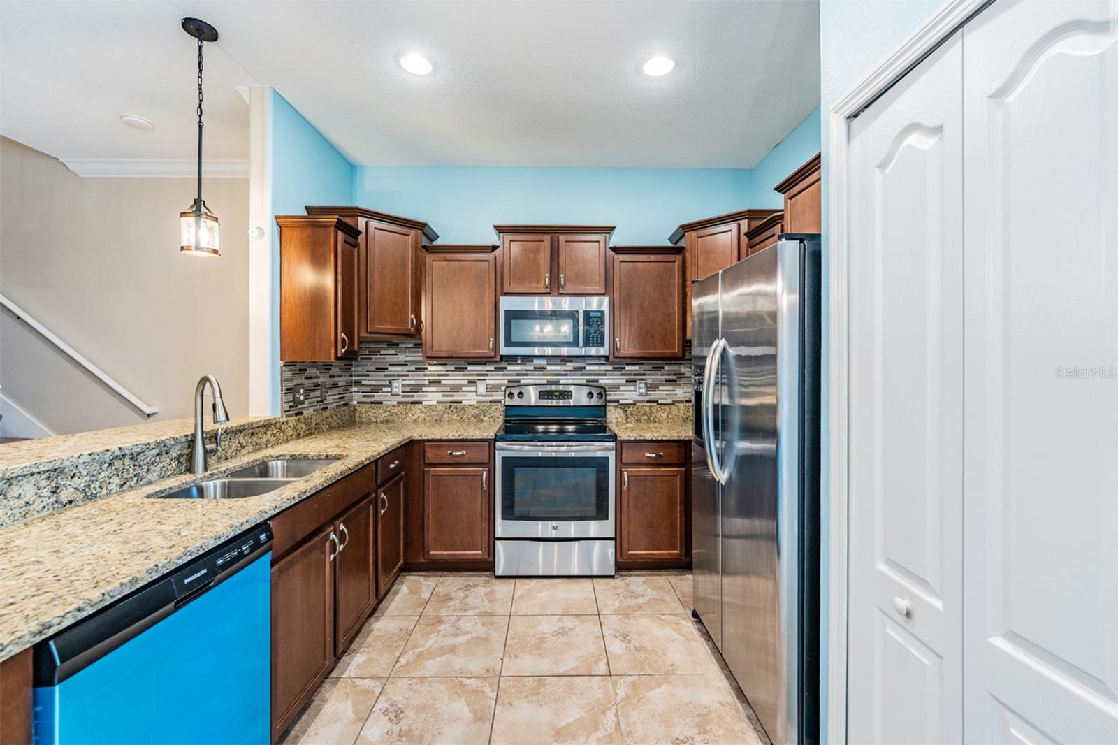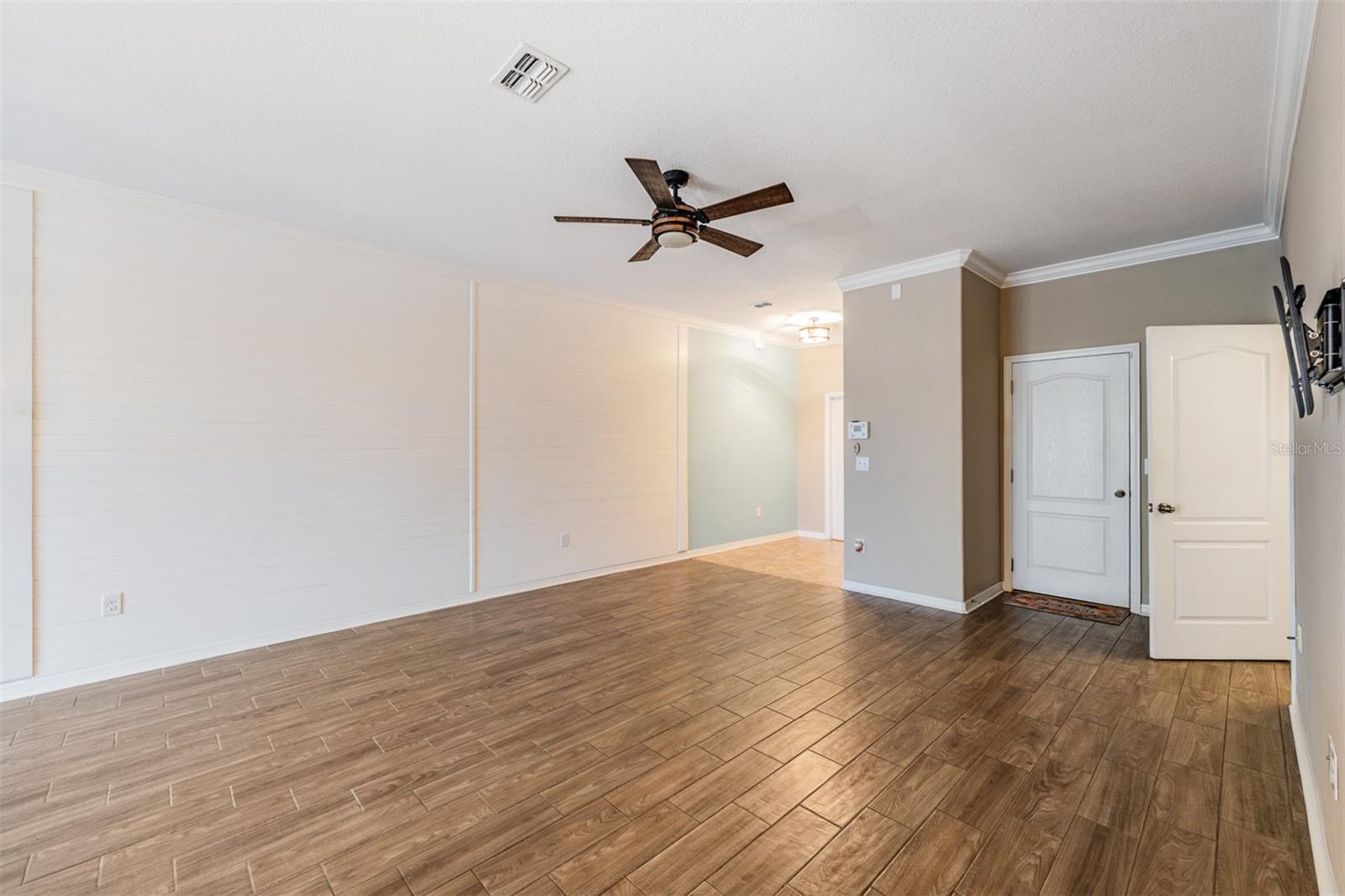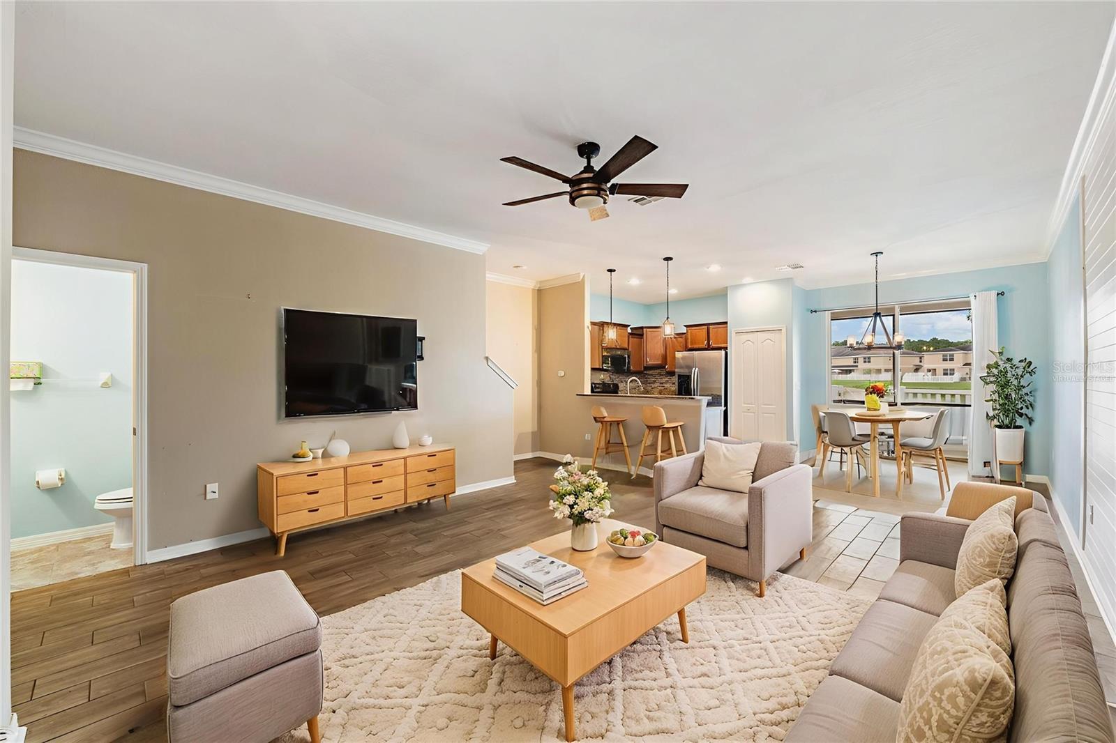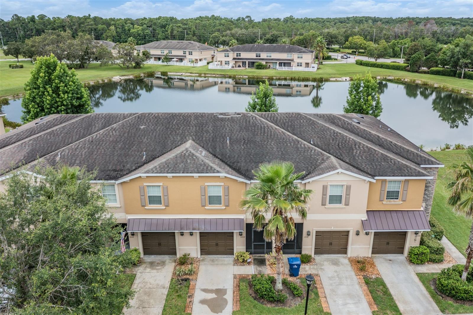 One or more photo(s) has been virtually staged. Welcome to this beautifully maintained 3-bedroom, 2.5-bath townhome with a waterview, located in a gated community at The Verandahs! This two-story home offers an open-concept layout with upgraded stylish finishes, featuring a gourmet kitchen with granite countertops, stainless steel appliances, custom cabinetry, with a spacious pantry, as well as a beautiful view of the water from your dining area. Enjoy outdoor living with a screened and fenced patio, perfect for relaxing or entertaining. Upstairs, you'll find the convenience of an indoor laundry room and a large primary suite complete with dual vanities and a walk-in closet- AND there is that beautiful view of the water again, from your bedroom windows! You will also find split bedrooms upstairs, along with a spacious loft perfect for a home office, media room, workout or activity space- the possibilities are endless. This home boasts high ceilings, crown molding, and upgraded flooring throughout. The one car garage conveniently has overhead storage while it also provides private parking. Residents of The Verandahs enjoy access to premium amenities including a resort-style pool, fitness center, clubhouse, and scenic walking trails. HOA includes irrigation, trash, sewer, water, exterior pest control and maintenance. Zoned for highly rated schools and just minutes from local shopping, dining and quick access to the Suncoast Parkway/Veteran's Expressway —this home has it all *style, upgrades, new dishwasher, newer water heater, enclosed/screened patios in the front of the home and in the back, great community features and maintenance free living! Schedule your showing today!