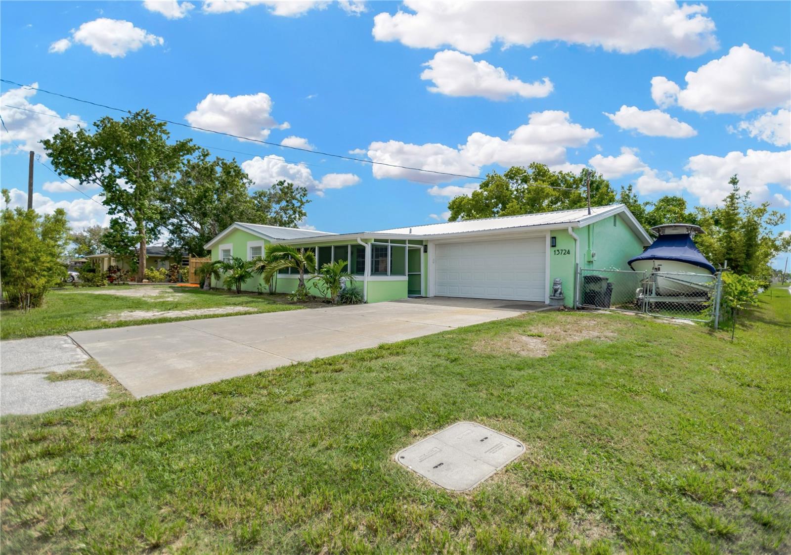 Live the ultimate coastal lifestyle in this beautifully renovated waterfront home that sits on 0.23 acres corner lot in the areas most desirable waterfront community. This open and spacious 3 bedroom / 2 bath home + Bonus Room and 2 car garage offers direct Gulf 0f America access, 40 ft floating dock and upper main dock that was redone in 2021. Enjoy 110 ft of water frontage on a deep canal, this home is perfect for the boating, jet skiing, fishing enthusiasts that desire a coastal lifestyle and endless waterfront adventures. Golf cart owners ~~ this is a golf cart friendly community as well. This sparkling home offers sleek, modern finishes with NEW ** kitchen w/shaker light cabinetry, soft close drawers, quartz countertops ** beautifully appointed tile master and guest bathrooms ** LG stainless kitchen appliance package ** A/C unit (2024) ** easy care vinyl plank style flooring in main areas /guest bedroom ** interior paint / neutral color. Other key features include boat and trailer parking on both sides of home ** RV hookup with water, electric and sewer available ** outdoor shower area ** expansive enclosed Florida Room/Porch front of the home for added living space. Just minutes away from marinas, public boat ramps, a myriad of waterfront restaurants, local beach, fun tiki bars/entertainment and more. Easy access to US 19, Suncoast Parkway, Tampa International and more. Call to schedule your private viewing today ~~ you are sure to fall in love with this exceptional home.