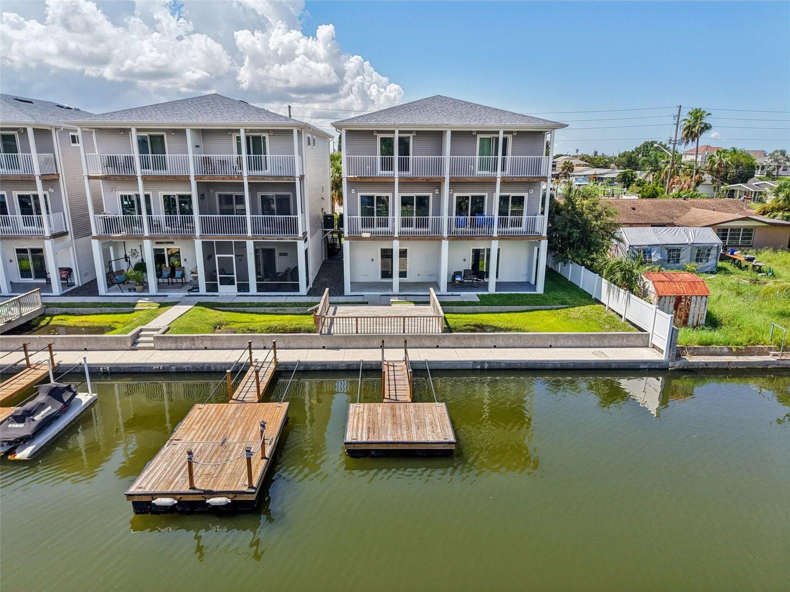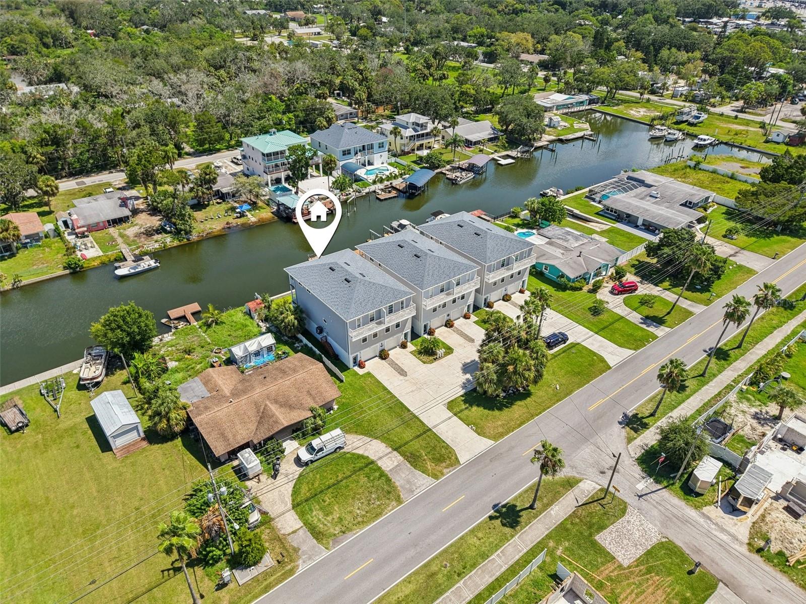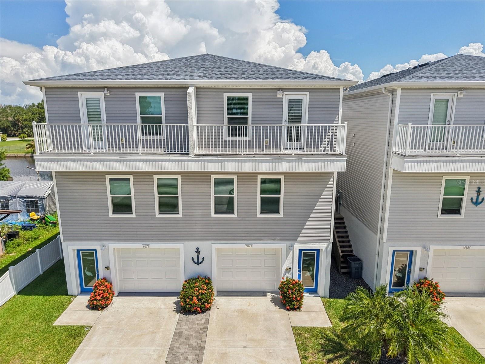 One or more photo(s) has been virtually staged. Waterfront living at its finest in Pelican Watch! Welcome to your very own slice of paradise on a deep saltwater canal with direct access to the Gulf. This spacious 3-bedroom, 3-bath townhome with a floating dock and elevated deck is tucked away in the heart of Hudson Beach—a charming coastal neighborhood where life moves a little slower, and the sea breeze is always just a porch away. Inside, you’ll find an open main floor designed for easy living and entertaining. The kitchen is a true standout—crisp white shaker cabinets, soft-close drawers, granite counters, a walk-in pantry, island seating, and stainless appliances—all thoughtfully arranged under recessed lighting. The waterproof luxury vinyl plank flooring adds both style and durability, making beach days a breeze. A bedroom and full bath are also conveniently located on the main level, along with an interior laundry room and a spacious great room that flows onto a large covered porch overlooking the canal—perfect for your morning coffee or sunset unwinding. Upstairs, two peaceful suites await, each with its own full bathroom and private balcony. One of them has stunning water views that’ll make it hard to leave. All three bathrooms are tastefully updated with tiled showers or tubs, glass enclosures, and elegant vanities. Downstairs, there’s a private garage with tandem parking and a separate storage room—plus sliders that lead right out to the canal. Great for a bonus game area. Outside your very own large deck leads to the private floating dock, where electricity is already installed at the seawall if you’re thinking about a boat lift. You’ll love exploring this golf cart-friendly neighborhood with easy access to local marinas, waterfront restaurants (yes, Sam’s on the Beach is as fun as it sounds!), the public beach, and a string of tiki bars with unbeatable sunset views. Whether you love fishing, boating, beachcombing, or just soaking in coastal charm, this home puts you right where you want to be. Grocery stores, medical centers, and major roads are all within easy reach—and Tampa International Airport is just about an hour away. Ready to make this your everyday getaway? Come see it for yourself—you're going to fall in love.
