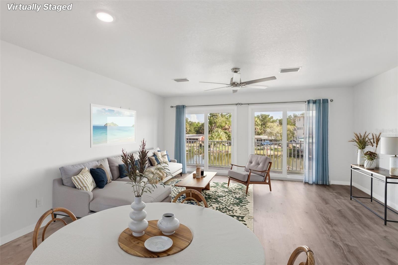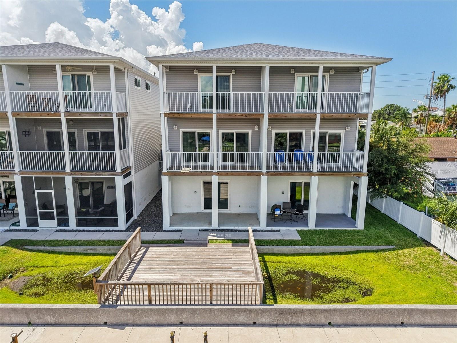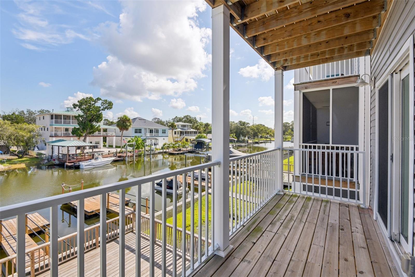 One or more photo(s) has been virtually staged. Waterfront living at its finest in Pelican Watch! Welcome to your very own slice of paradise on a deep saltwater canal with direct access to the Gulf. This spacious 3-bedroom, 3-bath townhome with a floating dock and elevated deck is tucked away in the heart of Hudson Beach—a charming coastal neighborhood where life moves a little slower, and the sea breeze is always just a porch away. Inside, you’ll find an open main floor designed for easy living and entertaining. The kitchen is a true standout—crisp white shaker cabinets, soft-close drawers, granite counters, a walk-in pantry, island seating, and stainless appliances—all thoughtfully arranged under recessed lighting. The waterproof luxury vinyl plank flooring adds both style and durability, making beach days a breeze. A bedroom and full bath are also conveniently located on the main level, along with an interior laundry room and a spacious great room that flows onto a large covered porch overlooking the canal—perfect for your morning coffee or sunset unwinding. Upstairs, two peaceful suites await, each with its own full bathroom and private balcony. One of them has stunning water views that’ll make it hard to leave. All three bathrooms are tastefully updated with tiled showers or tubs, glass enclosures, and elegant vanities. Downstairs, there’s a private garage with tandem parking and a separate storage room—plus sliders that lead right out to the canal. Great for a bonus game area. Outside your very own large deck leads to the private floating dock, where electricity is already installed at the seawall if you’re thinking about a boat lift. You’ll love exploring this golf cart-friendly neighborhood with easy access to local marinas, waterfront restaurants (yes, Sam’s on the Beach is as fun as it sounds!), the public beach, and a string of tiki bars with unbeatable sunset views. Whether you love fishing, boating, beachcombing, or just soaking in coastal charm, this home puts you right where you want to be. Grocery stores, medical centers, and major roads are all within easy reach—and Tampa International Airport is just about an hour away. Ready to make this your everyday getaway? Come see it for yourself—you're going to fall in love.