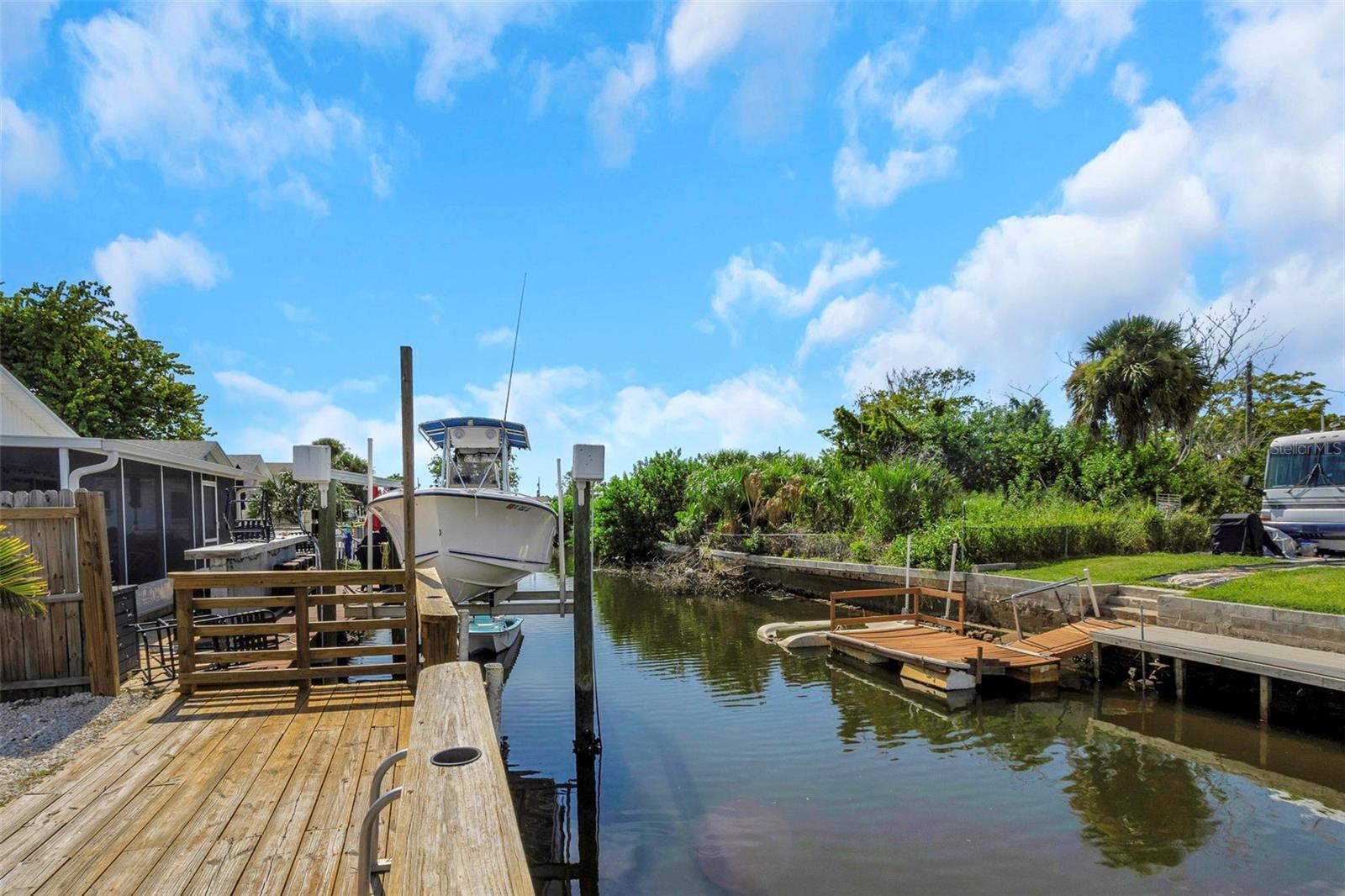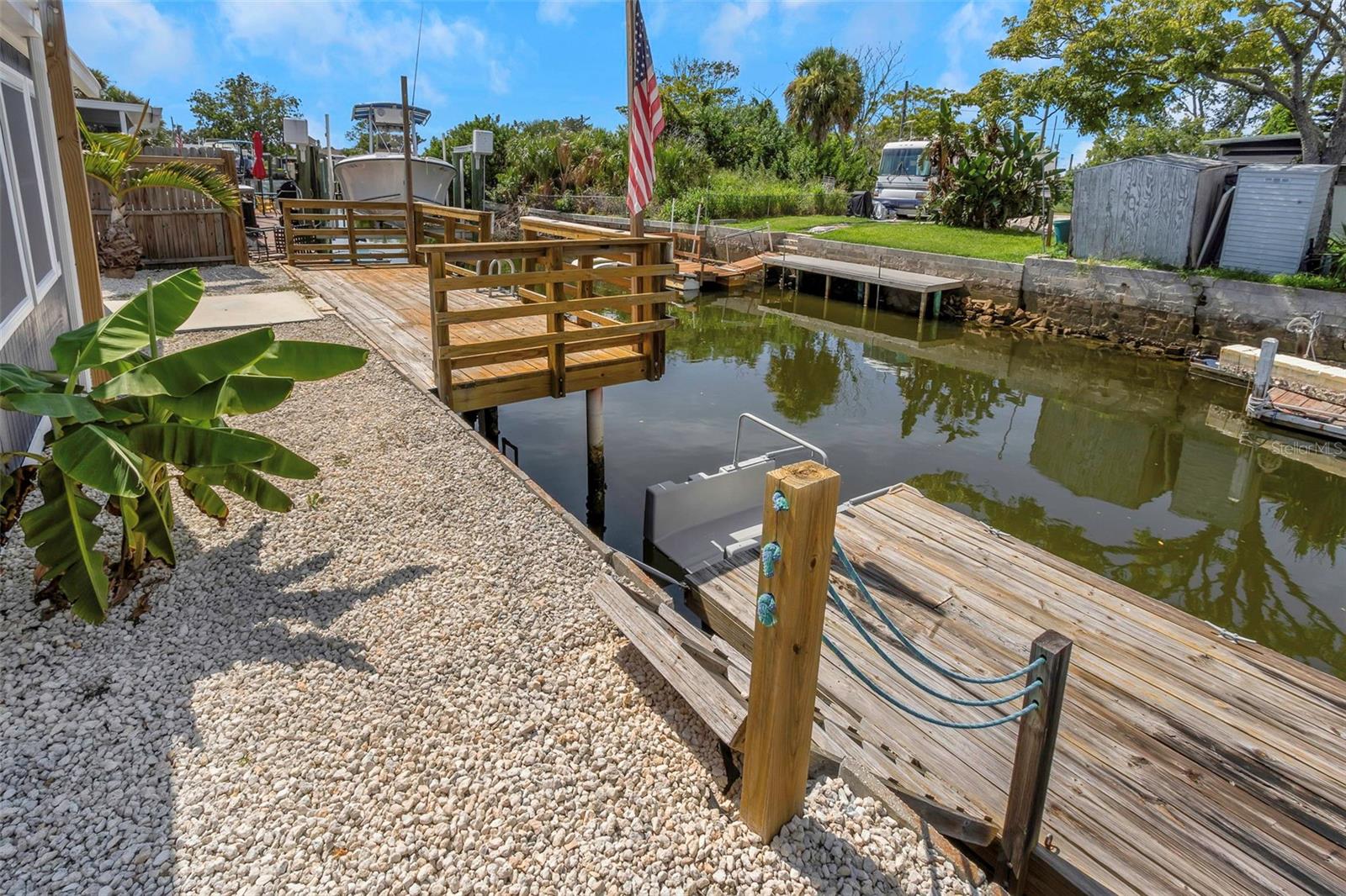 Discover this charming waterfront home with access to the Gulf. This 2 bedroom/2 bath home has all new appliances, new water heater, A/C Condenser and garage door. There is tile throughout the home and updated windows giving it a clean, contemporary feel. At the back of the house is a large Florida room, ideal for relaxing or entertaining, with access to the backyard. Out back you will find a sun deck over the water perfect for a table and chairs or a conversation sectional. There is also a floating dock with a kayak launch for easy access to the water and your next adventure. The second bathroom has a door to the side yard making it a convenient entry after a long day on the water. The garage is a great spot to keep your toys and gear out of the elements. The roof was done in 2018. This home blends comfort, style and coastal living in a perfect package. Schedule your showing today!