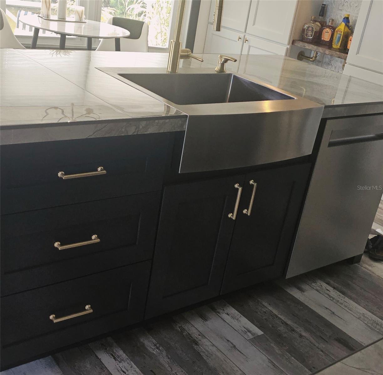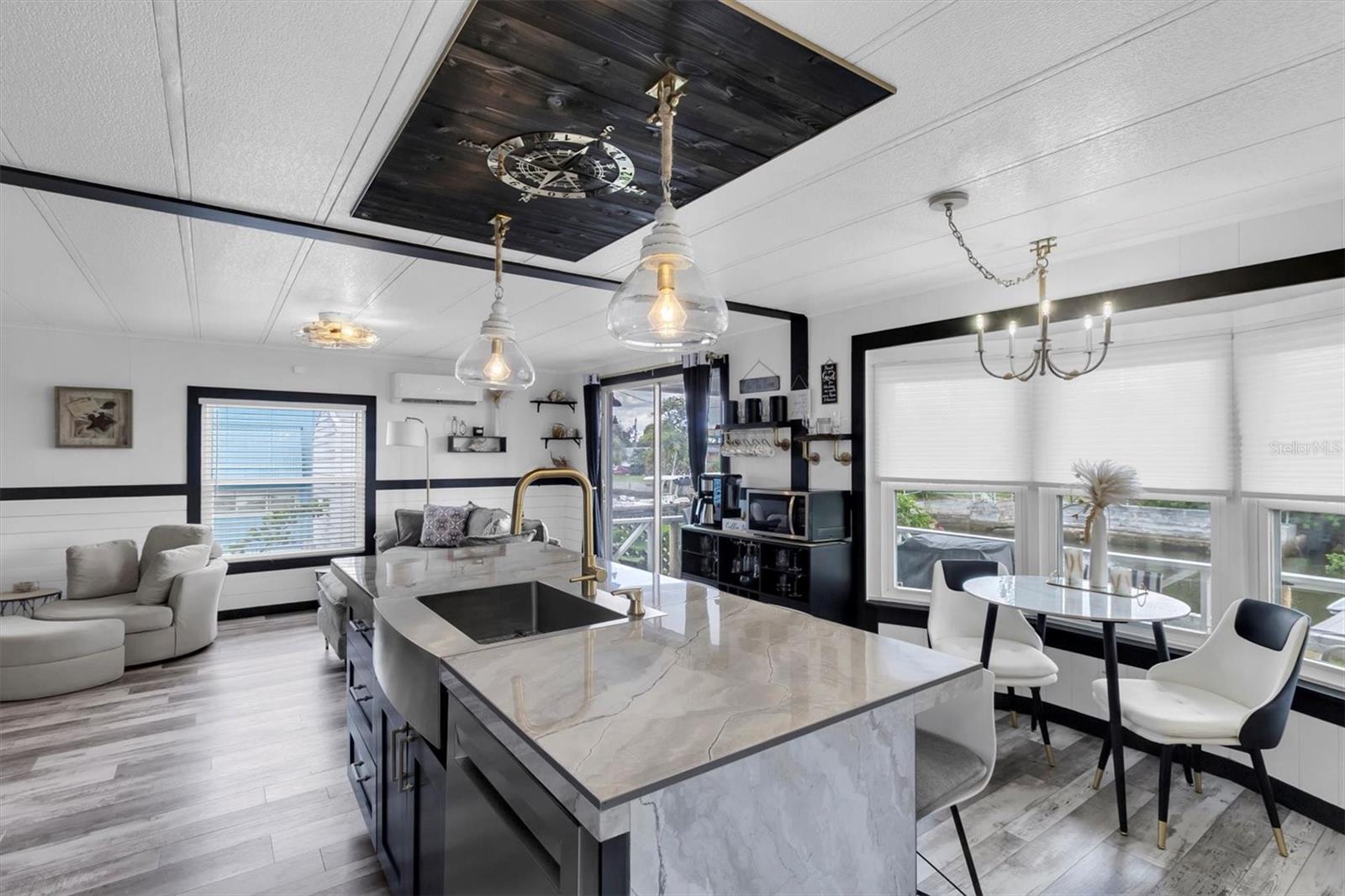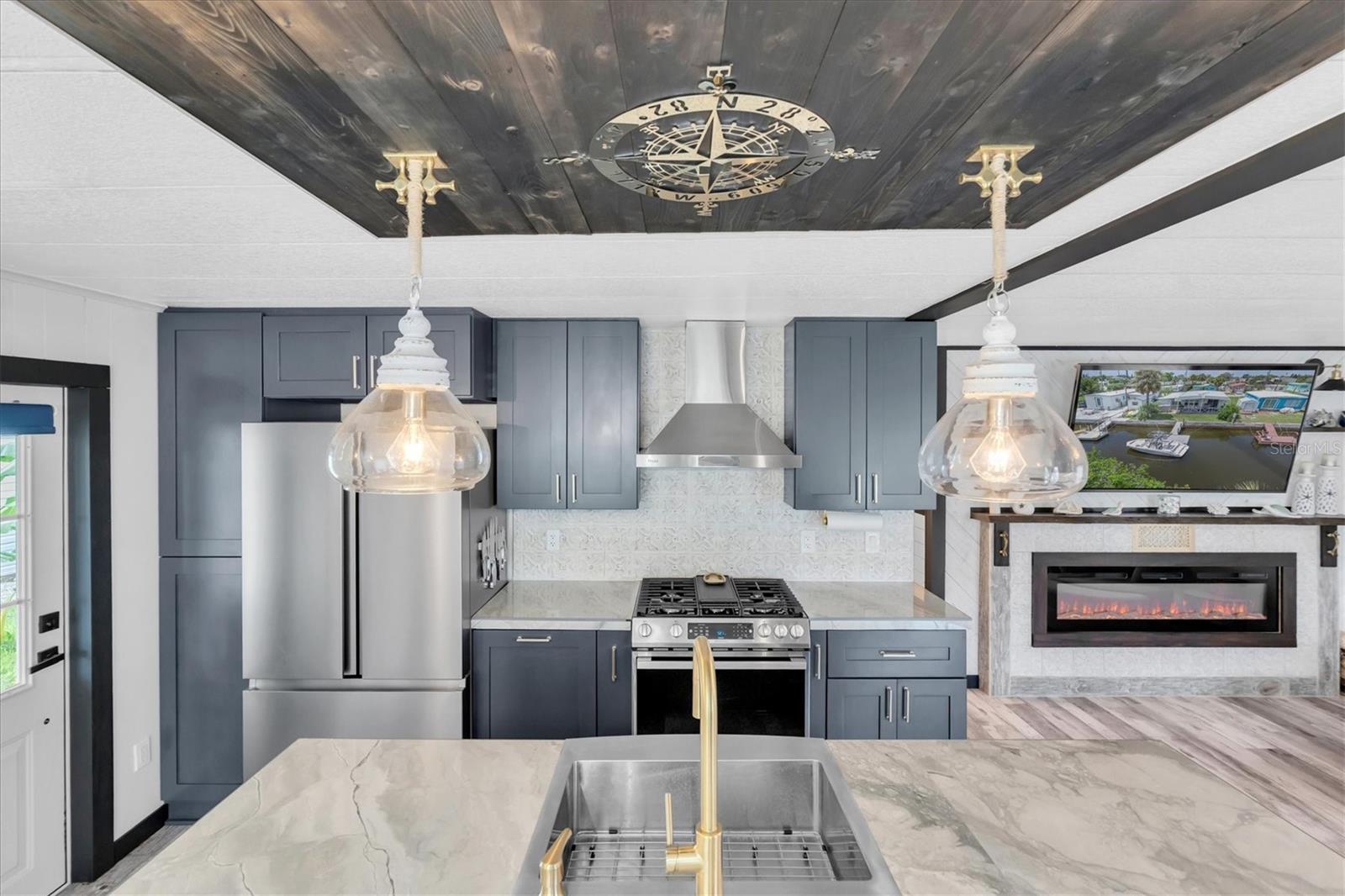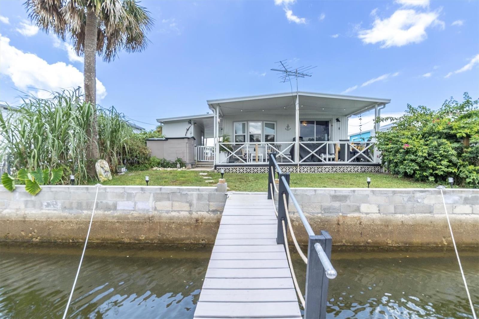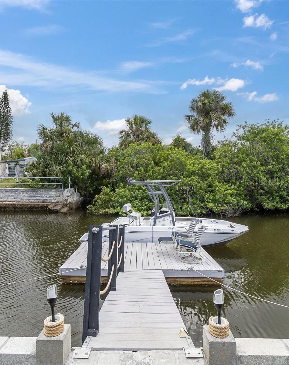 PRICE REDUCTION! A MUST SEE! A Gorgeous, completely remodeled, Waterfront Home with a lot of upgrades & special touches throughout this home. Direct access to the Gulf within minutes & No bridges. It has 42 ft on water, with a concrete seawall. This home features a beautiful kitchen with a island kitchen & seating, beautiful porcelain countertops, a large, farm style sink & nautical lighting. All Hisense stainless steel appliances, a french door style fridge with interior water & ice maker, a 5 burner gas stove w/air fryer & griddle, a professional, motion sensitive, range hood & a 3 rack dishwasher. Includes a small breakfast nook overlooking the canal. & includes a adorable Coffee bar cabinet which conveys, if desired. The kitchen has plenty of cabinets & storage space with a built in cabinets that also include Live edge shelving w/decorative piping. Near the Range area, it also has 2 pull out spice racks, apull out garbage bins & a deep pantry. This is a Open floor plan of Living room/Kitchen/Nook with lots of natural light & the living space over looks the canal. The sliding glass doors in the livingroom open onto the large (23x10) wood porch overlooking the canal. The living room features a beautiful electric fireplace that includes heat for those chilly nights. The Fireplace mantle & shelving is also live edge. This home has 2 bedrooms & both have walk-in closets that include built in closets w/ barn style doors. The Master bathroom has a tile walk in shower, the hall 2nd bathroom has a tub/shower combo, built-in cabinet & a Linen closet.This home features New 2025 Solid core LVP flooring w/cork backing, gorgeous nautical white shiplap half walls, 2022 Nautical lighting & fans everywhere & all with remotes. Also Electric, tankless 2023 hot water heater, Energy efficient 2025 Mini Split AC, new windows & roof is metal. Wood, floating dock (12x8). Large (23x11) covered carport w/an addit'l 45 feet of driveway for plenty of parking. The laundry room is exterior & located in the workshed across from the front door. This is a perfect, walk-in ready, canal home to make your own & start living the florida lifestyle! Hudson is centrally located to many options for restaurants, shopping, minutes from Hudson Beach, hospitals & doctors. It is only 10 minutes to SunWest Park with its large man made sandy beach & water park that everyone will enjoy. Hernando, Homosassa, Crystal River to the north & many.. locations south such as New Port Richey, Dunedin, Clearwater beach, there is never a shortage of things to do. Tampa & Tampa International Airport are within an hour and Orlando and all the amusement parks can be reached within a 2 hour drive. This home is move-in ready & ideal for anyone looking to enjoy Florida Waterfront Living or also great for an airbnb/VRBO! You own Home & Land. No HOA's, direct access to open water. Come and check it out! Home is being sold cash only w/valid POF. Furniture is not included but negotiable separately. Buyer and buyers agent to verify all measurements. Home had prior water intrusion from Hurricane Helene.