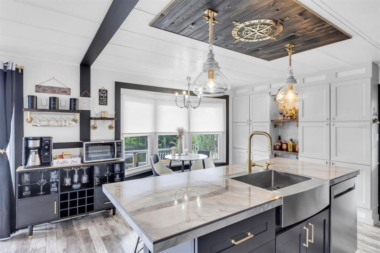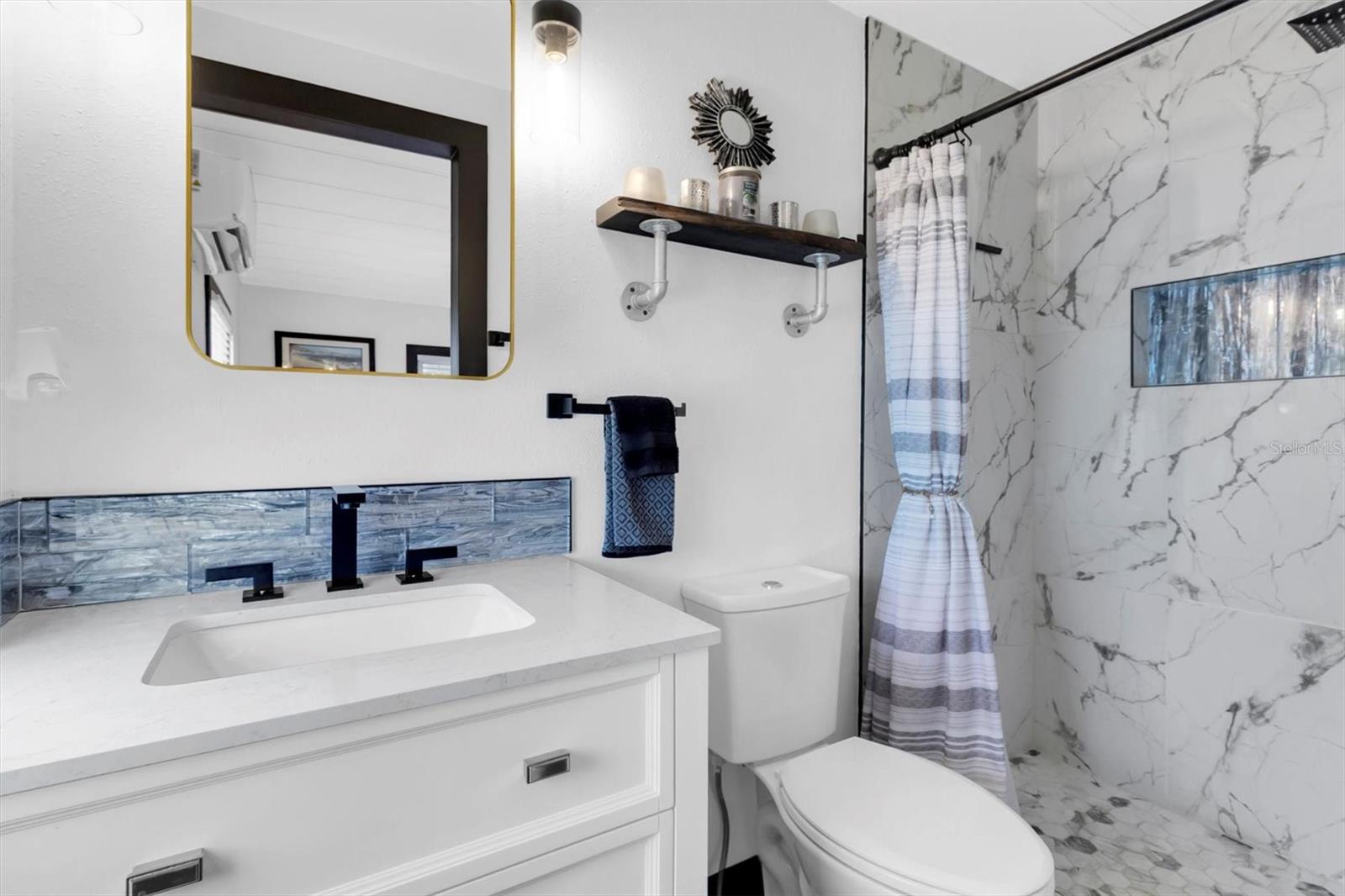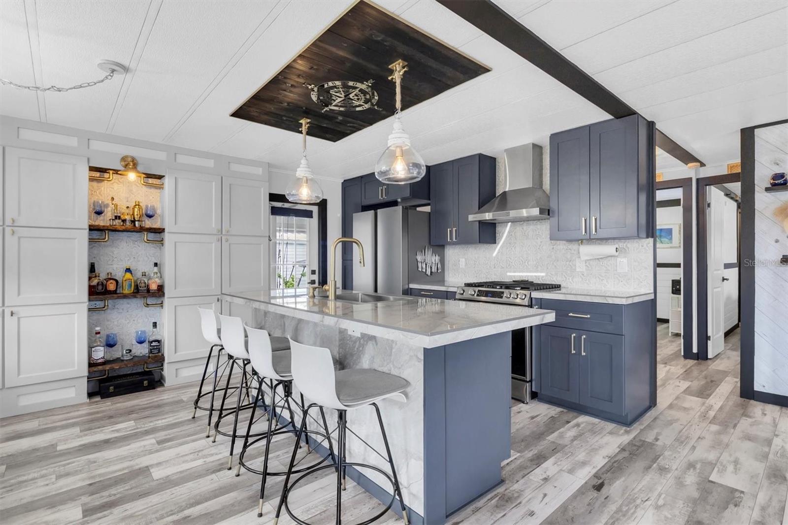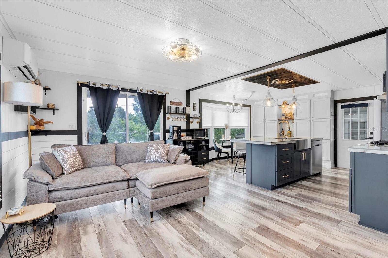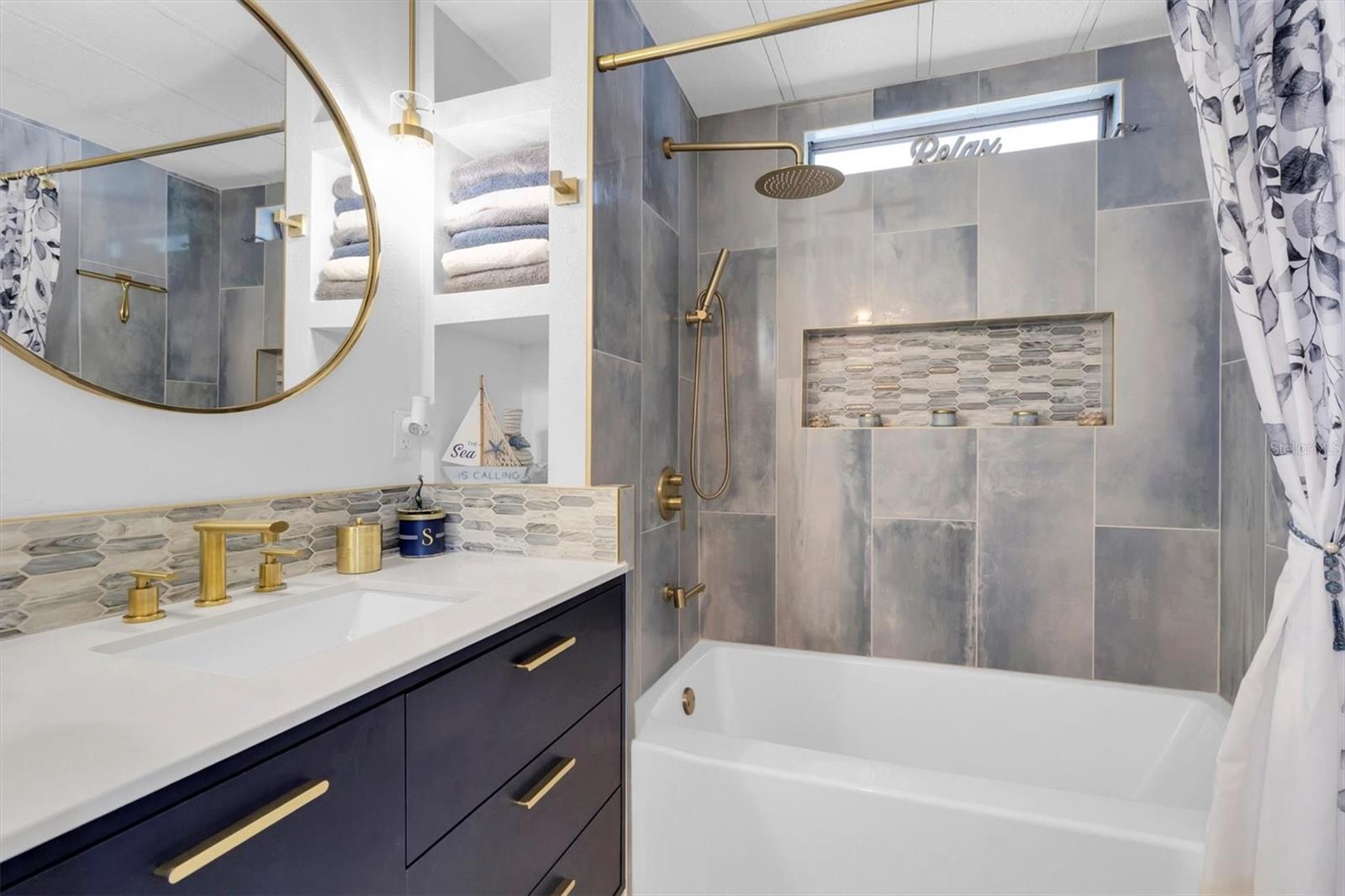 PRICE REDUCTION! A MUST SEE! A Gorgeous, completely remodeled, Waterfront Home with a lot of upgrades & special touches throughout this home. Direct access to the Gulf within minutes & No bridges. It has 42 ft on water, with a concrete seawall. This home features a beautiful kitchen with a island kitchen & seating, beautiful porcelain countertops, a large, farm style sink & nautical lighting. All Hisense stainless steel appliances, a french door style fridge with interior water & ice maker, a 5 burner gas stove w/air fryer & griddle, a professional, motion sensitive, range hood & a 3 rack dishwasher. Includes a small breakfast nook overlooking the canal. & includes a adorable Coffee bar cabinet which conveys, if desired. The kitchen has plenty of cabinets & storage space with a built in cabinets that also include Live edge shelving w/decorative piping. Near the Range area, it also has 2 pull out spice racks, apull out garbage bins & a deep pantry. This is a Open floor plan of Living room/Kitchen/Nook with lots of natural light & the living space over looks the canal. The sliding glass doors in the livingroom open onto the large (23x10) wood porch overlooking the canal. The living room features a beautiful electric fireplace that includes heat for those chilly nights. The Fireplace mantle & shelving is also live edge. This home has 2 bedrooms & both have walk-in closets that include built in closets w/ barn style doors. The Master bathroom has a tile walk in shower, the hall 2nd bathroom has a tub/shower combo, built-in cabinet & a Linen closet.This home features New 2025 Solid core LVP flooring w/cork backing, gorgeous nautical white shiplap half walls, 2022 Nautical lighting & fans everywhere & all with remotes. Also Electric, tankless 2023 hot water heater, Energy efficient 2025 Mini Split AC, new windows & roof is metal. Wood, floating dock (12x8). Large (23x11) covered carport w/an addit'l 45 feet of driveway for plenty of parking. The laundry room is exterior & located in the workshed across from the front door. This is a perfect, walk-in ready, canal home to make your own & start living the florida lifestyle! Hudson is centrally located to many options for restaurants, shopping, minutes from Hudson Beach, hospitals & doctors. It is only 10 minutes to SunWest Park with its large man made sandy beach & water park that everyone will enjoy. Hernando, Homosassa, Crystal River to the north & many.. locations south such as New Port Richey, Dunedin, Clearwater beach, there is never a shortage of things to do. Tampa & Tampa International Airport are within an hour and Orlando and all the amusement parks can be reached within a 2 hour drive. This home is move-in ready & ideal for anyone looking to enjoy Florida Waterfront Living or also great for an airbnb/VRBO! You own Home & Land. No HOA's, direct access to open water. Come and check it out! Home is being sold cash only w/valid POF. Furniture is not included but negotiable separately. Buyer and buyers agent to verify all measurements. Home had prior water intrusion from Hurricane Helene.
