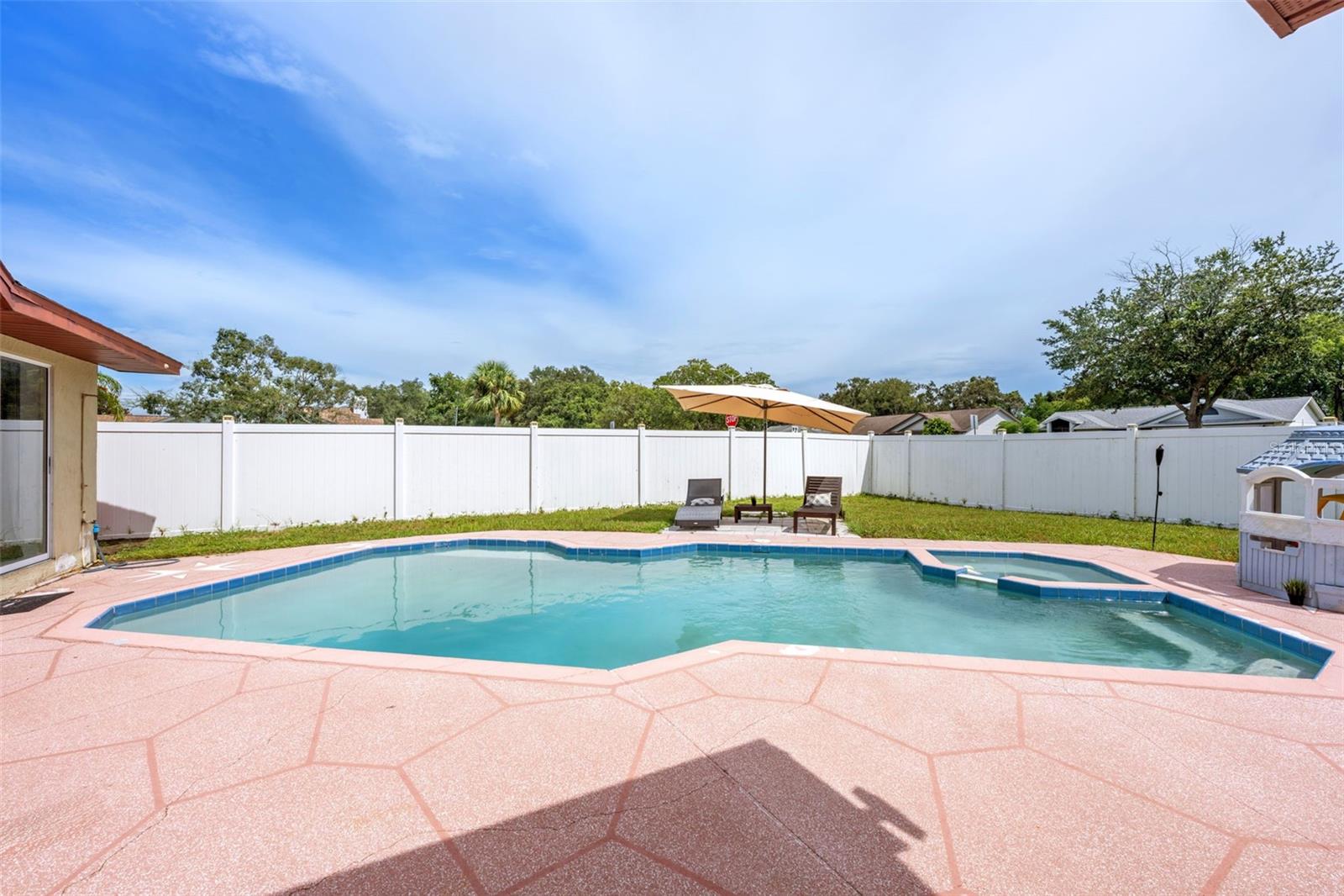 Meticulously kept 3 bed, 2 bath home embodies quintessential Florida living with a pool, ideal for year-round relaxation. Step inside to discover an open floor plan infused with Florida charm, boasting stylish finishes and abundant natural light. Outside, the private backyard oasis beckons with an expansive deck, fully fenced yard, and lush landscaping, creating the perfect backdrop for entertaining guests or unwinding in solitude. Conveniently situated just 40 minutes from Tampa International Airport and under 90 minutes from Disney, this home offers easy access to area beaches, parks, and renowned sportfishing destinations off the Gulf and Nature Coast. Embrace the essence of Florida living in Lakeside Woodlands! Plus, enjoy the benefits of LOW HOA and NO CDD fees, along with NO FLOOD insurance required, making ownership worry-free. Yard fully fenced for added privacy and security, completing this perfect Florida retreat!