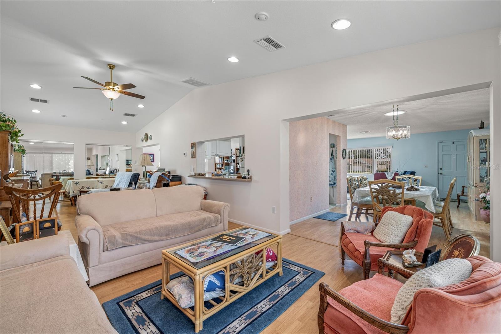 Welcome to your new home in Beacon Woods! This spacious 2 bedroom, 2 bath single-family home with over 1,800 sq. ft. of living space is move-in ready and full of charm. Tucked inside the desirable Beacon Woods community in Hudson, this property offers comfort, functionality, and peace of mind with major updates already done. As you step inside, you’ll immediately notice how bright and welcoming this home feels, thanks to 3 solar tubes that enhance the living areas with natural light. The large formal dining room has plenty of space for holiday gatherings, dinner parties, or even game night with friends. The updated kitchen features glazed countertops, upgraded cabinetry, reverse osmosis system and ample storage, with a pass-through to the Great Room for easy entertaining. Just off the kitchen is the cozy family room/den with access to the attached one-car garage. One of the standout features of this home is the extra-large Great Room—adding about 432 sq. ft. of versatile living space! Whether you need a home office, media room, hobby space, or playroom, this area is ready to adapt to your lifestyle. It boasts recessed lighting, laminate flooring, built-in floor to ceiling storage, and a hurricane-impact sliding glass door that opens to the private patio. The split floor plan offers privacy for both bedrooms. The primary suite includes laminate flooring, a walk-in closet, en-suite bath, and serene views of the rear patio. The secondary bedroom and bathroom can even function as a private guest suite with a hallway door which closes for privacy. Outside, enjoy your private patio—a perfect spot to BBQ, relax with your morning coffee, or soak up the Florida sunshine. Recent improvements give you peace of mind: Roof (2019) with 3rd nail for insurance discounts; laminate flooring, no carpet; A/C 2023 with ultra violet light and new ductwork; hurricane-impact windows throughout, including the sliding glass door; solar screens; Cat-5 screens for front and side door; hurricane shutters; water softener and charcoal water filter. This home is not located in a flood zone, which means flood insurance is not required! The low HOA fees provide access to fantastic amenities including a clubhouse, pool, tennis courts, shuffleboard, and more. All this, just minutes from Sun West Park, Hudson Beach, shopping, dining, golf courses, hospitals, and only about 35 minutes to Tampa International Airport. Don’t miss your chance to own this wonderful Beacon Woods home—schedule your showing today!