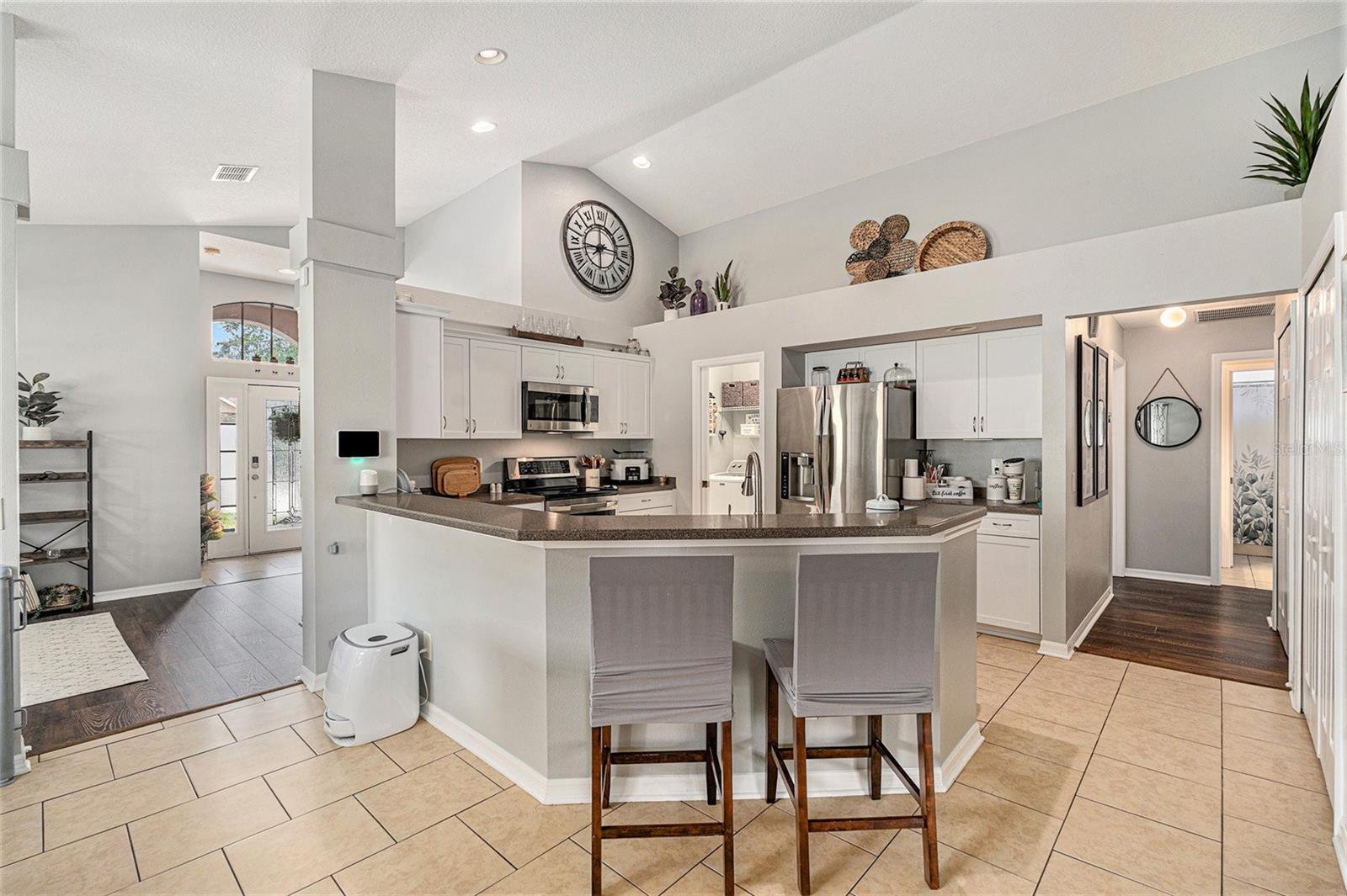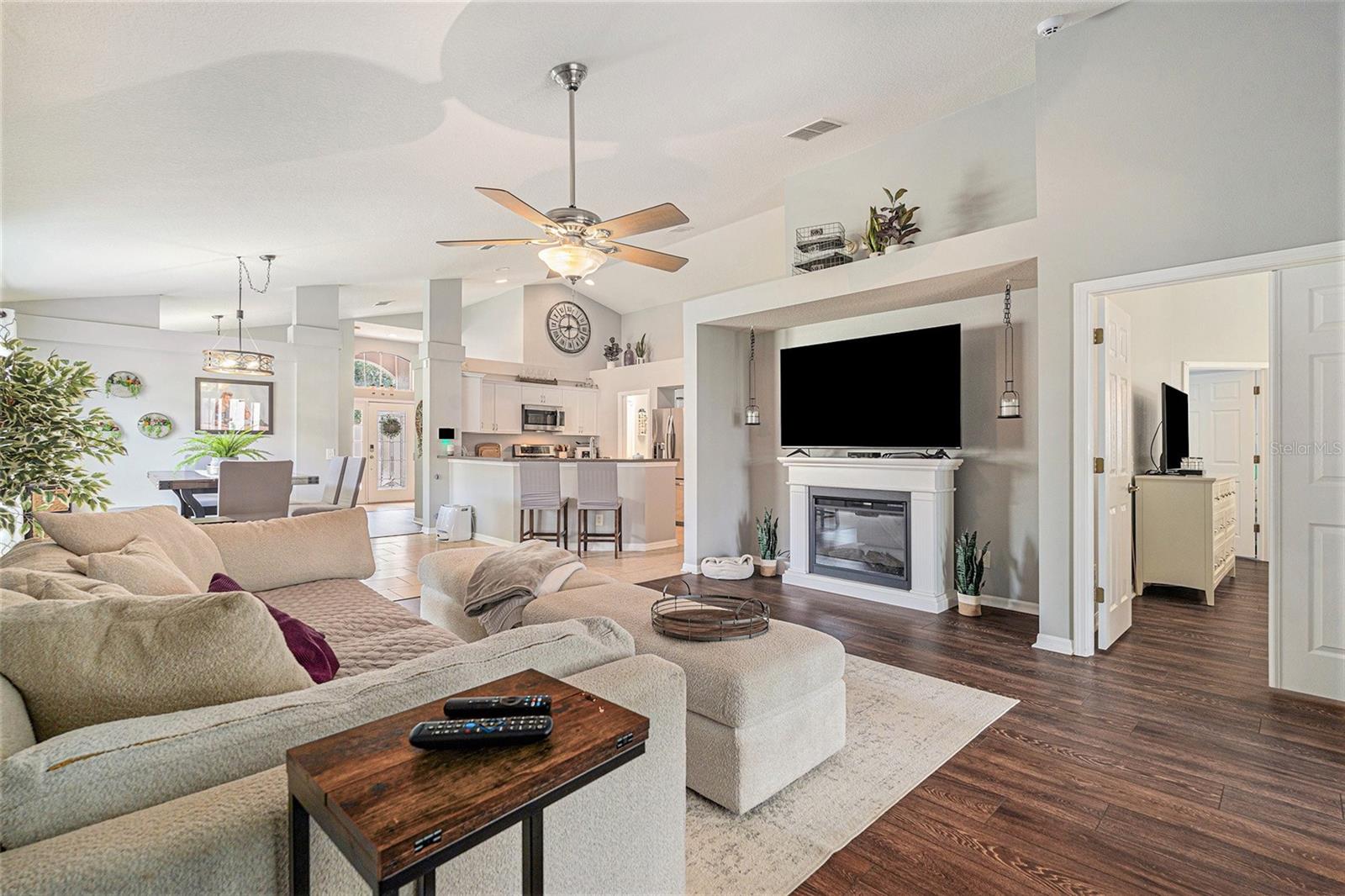 Come live in Paradise! This gorgeous ONE-STORY home is located in the desirable gated community of Reserve at Meadow Oak right in the heart of Hudson. Home Sweet Home! This amazing home offers 4 bedrooms, 2 full bathrooms with a kitchen that opens to a large living room. Once inside you will be greeted by an amazing open floor plan with high ceilings and open spaces. Welcome to the kitchen where sweet memories are being made. The kitchen is seasoned with love and is perfect for entertaining your guests, featuring lots of cabinets and extended counterspace. The kitchen is the heart of the home. The fondest memories are made when gathered around the table. Enjoy hosting casual dinners with the family or extravagant dinners in the dining area open to the living room with amazing views to the backyard. This home is full of endless possibilities. Master suite offers plenty of room with a tranquil view of the fenced in backyard. Master bathroom offers a garden tub and dual vanity sinks with lots of storage. A secondary bedroom is located right off the master suite, providing the perfect setup for a nursery, home office, or added convenience for little ones. Life is too short to fold fitted sheets but convenient in the large laundry room with plenty of storage. The garage has plenty of space so bring your toys, bikes and extra vehicles to store in the 2 car garage. Time spent on the screen lanai is time well spent. Relax and enjoy as there will be a lot of sipping, grilling and chilling with an amazing extended covered lanai overlooking the peaceful fully fenced backyard. Located within a gated community, residents enjoy a lifestyle filled with amenities, including a golf course, clubhouse, swimming pool, tennis courts, and shuffleboard. The neighborhood also offers a full calendar of activities, making it easy to stay active and social. Conveniently close to dining, shopping, and just 45 minutes from the beautiful Tampa and Clearwater beaches, this community offers the perfect blend of relaxation and convenience.